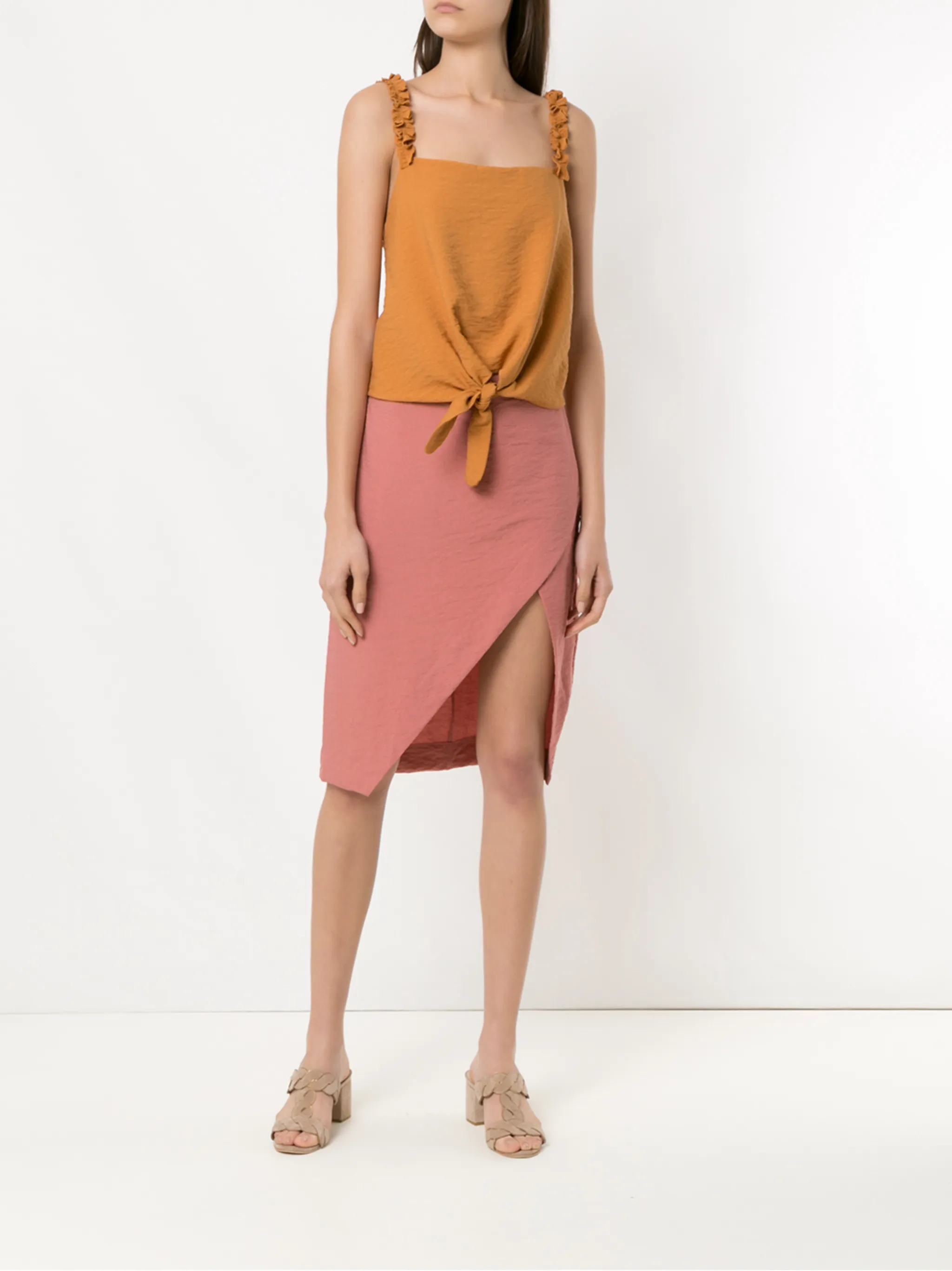 Юбка 'Maggiolina' от Olympiah. Боковой разрез, завышенная посадка и средней длины. Цвет: розовый.