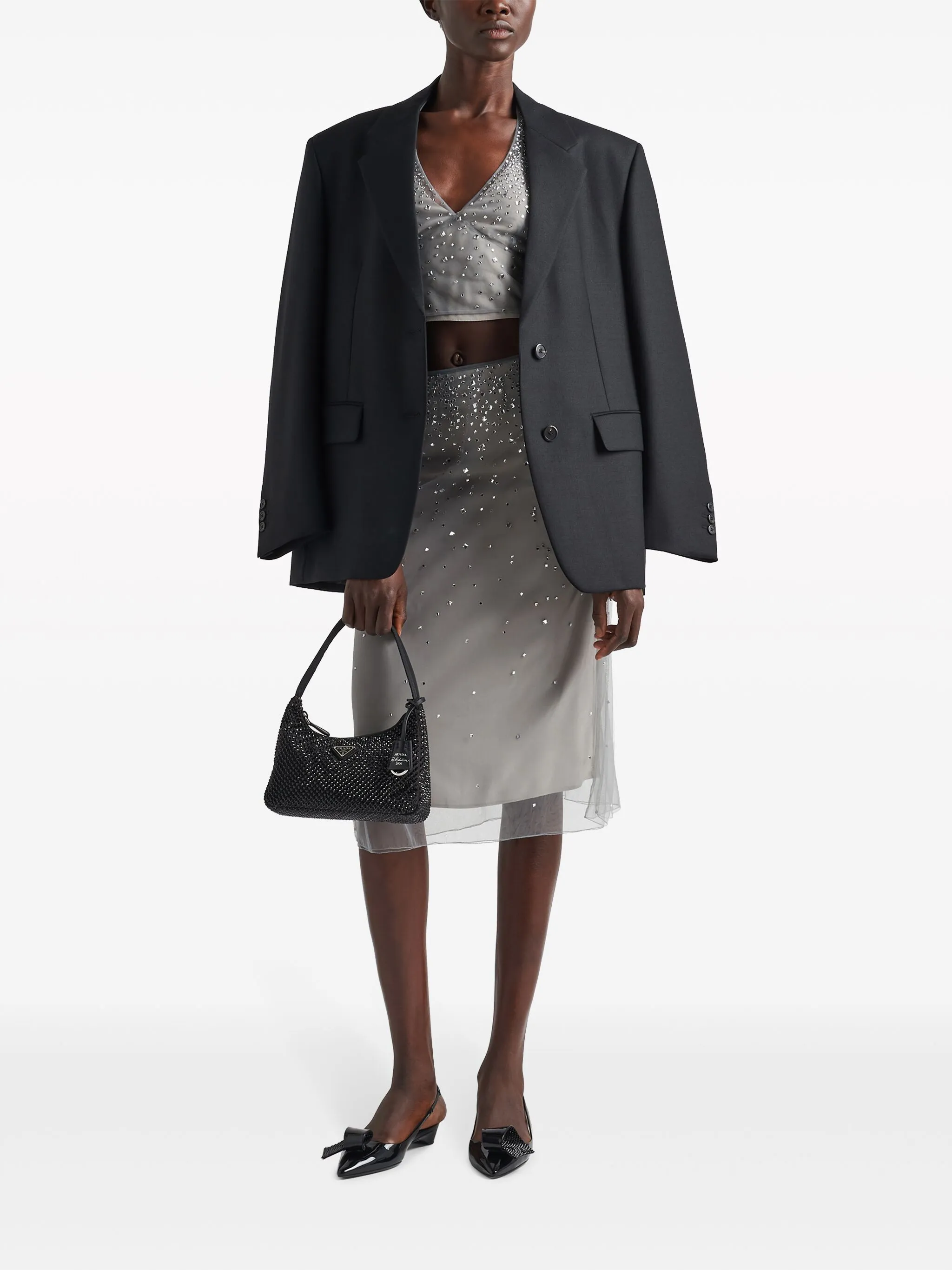 Юбка миди с кристаллами Prada, серый 548 976₽