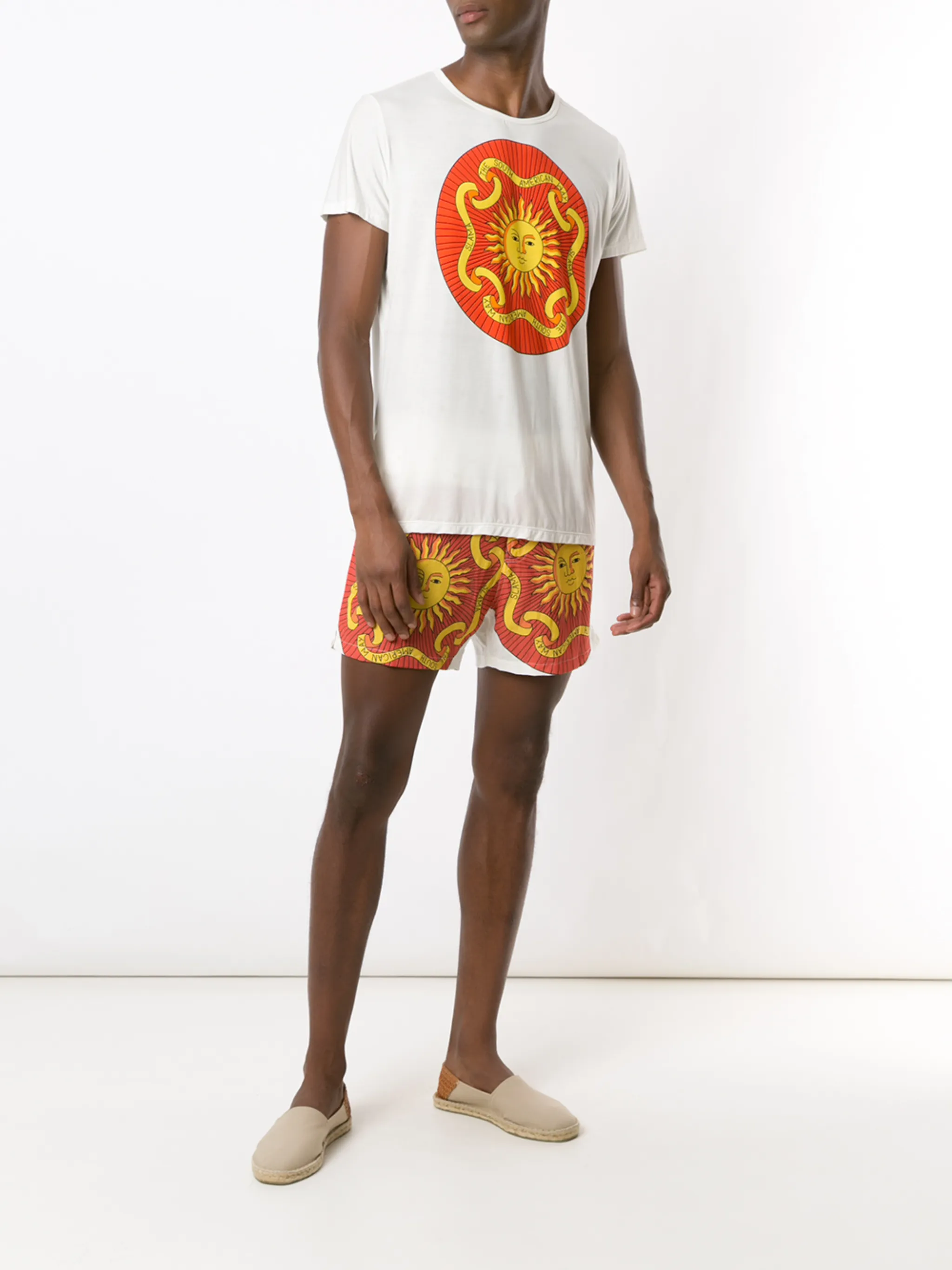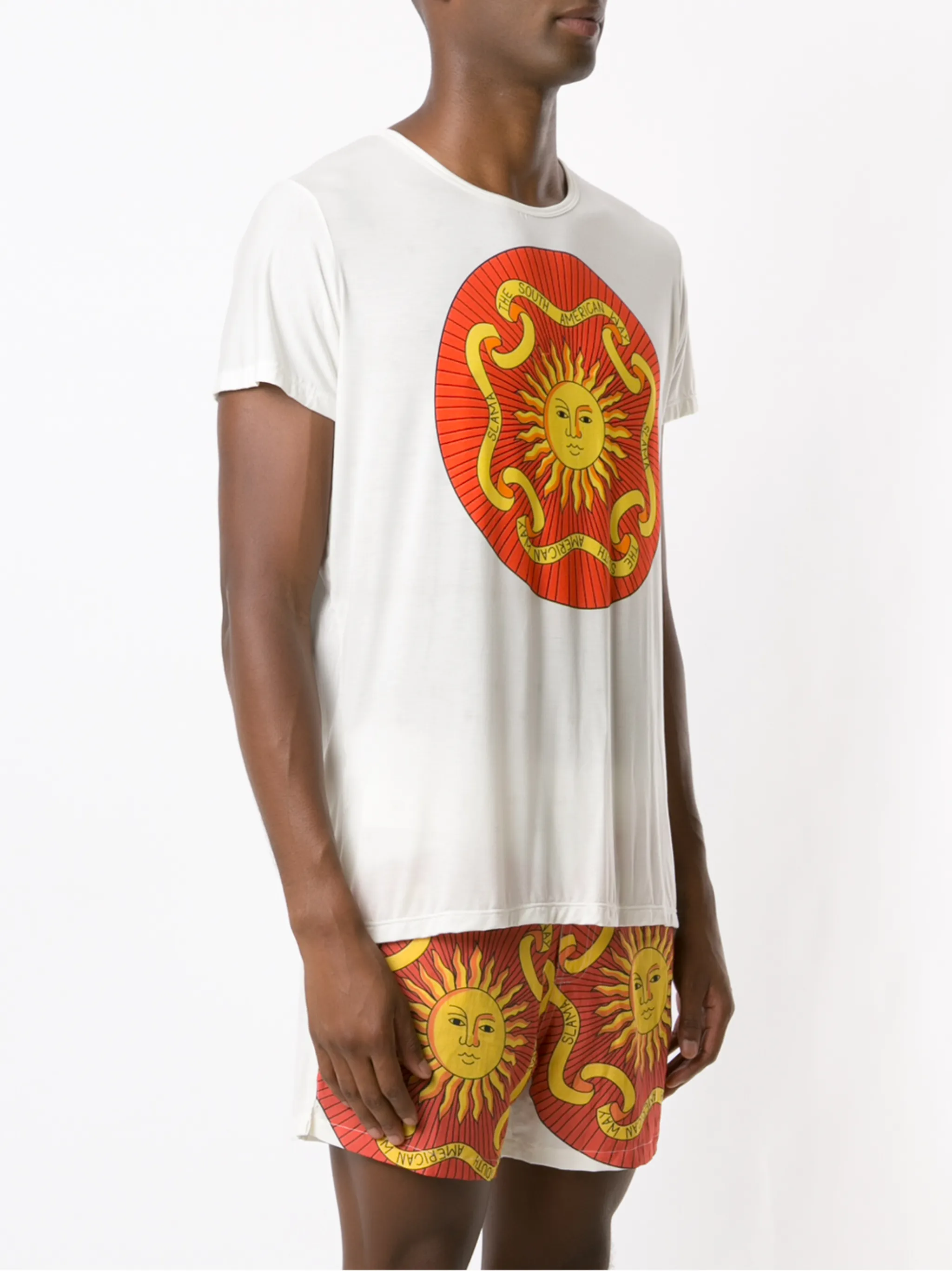 Футболка с принтом Sol от Amir Slama. Круглый вырез под горло, короткие рукава, принт спереди и прямой крой. Цвет: белый.