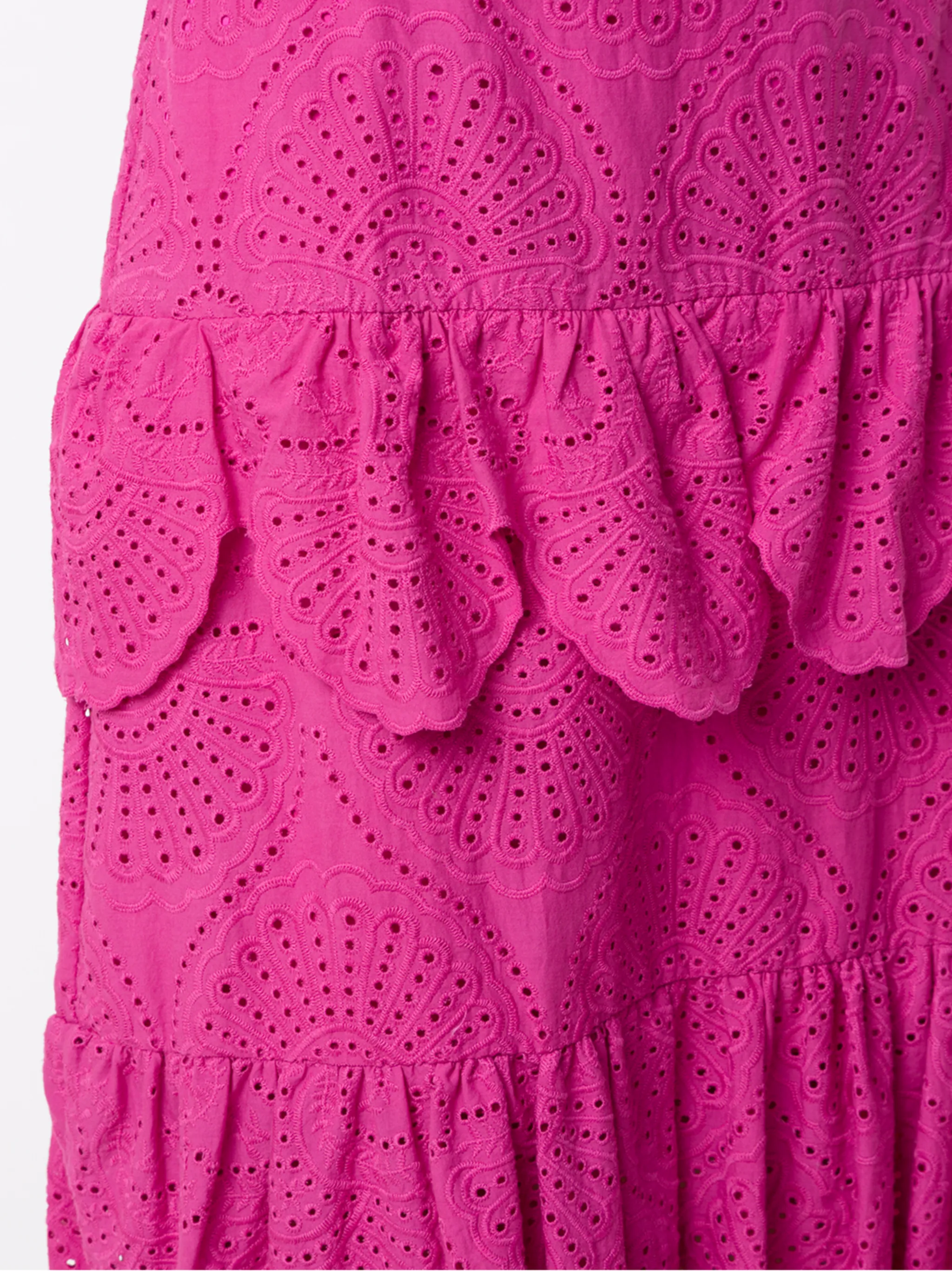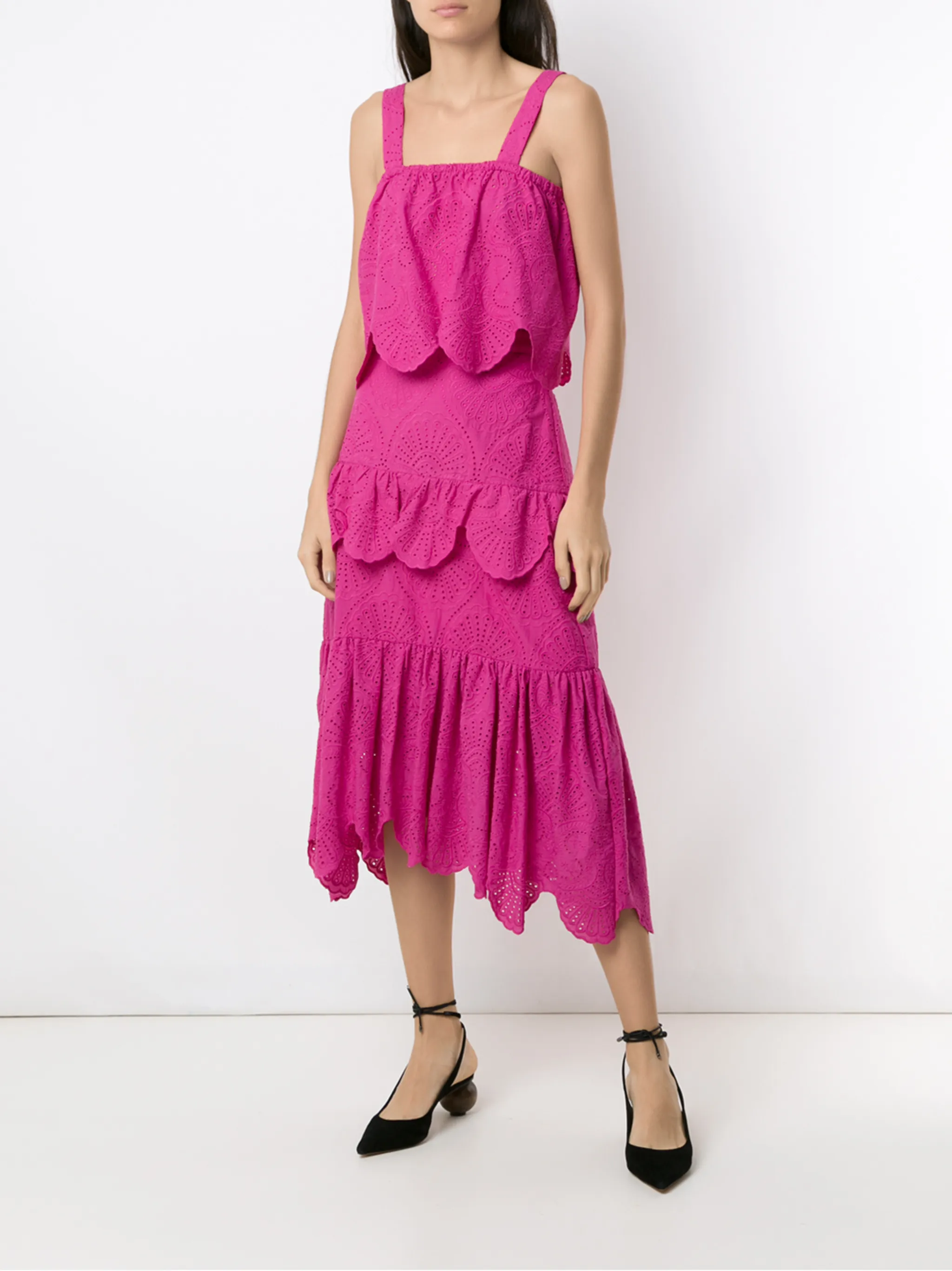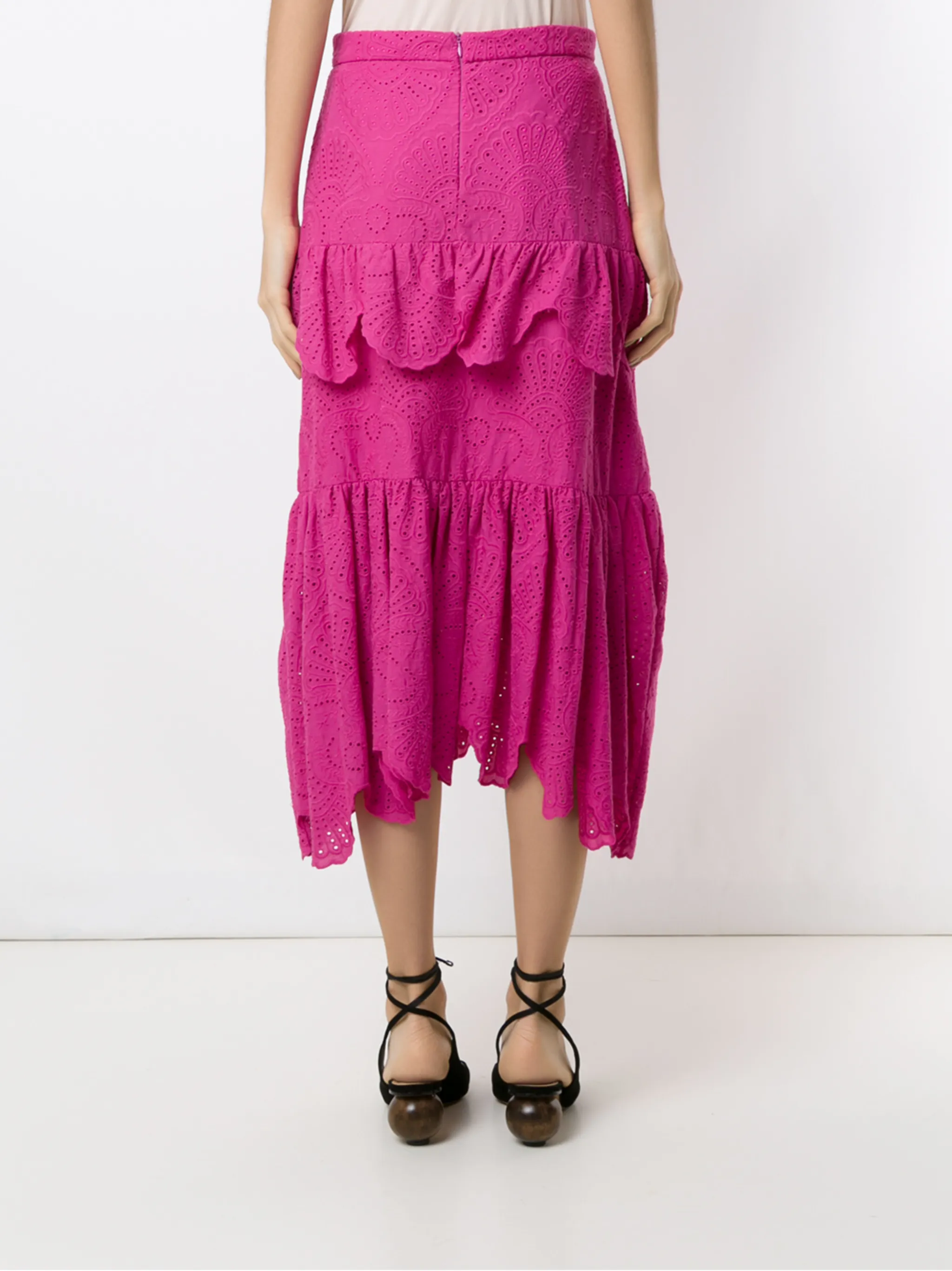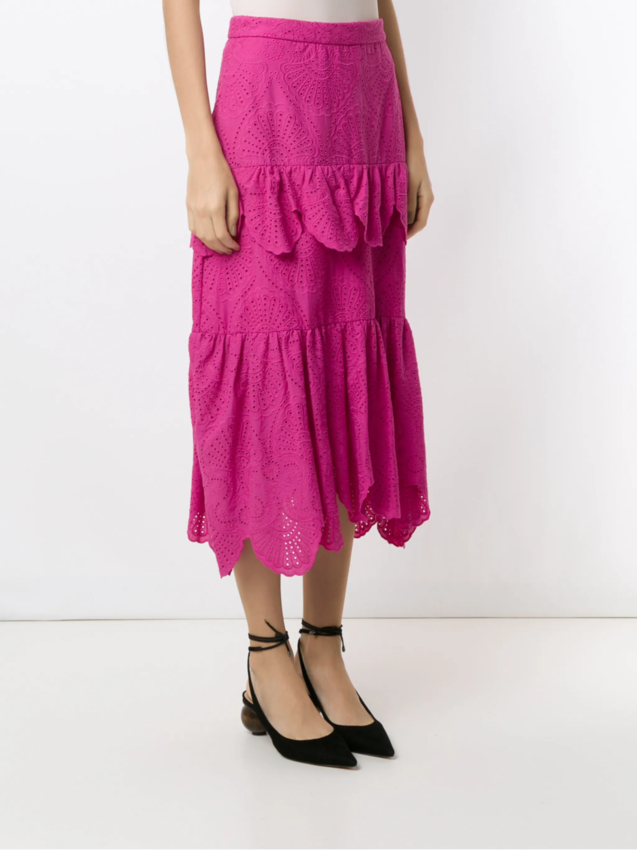 Юбка миди Nielle от Olympiah. Завышенная талия, многослойный дизайн, вырезные детали, деталь со сборкой, средней длины и прямой крой. Цвет: розовый.