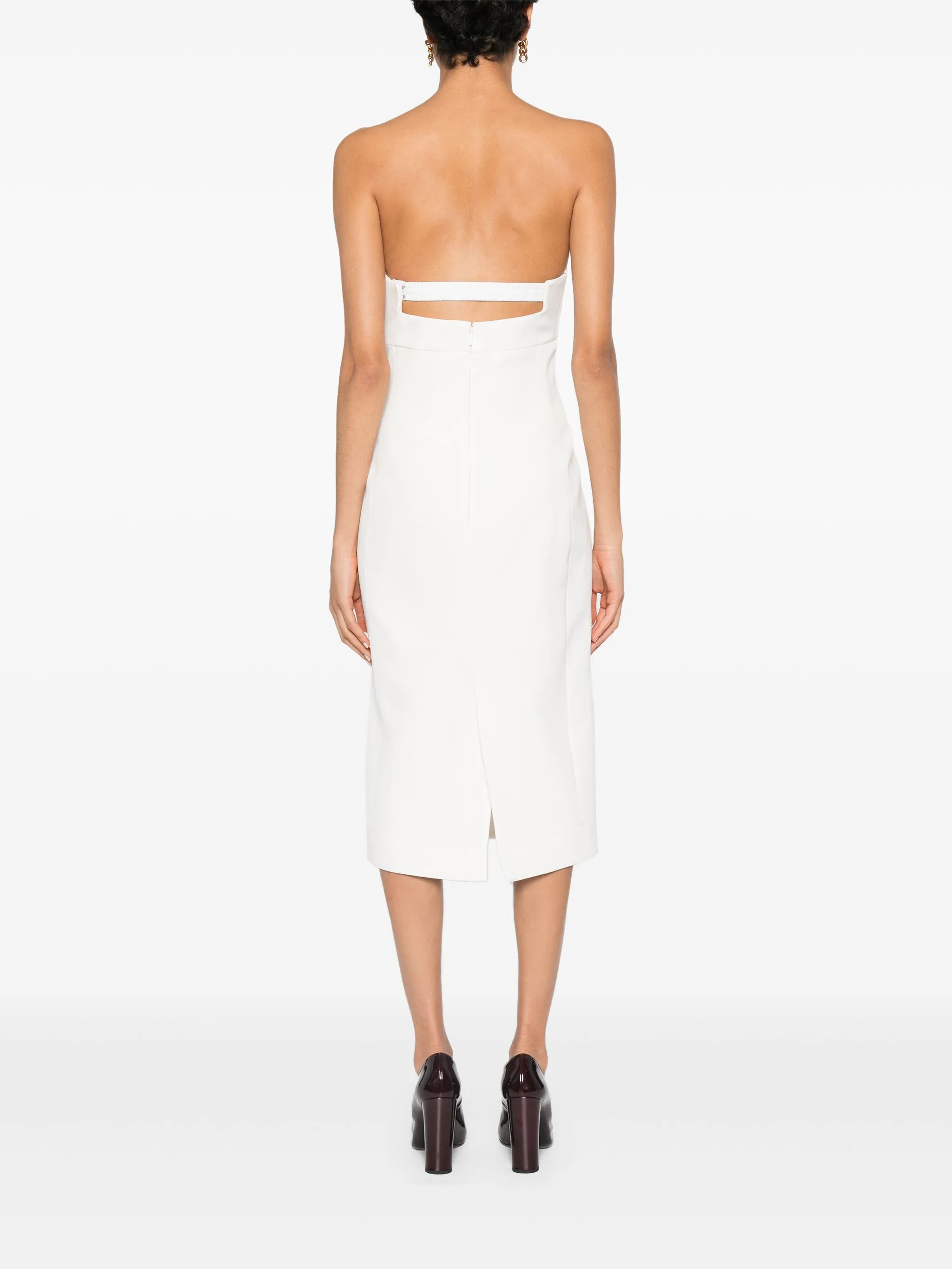 • Потайная застежка на крючках и молнии сзади