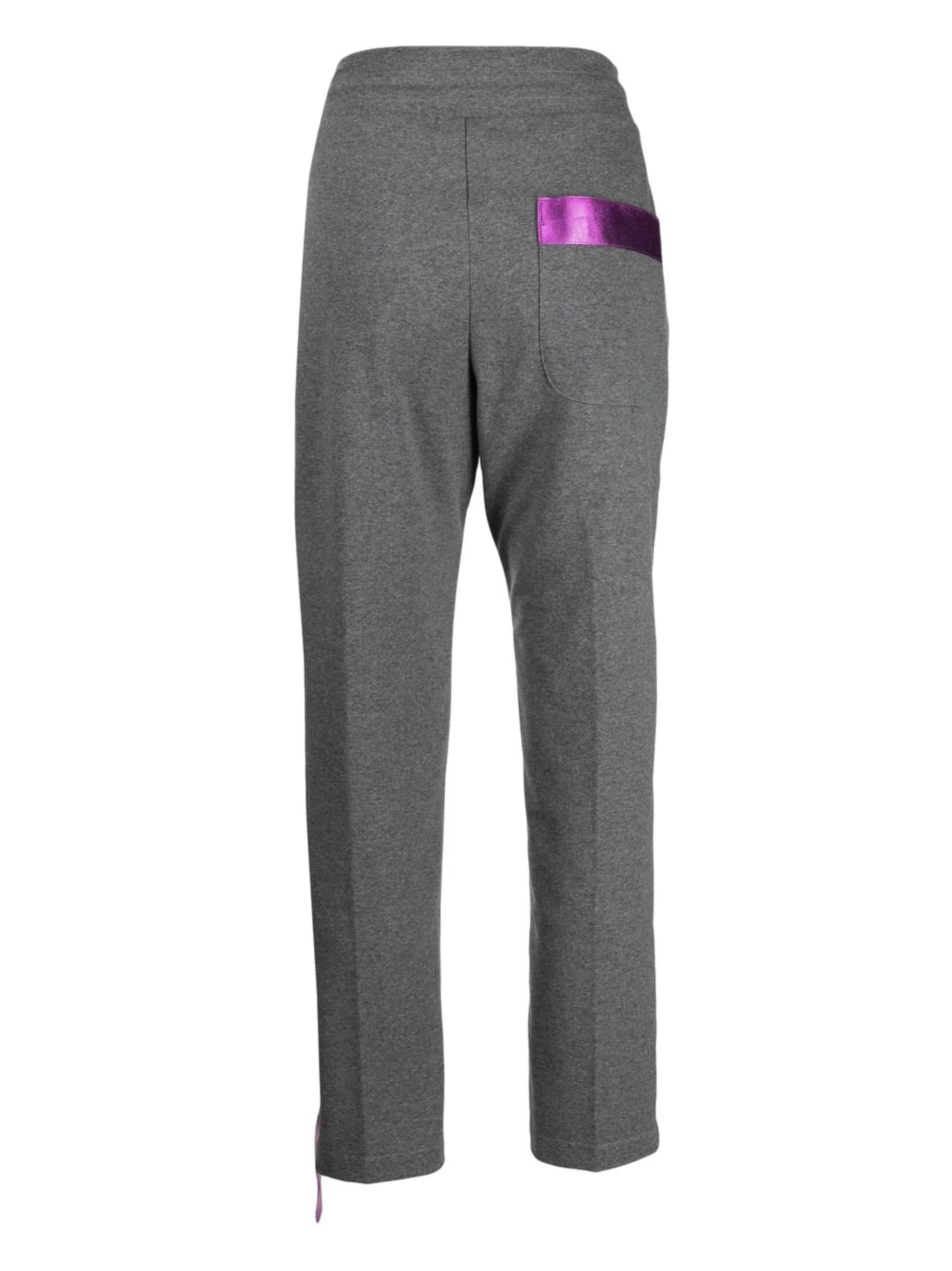 Серый, эластичный хлопок, кулиска на талии, два прорезных кармана по бокам, карман с клапаном сзади и манжеты на молнии.