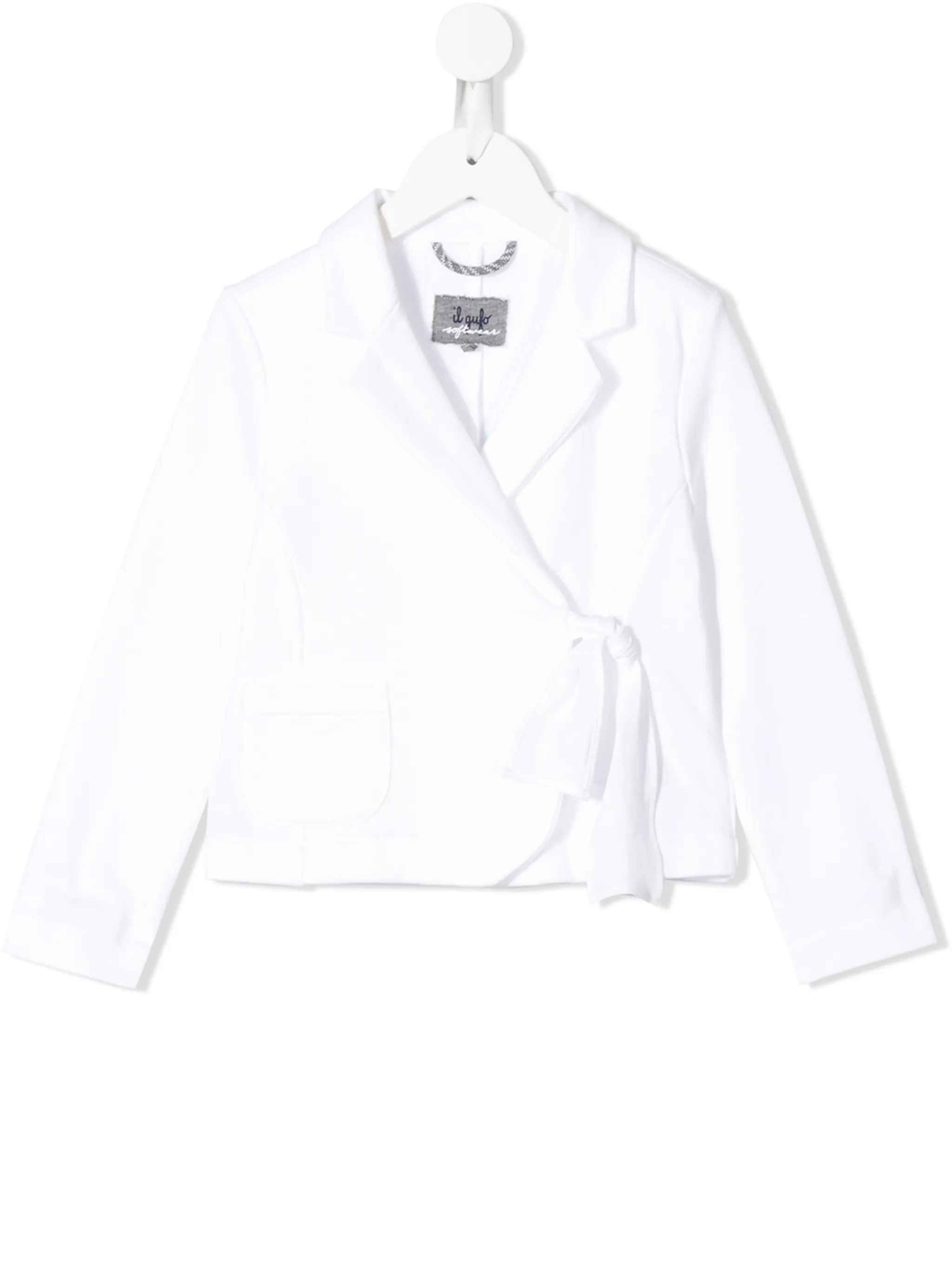 Пиджак с запахом от Il Gufo. Зазубренные лацканы, модель с запахом и длинные рукава. Цвет: белый.