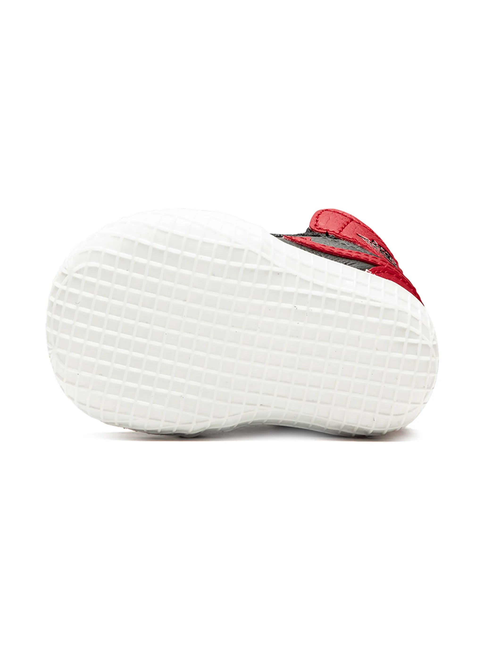 Кроссовки Jordan 1 Crib Bootie от Jordan. Закругленный носок, прошитые панели, модель слип-он, без застежки, язычок с логотипом, петля для подтягивания сзади, фирменная галочка Nike и резиновая подошва. Цвет: красный.
