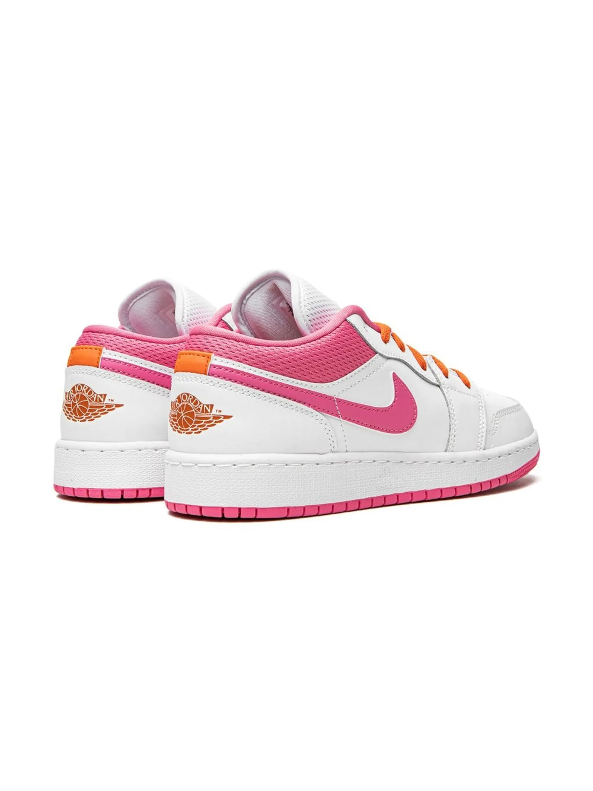 Белый, розовый, оранжевый, кожа, логотип Nike Swoosh, сетка, вставки, перфорация, логотип Jumpman, логотип Air Jordan Wings, закругленный носок, шнуровка спереди, резиновая подошва и подошва с технологией Air.