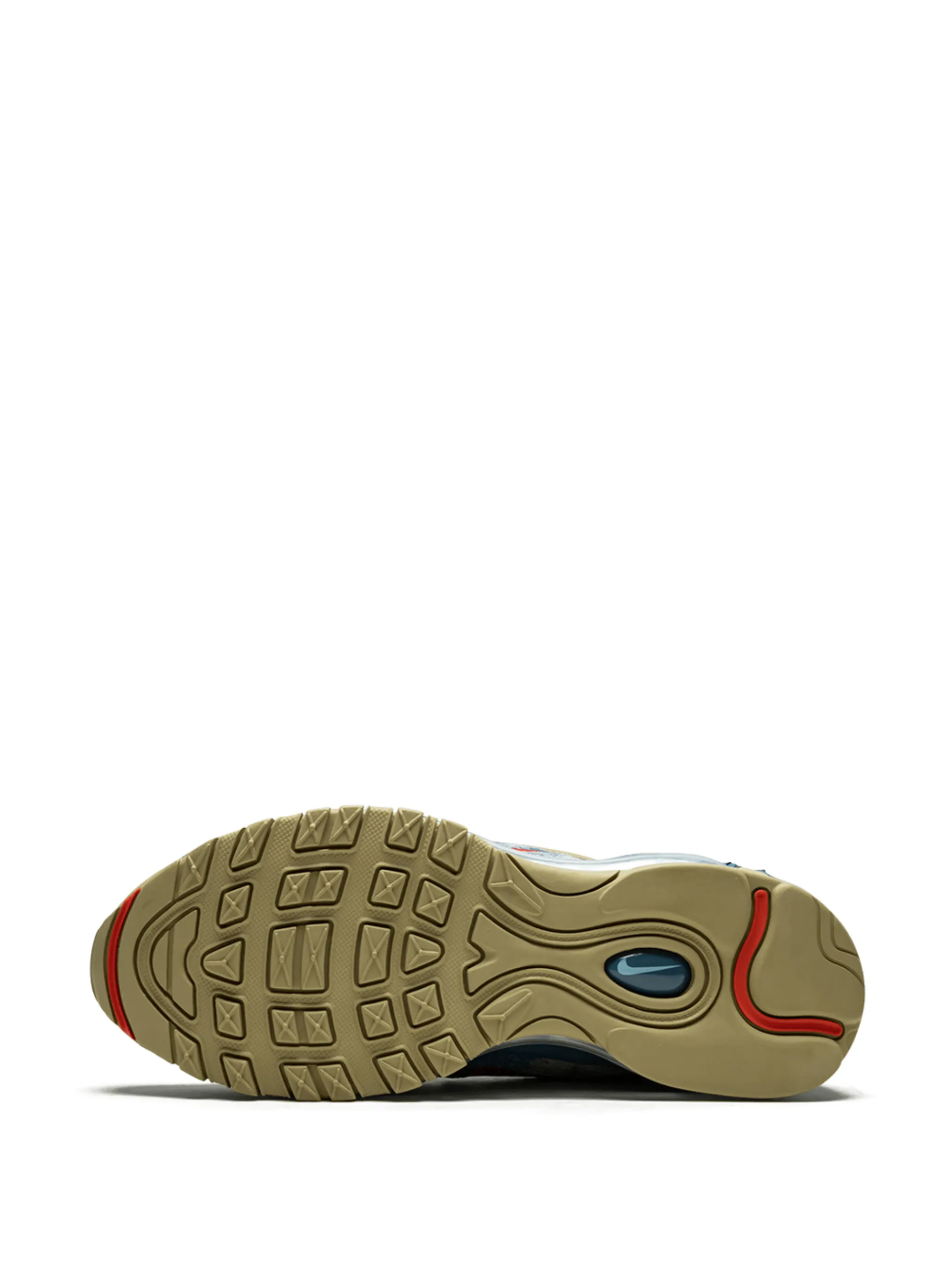 Кроссовки Air Max 97 от Nike (Найки). Закругленный носок, контрастные панели, фирменная галочка Nike, шнуровка спереди, петля для подтягивания сзади и резиновая подошва.