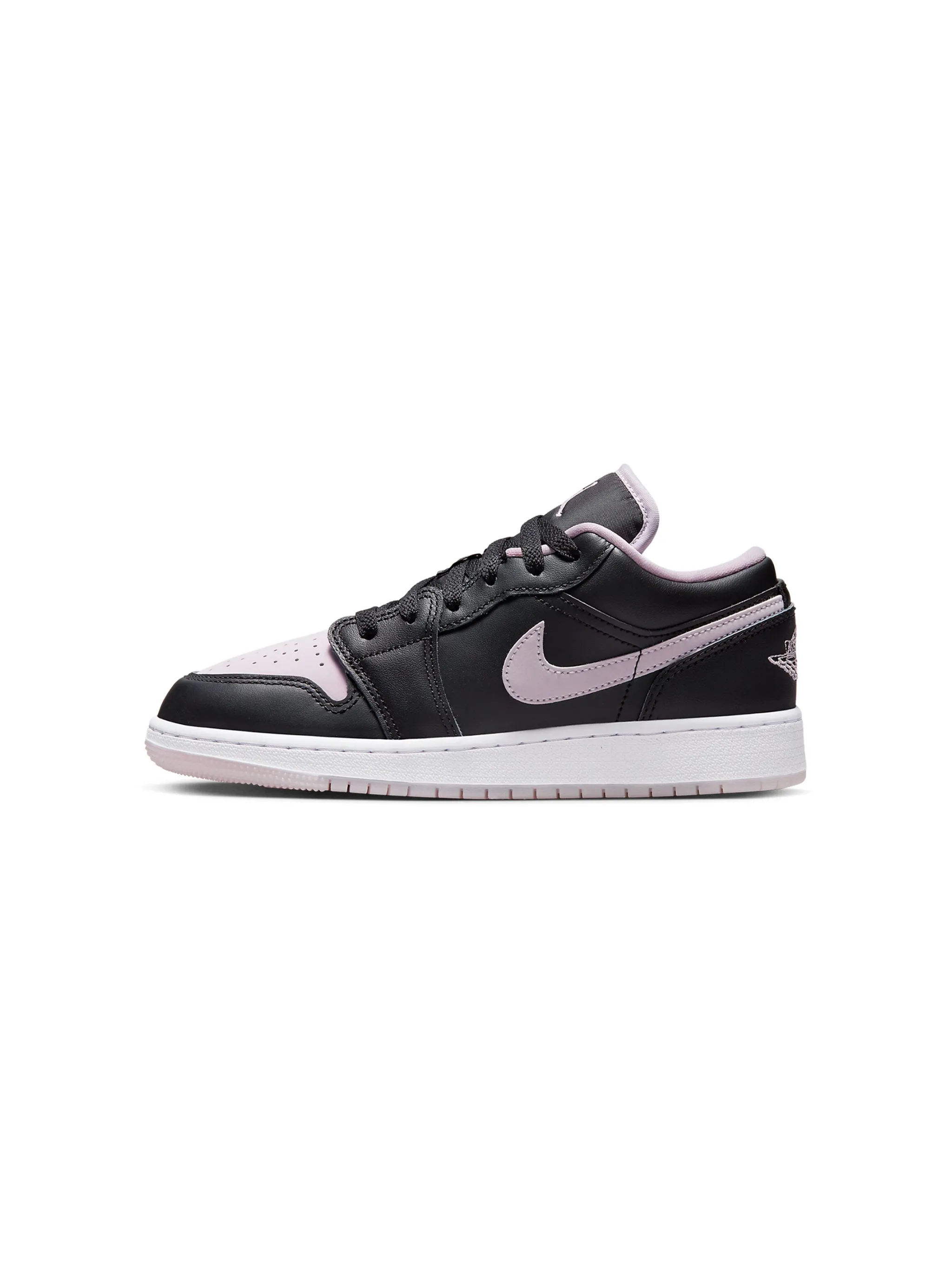 Черный, сирень, кожа, логотип Nike Swoosh, логотип Air Jordan Wings, закругленный носок, шнуровка спереди, язычок с вышитым логотипом, стелька с логотипом и резиновая подошва.