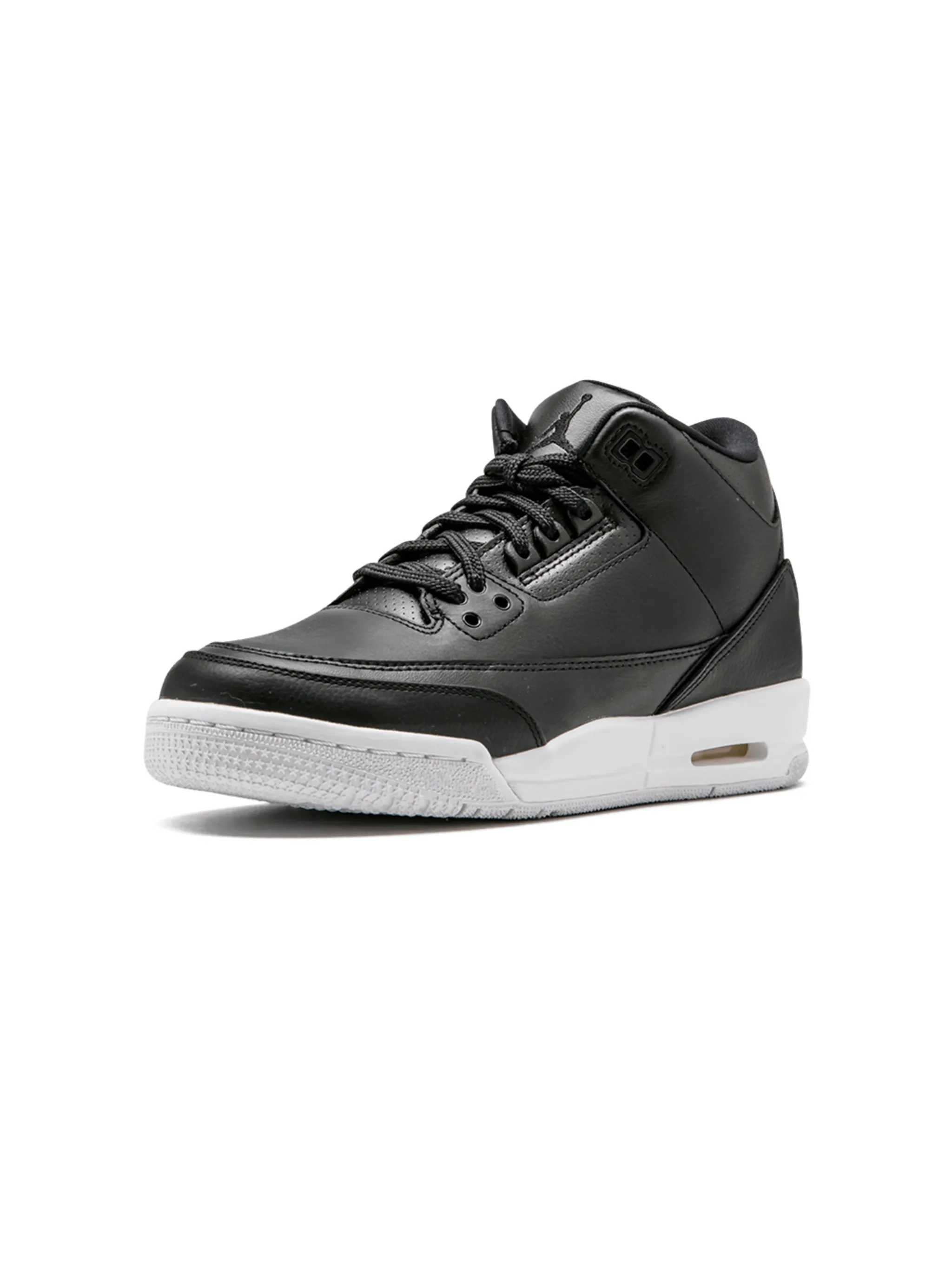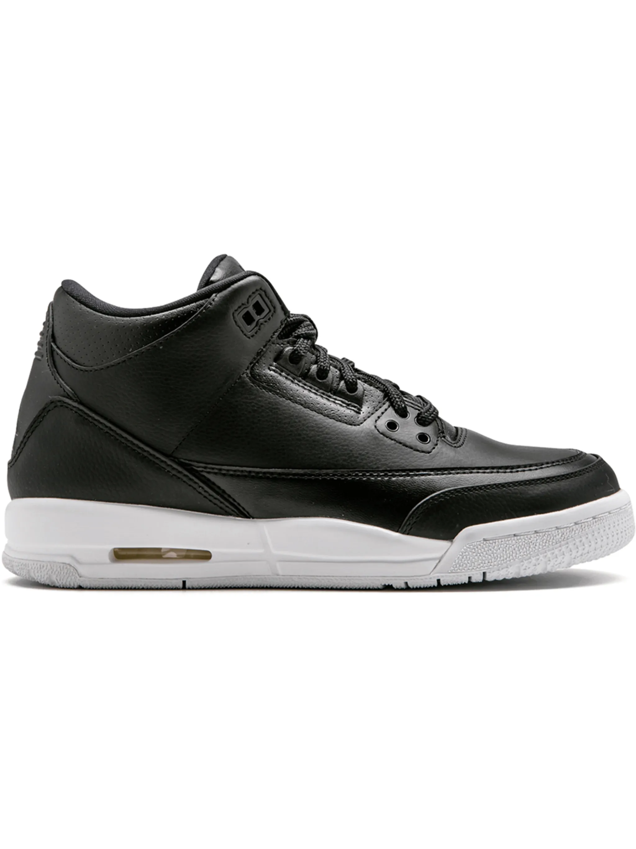 Черные кожаные кроссовки Air Jordan 3 Retro от Jordan. Закругленный носок, плоская подошва, нашивка с логотипом на язычке и шнуровка.