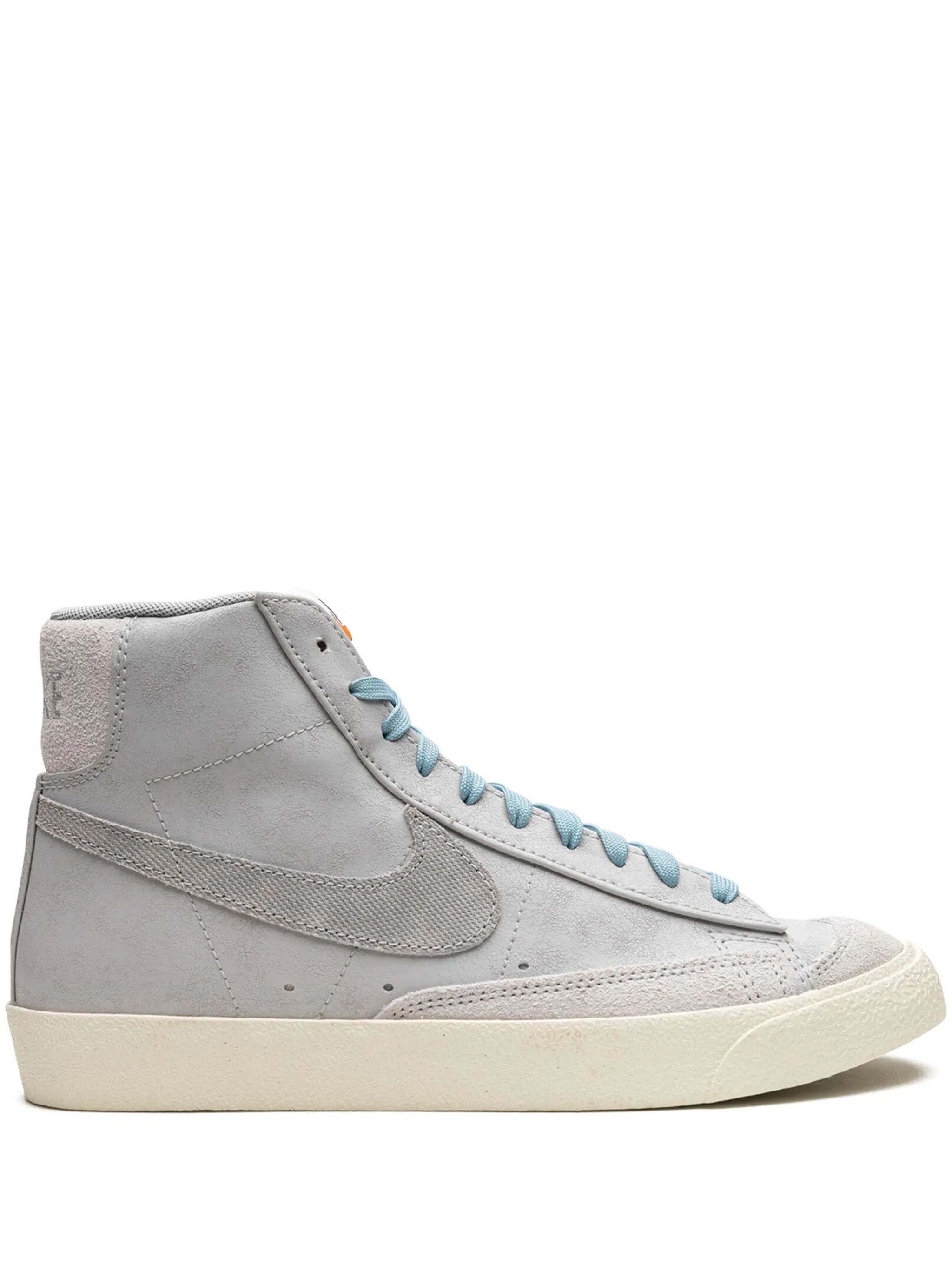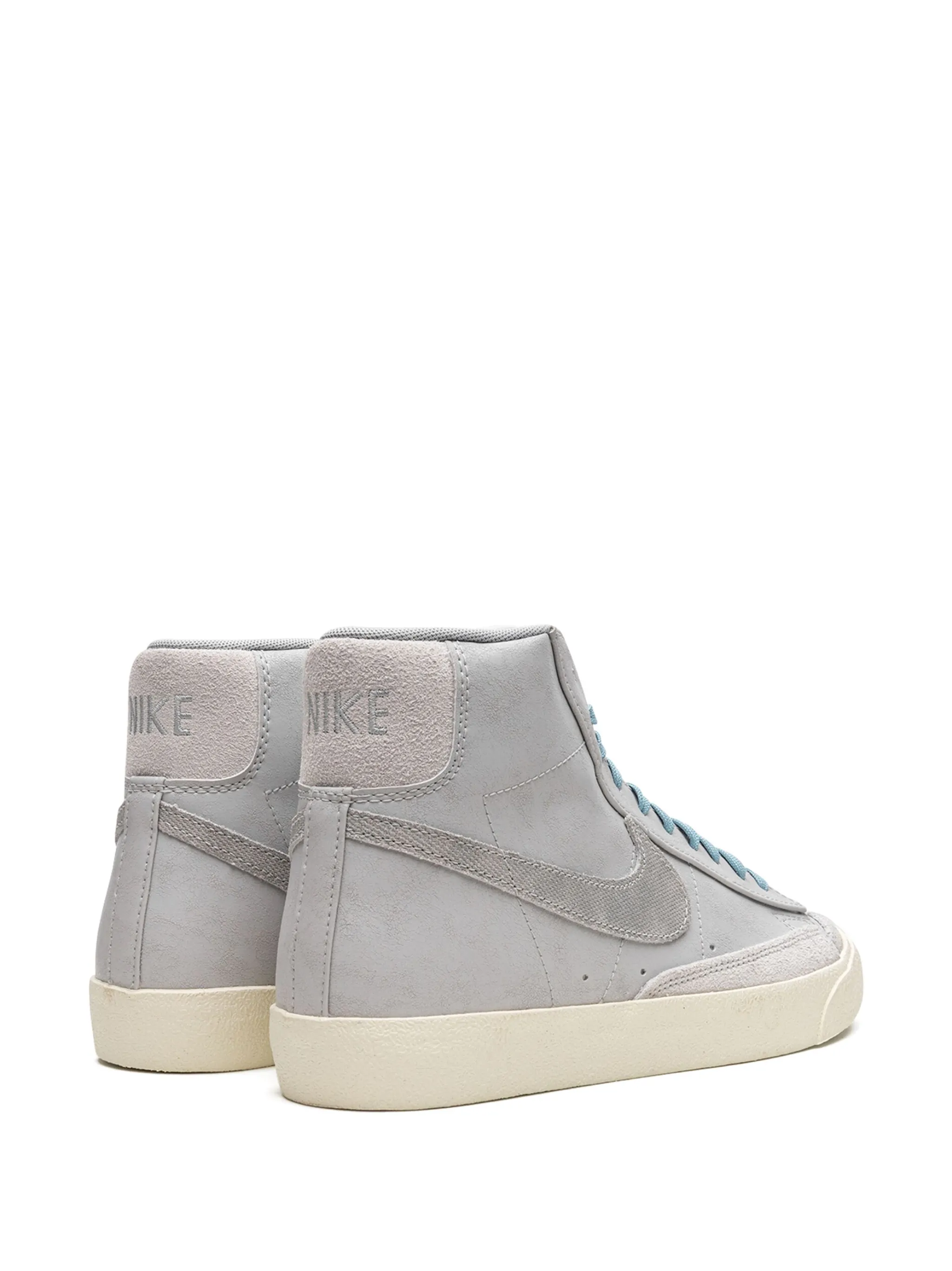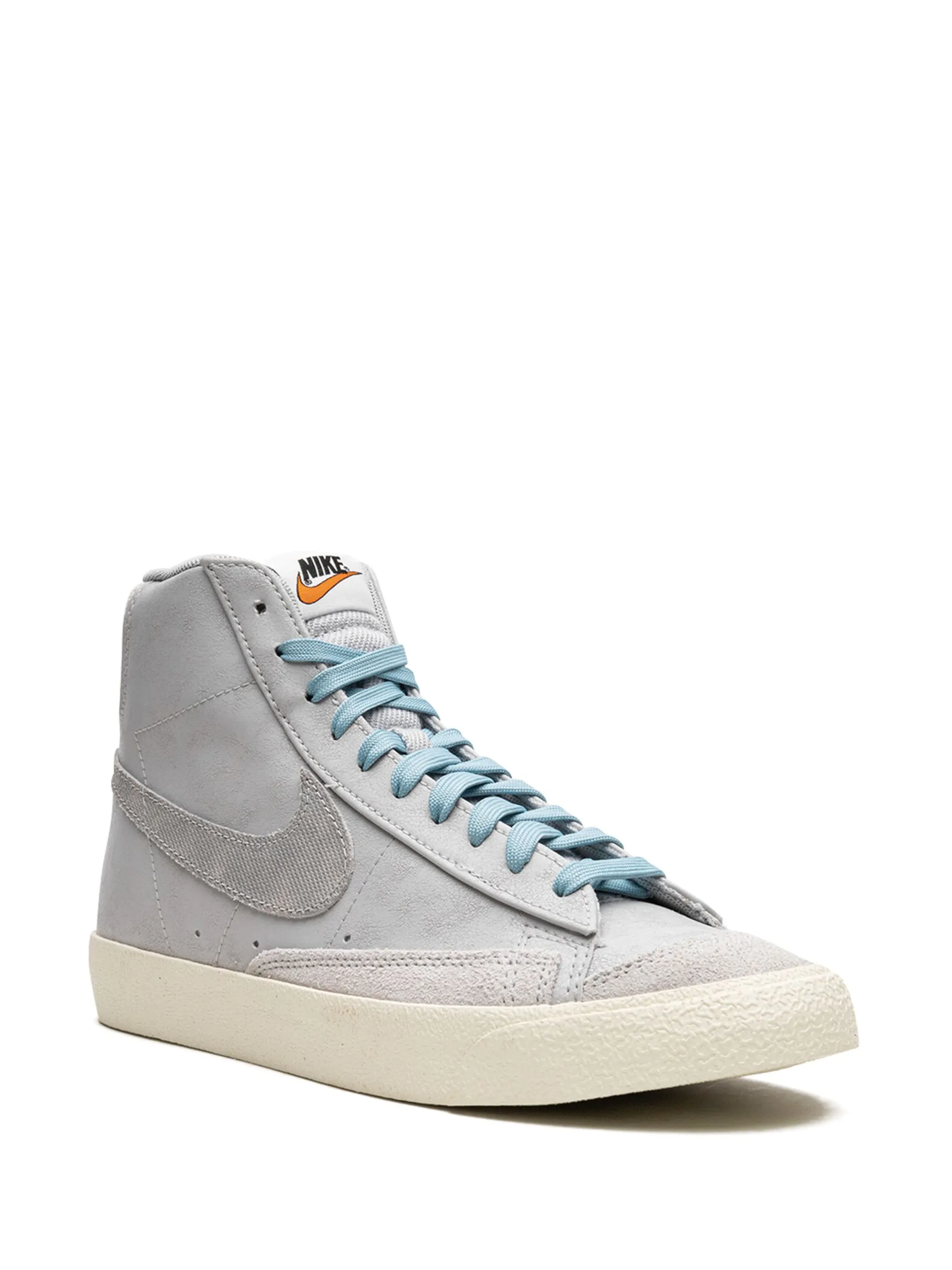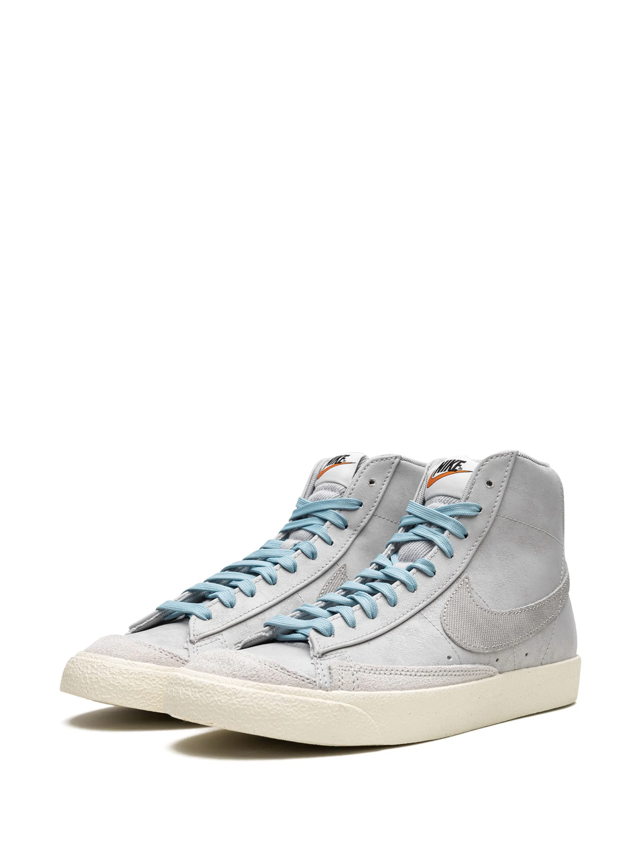 Светло-серый, синий, замша, логотип Nike Swoosh, вышитый логотип сзади, закругленный носок, шнуровка спереди, нашивка с логотипом на язычке, стелька с логотипом и резиновая подошва.