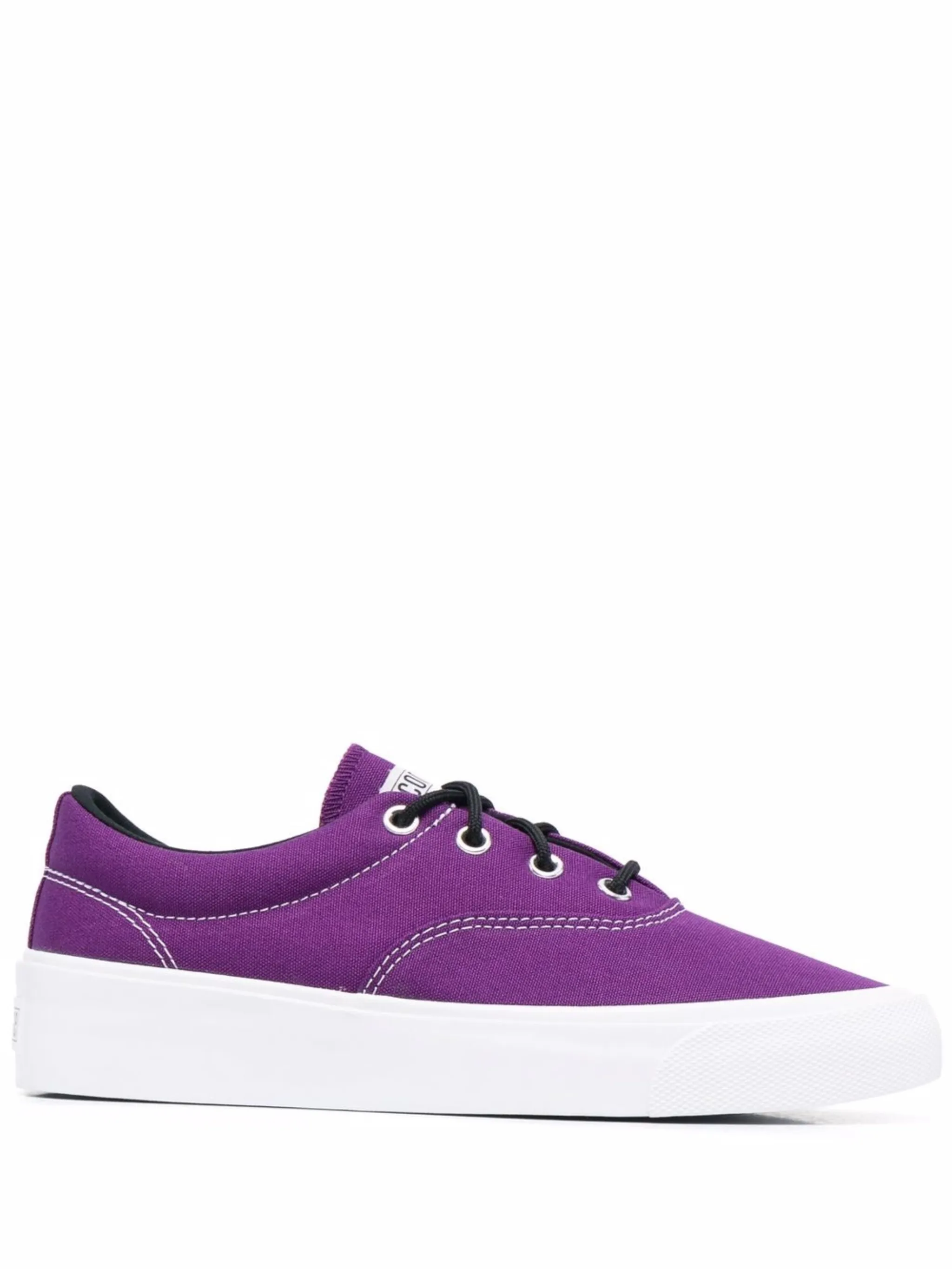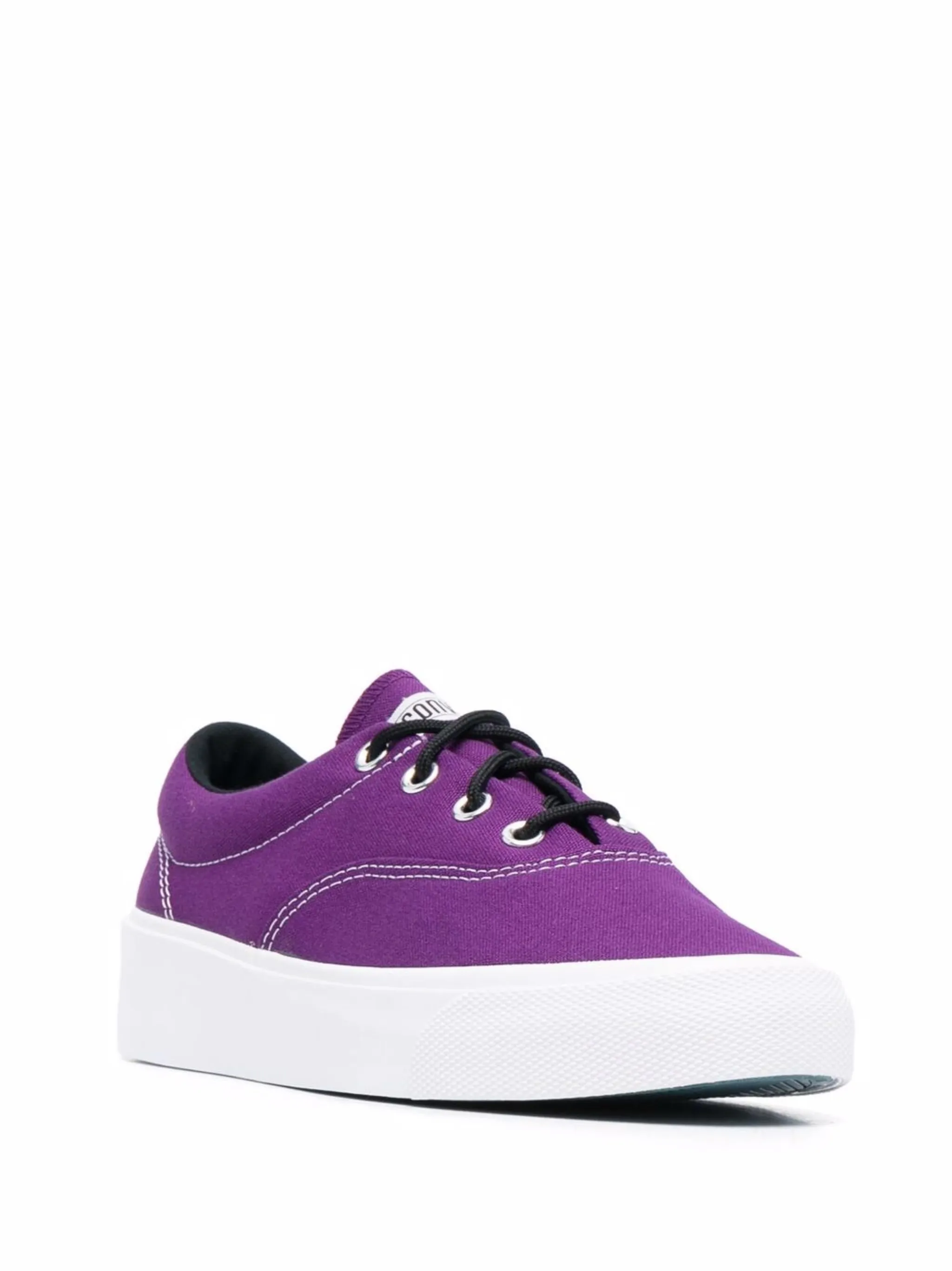 Нашивка с логотипом на язычке, контрастная строчка, закругленный носок, шнуровка спереди, стелька с логотипом и плоская резиновая подошва. Цвет: фиолетовый.