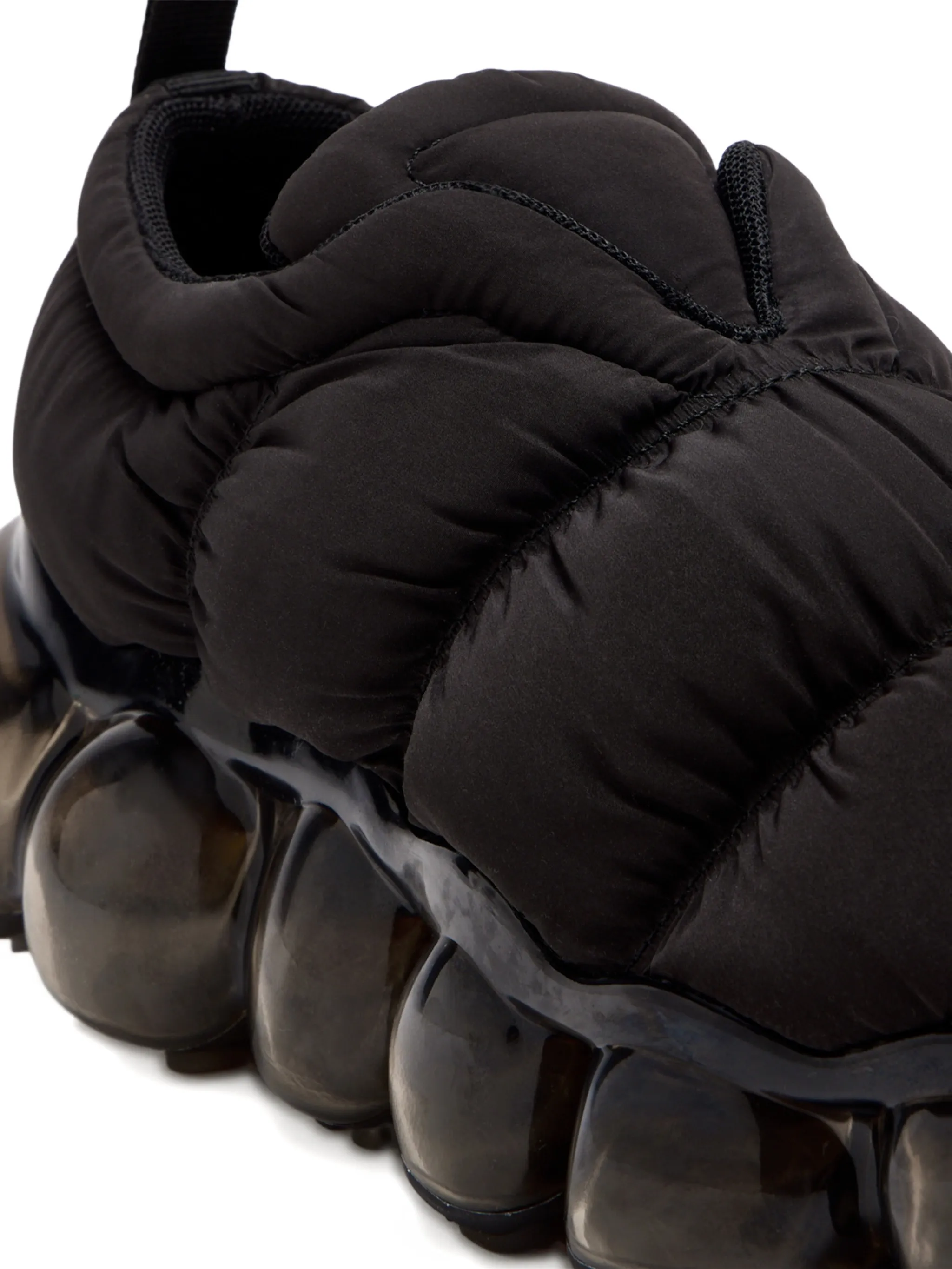 Мягкая конструкция, с выдвижным язычком, на черной пузырчатой подошве