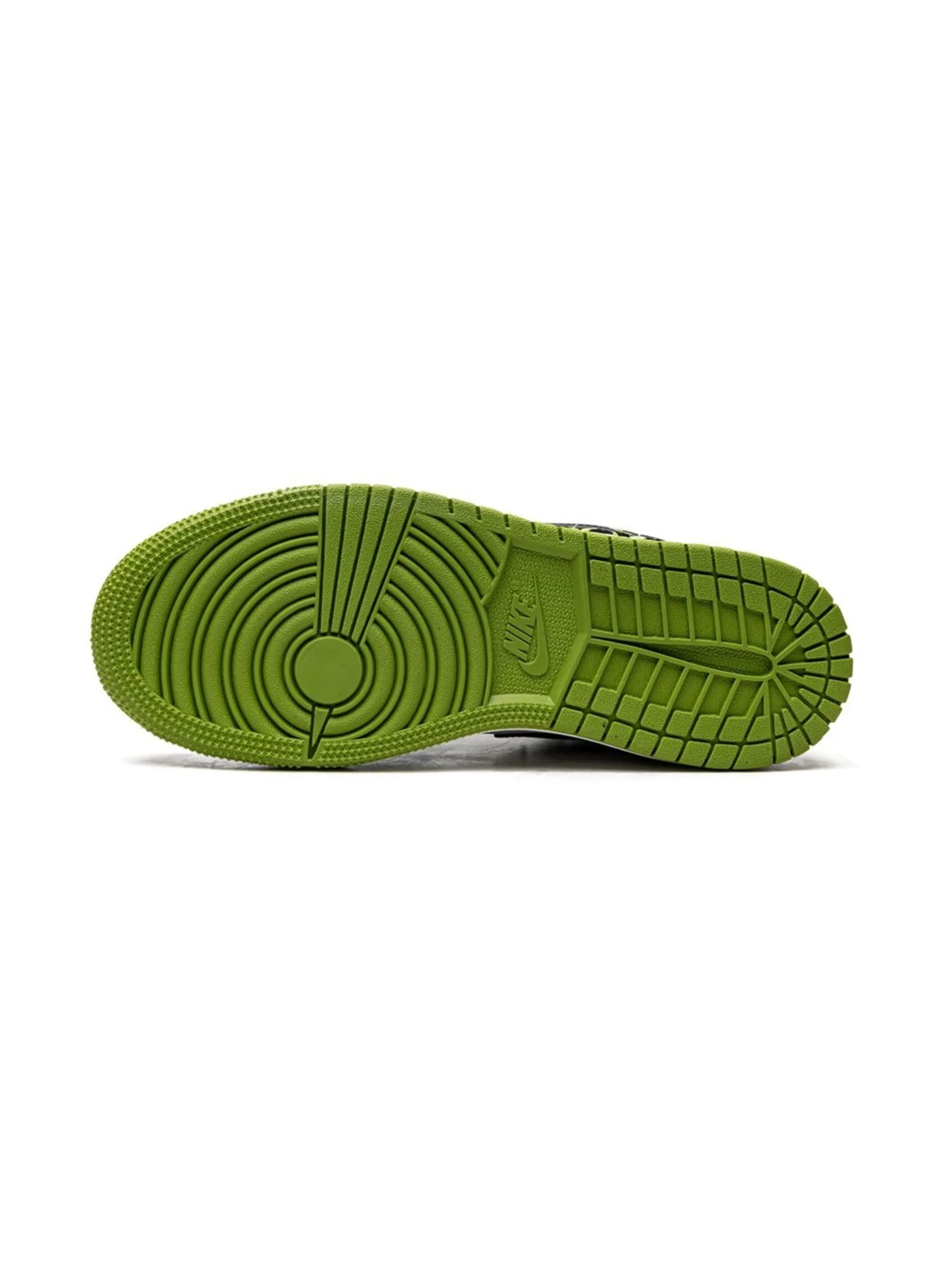 Черный, светло-зеленый, белый, телячья кожа, логотип Nike Swoosh, логотип Air Jordan Wings, вышитый узор, закругленный носок, шнуровка спереди, язычок с вышитым логотипом, стелька с логотипом и резиновая подошва.