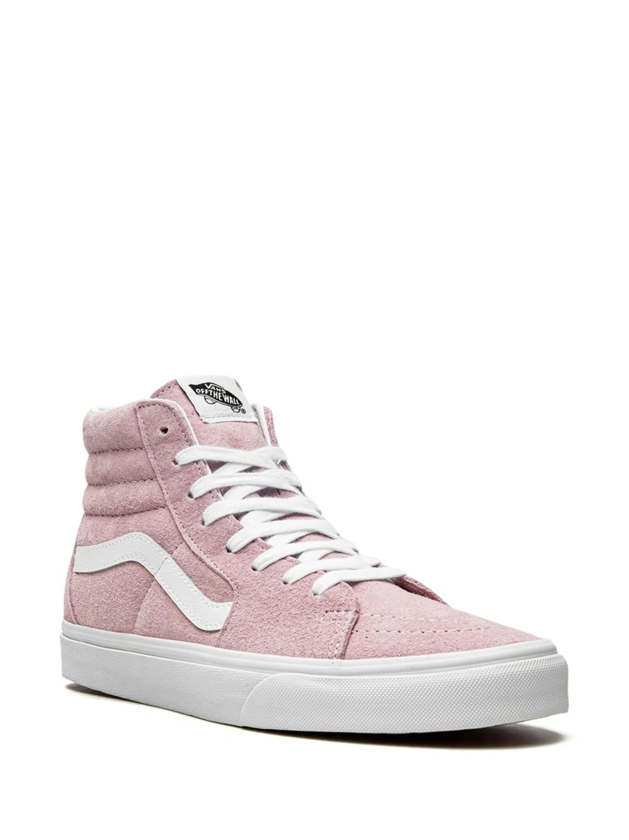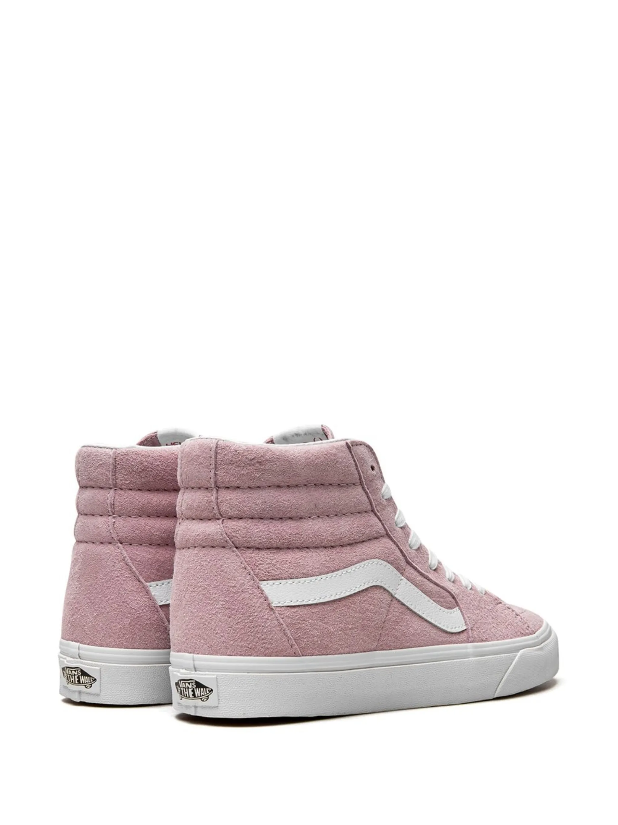 Розовый, замша, полоска сбоку, закругленный носок, шнуровка спереди, нашивка с логотипом на язычке, высота по щиколотку, стелька с логотипом и плоская резиновая подошва.