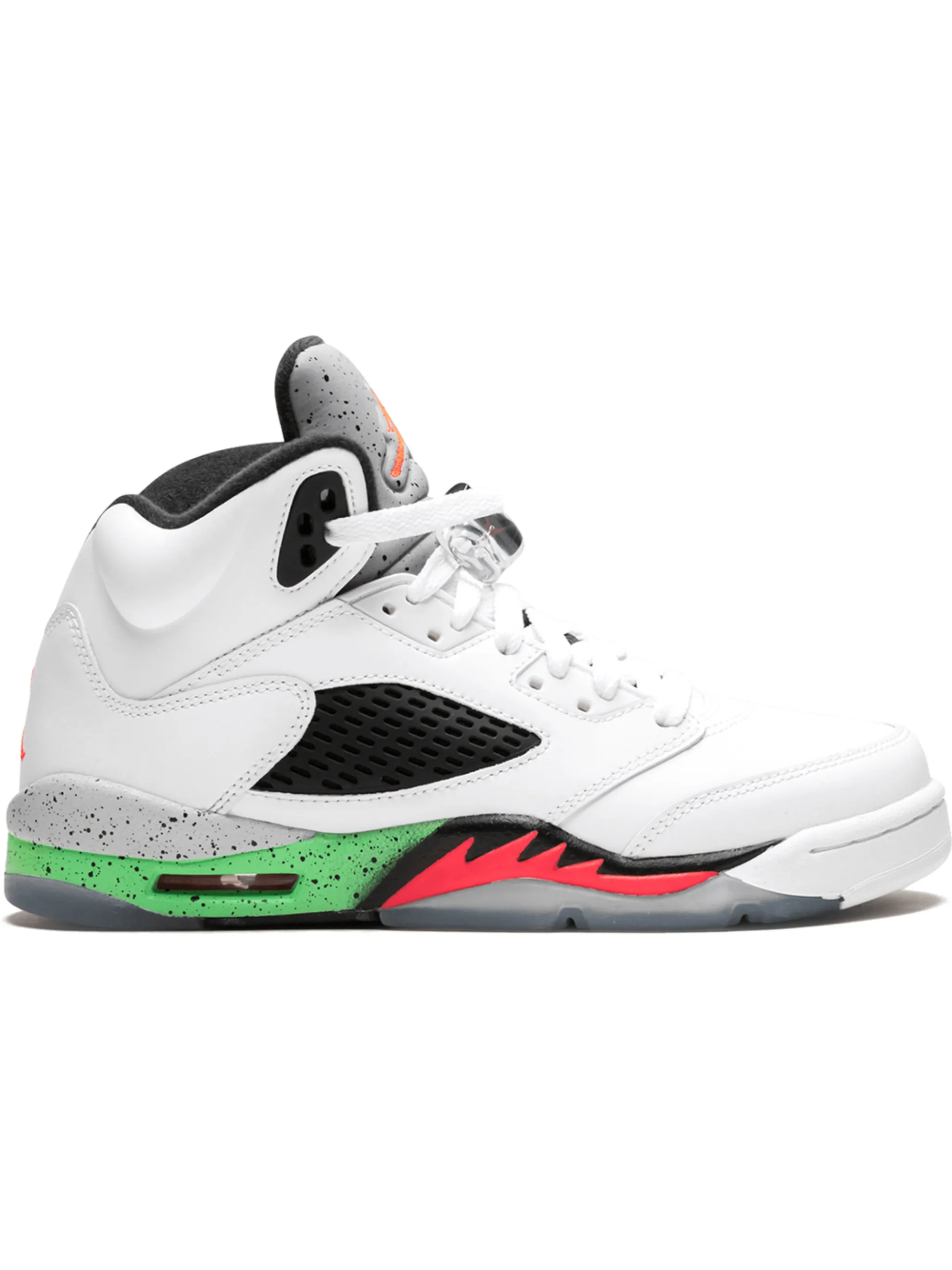 Кроссовки Air Jordan 5 Retro BG от Jordan. Закругленный носок, плоская подошва, застежка на шнуровке, дизайн колор-блок и заплатка с логотипом на язычке. .