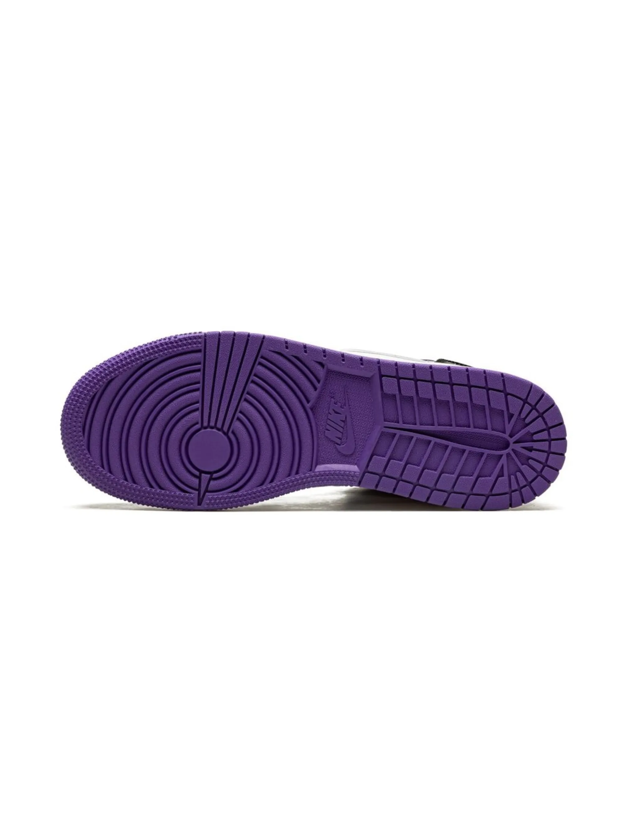 Фиолетовый, белый, черный, кожа, логотип Nike Swoosh, логотип Air Jordan Wings, контрастные вставки, закругленный носок, шнуровка спереди, нашивка с логотипом на язычке, высота по щиколотку, стелька с логотипом и резиновая подошва.