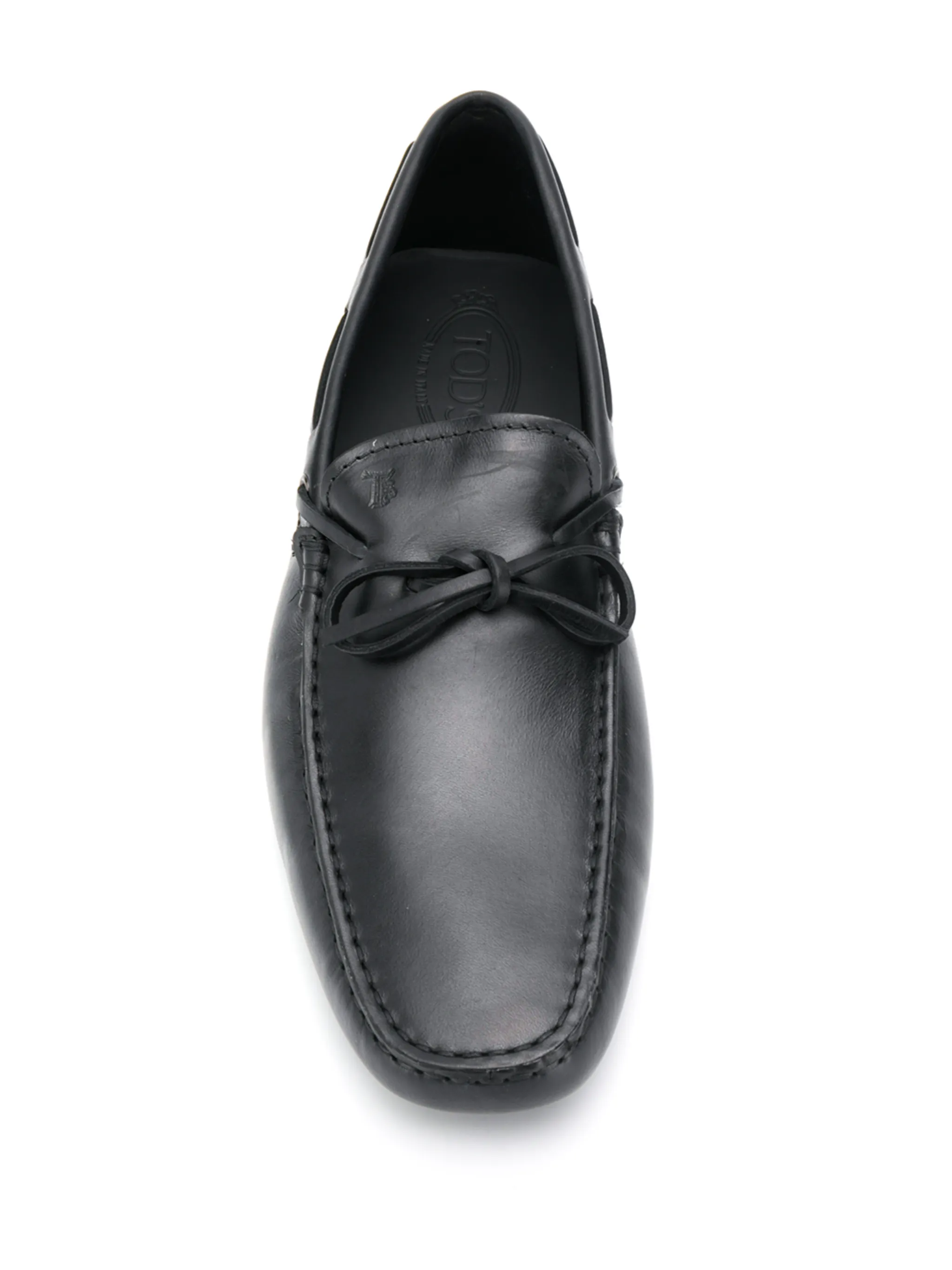 Лоферы Gommino от Tod's (Тодс). Ребристая резиновая подошва, стелька с тиснением бренда, квадратный носок и бант. Цвет: черный.