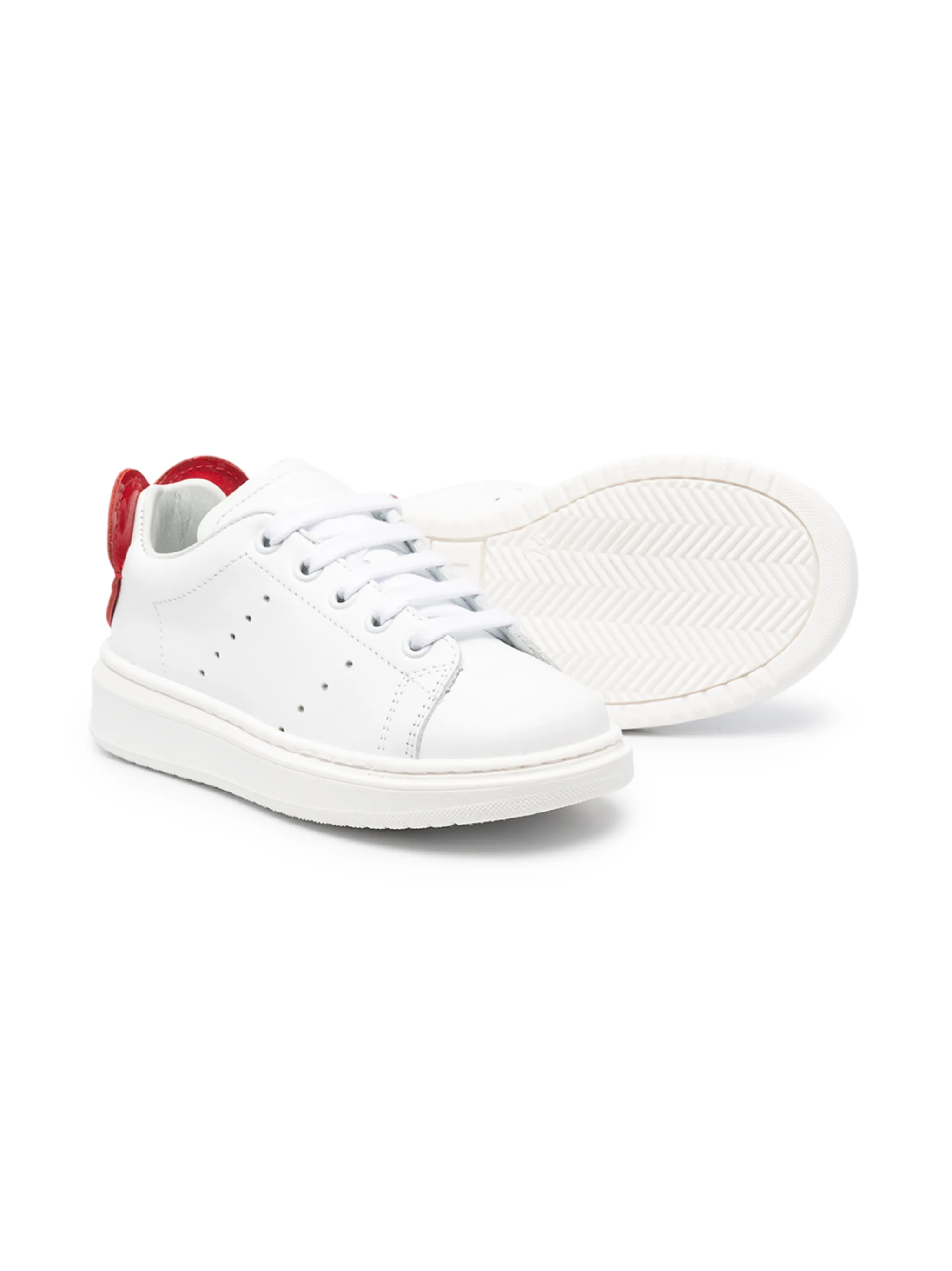 Белый кожа, закругленный носок, перфорация, стелька с логотипом, контрастный задник, шнуровка спереди, плоская резиновая подошва