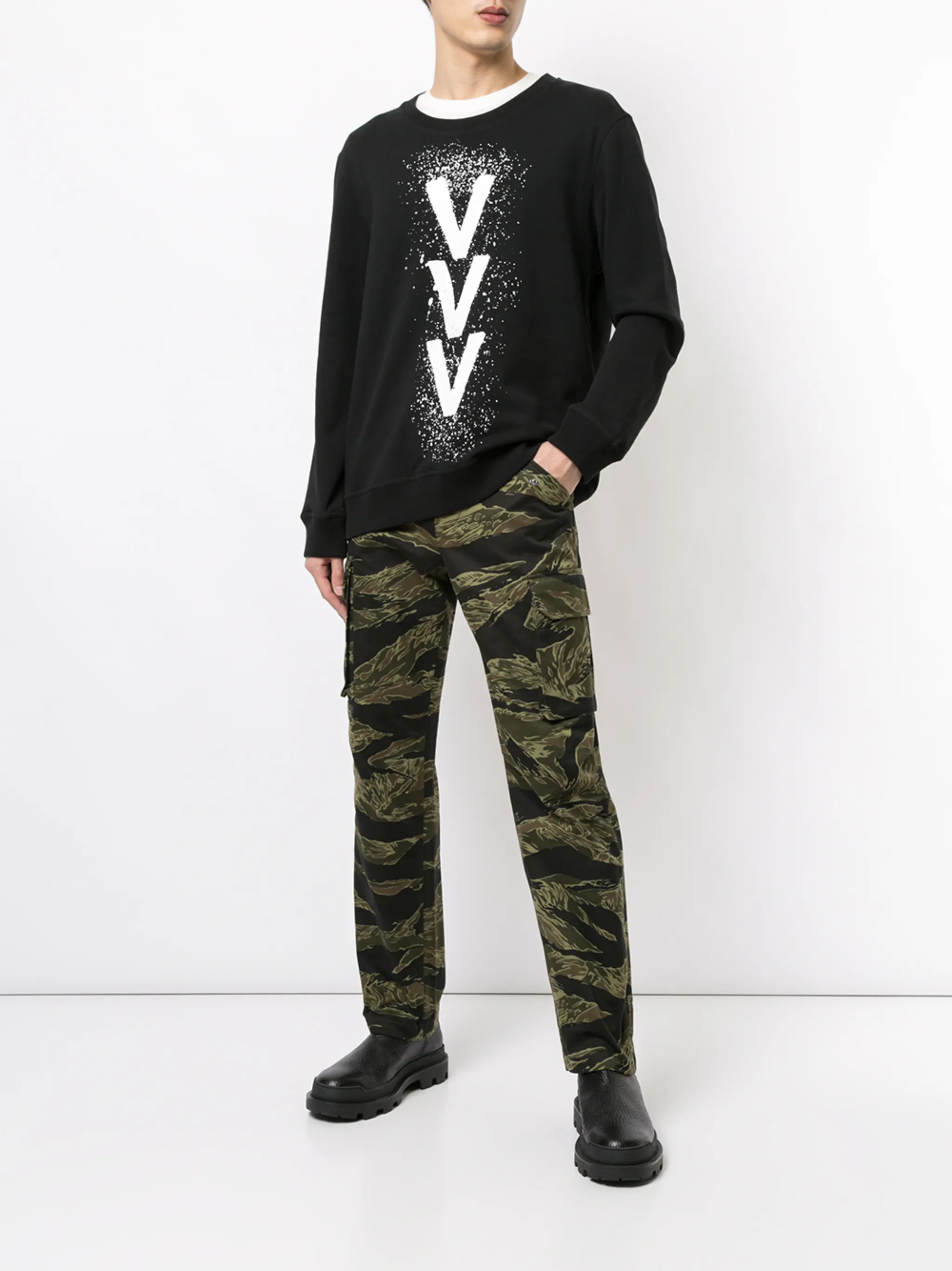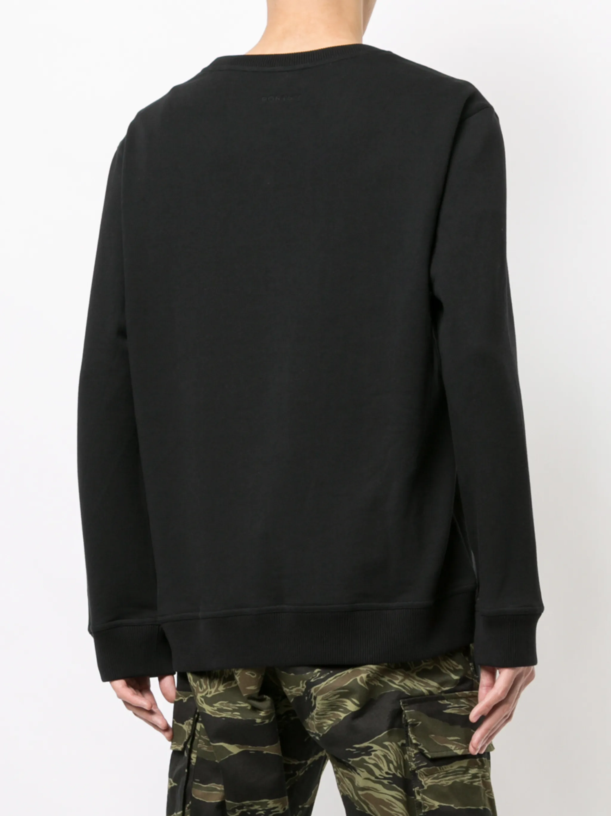 Толстовка с принтом от Ports V. Круглый вырез под горло в рубчик, длинные рукава, свободный крой, подол и манжеты в рубчик и принт с логотипом спереди.