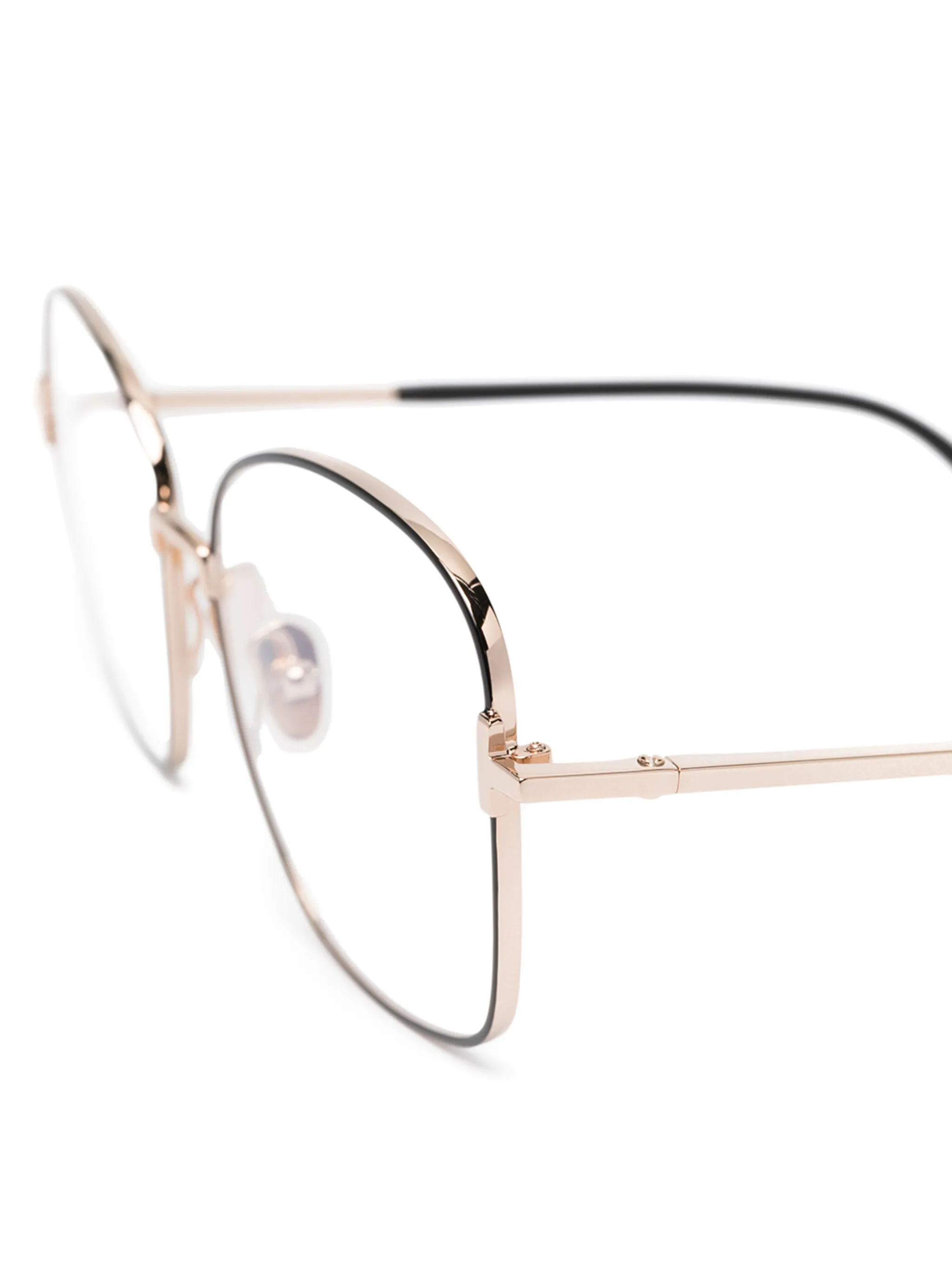 Круглая оправа и носоупоры. Прилагается защитный чехол.