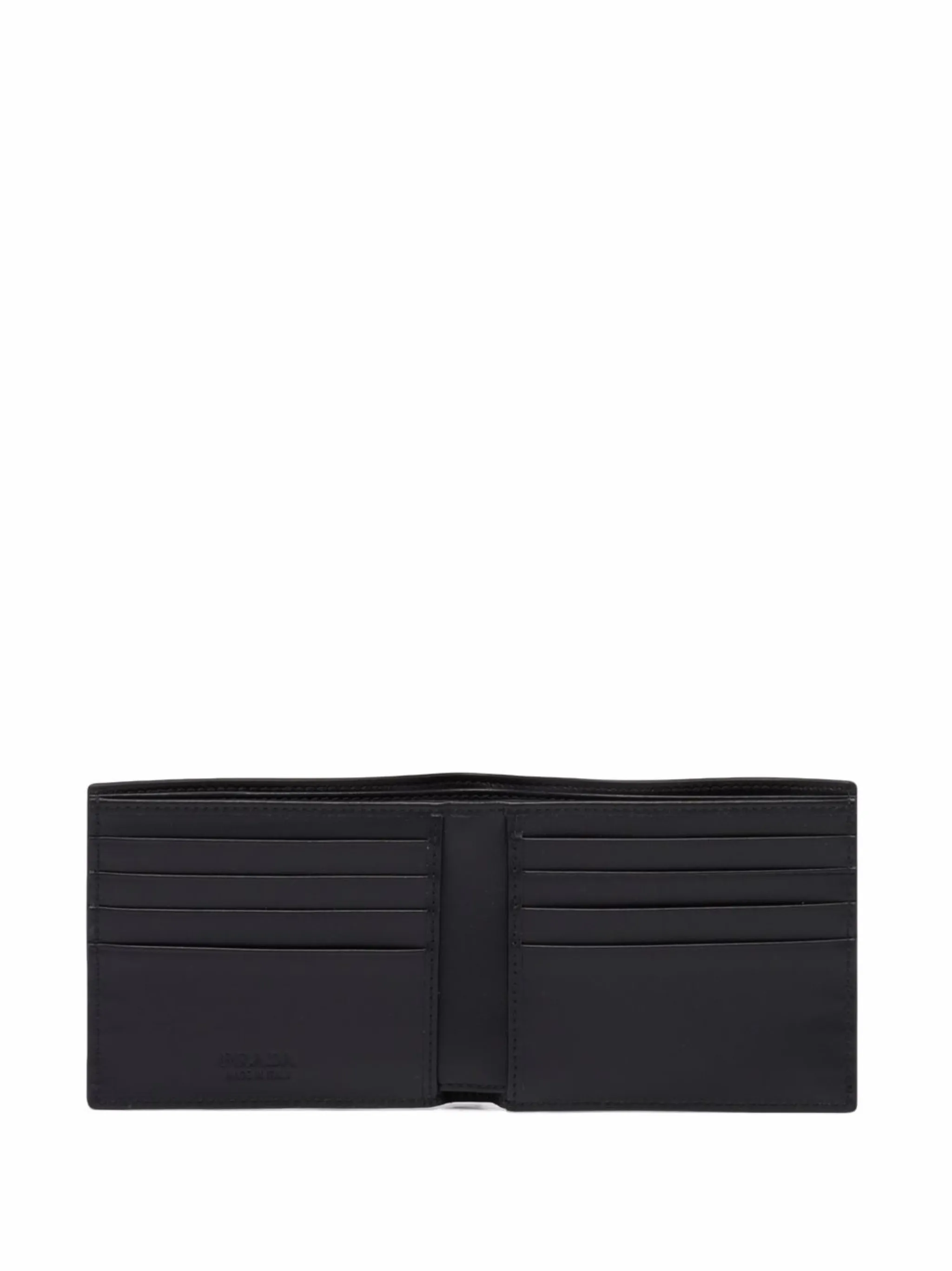 Треугольный эмалированный логотип, вставки, тональная строчка, серебристая фурнитура, отделение для купюр, внутренние отделения для карт и тисненый логотип внутри. Цвет: черный.