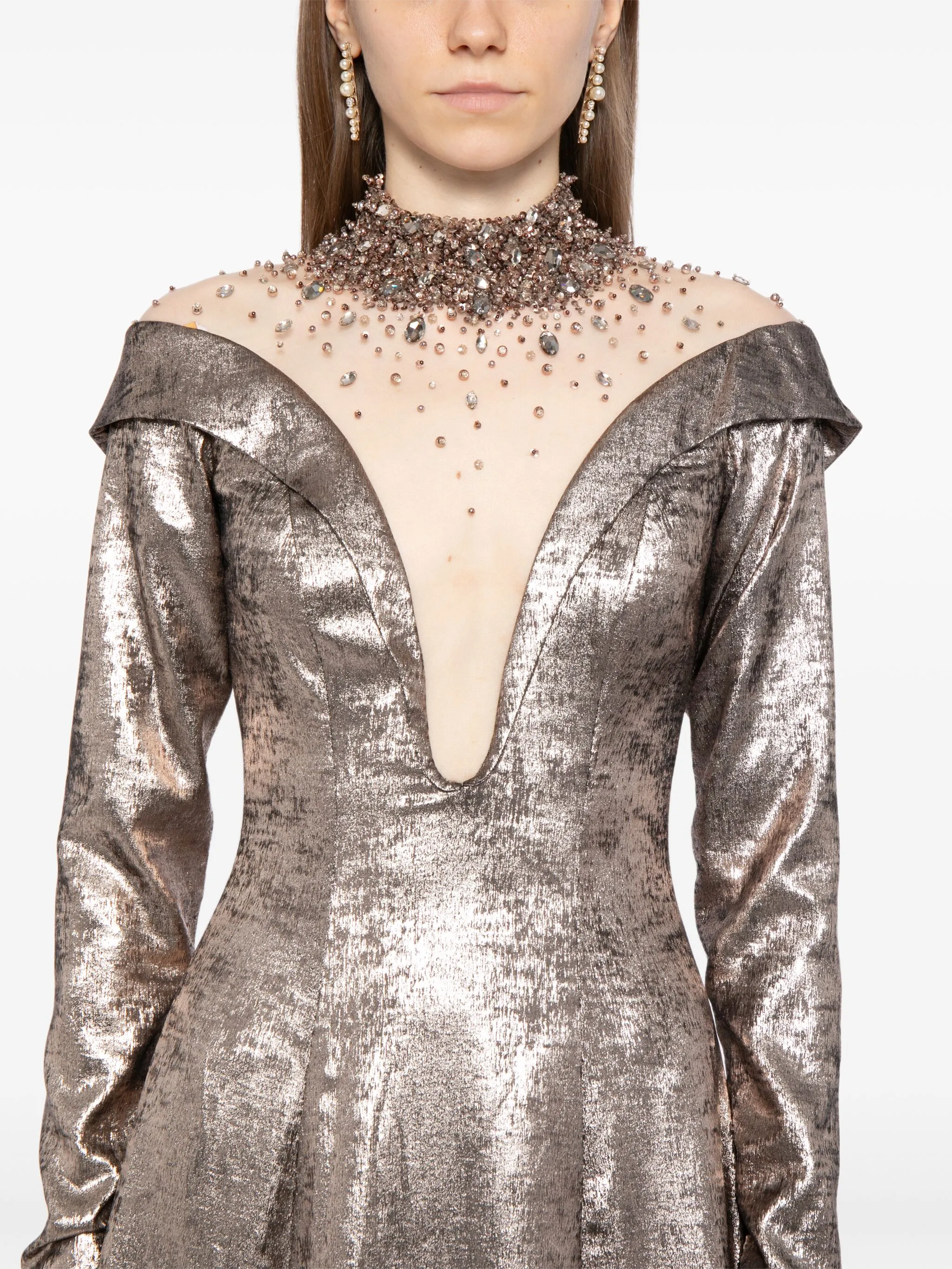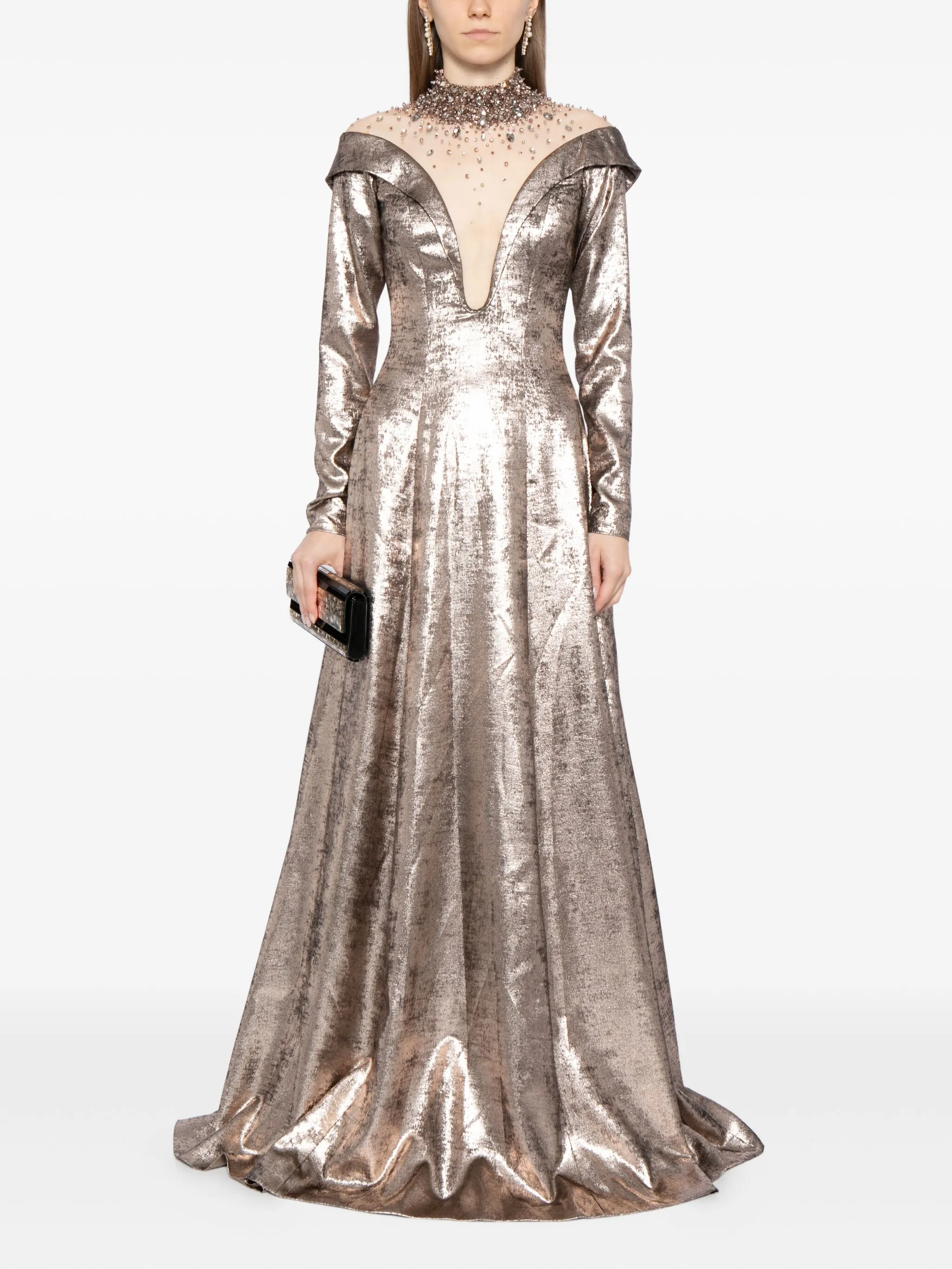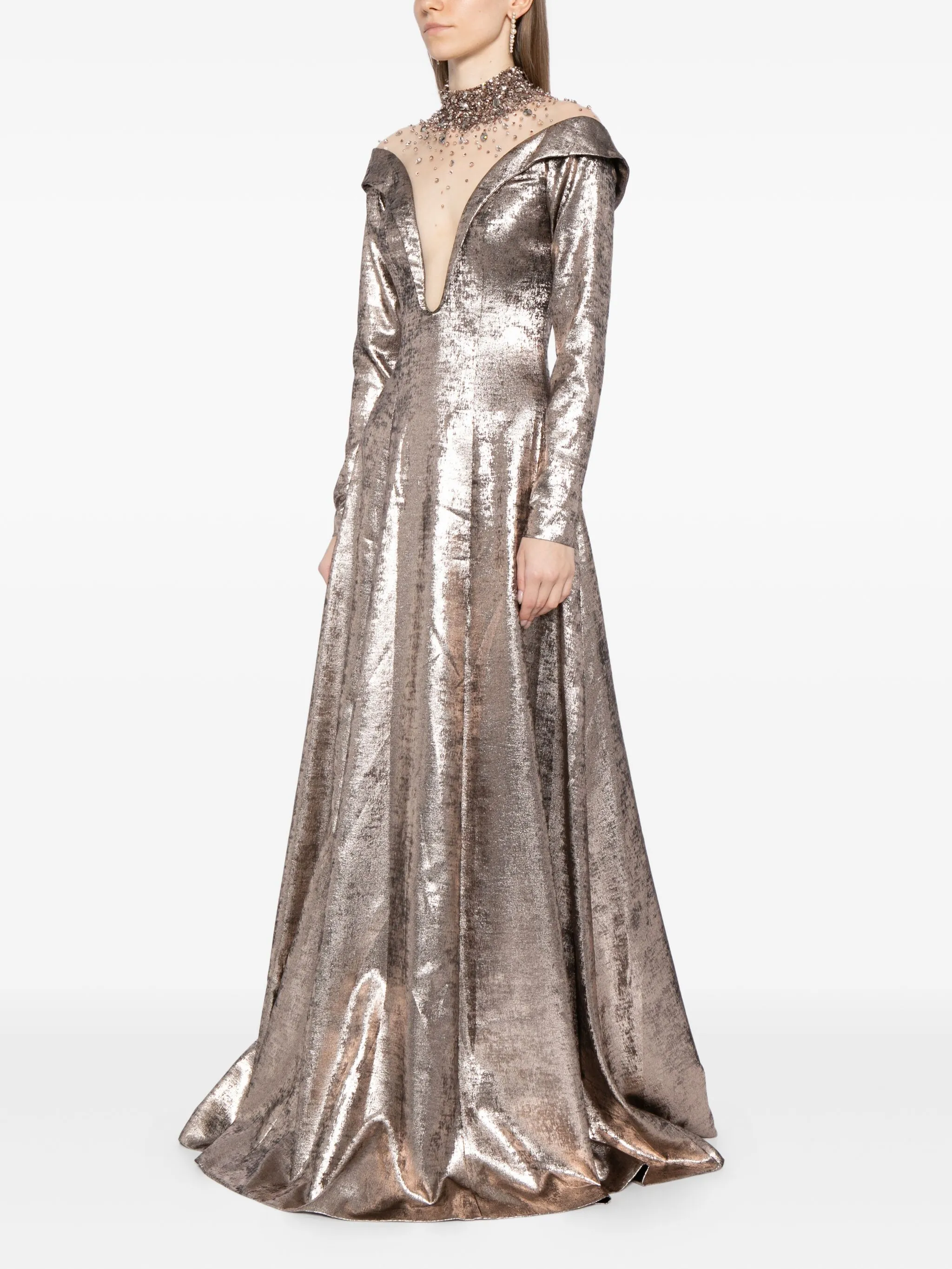 Платье макси с кристаллами Saiid Kobeisy, металлик