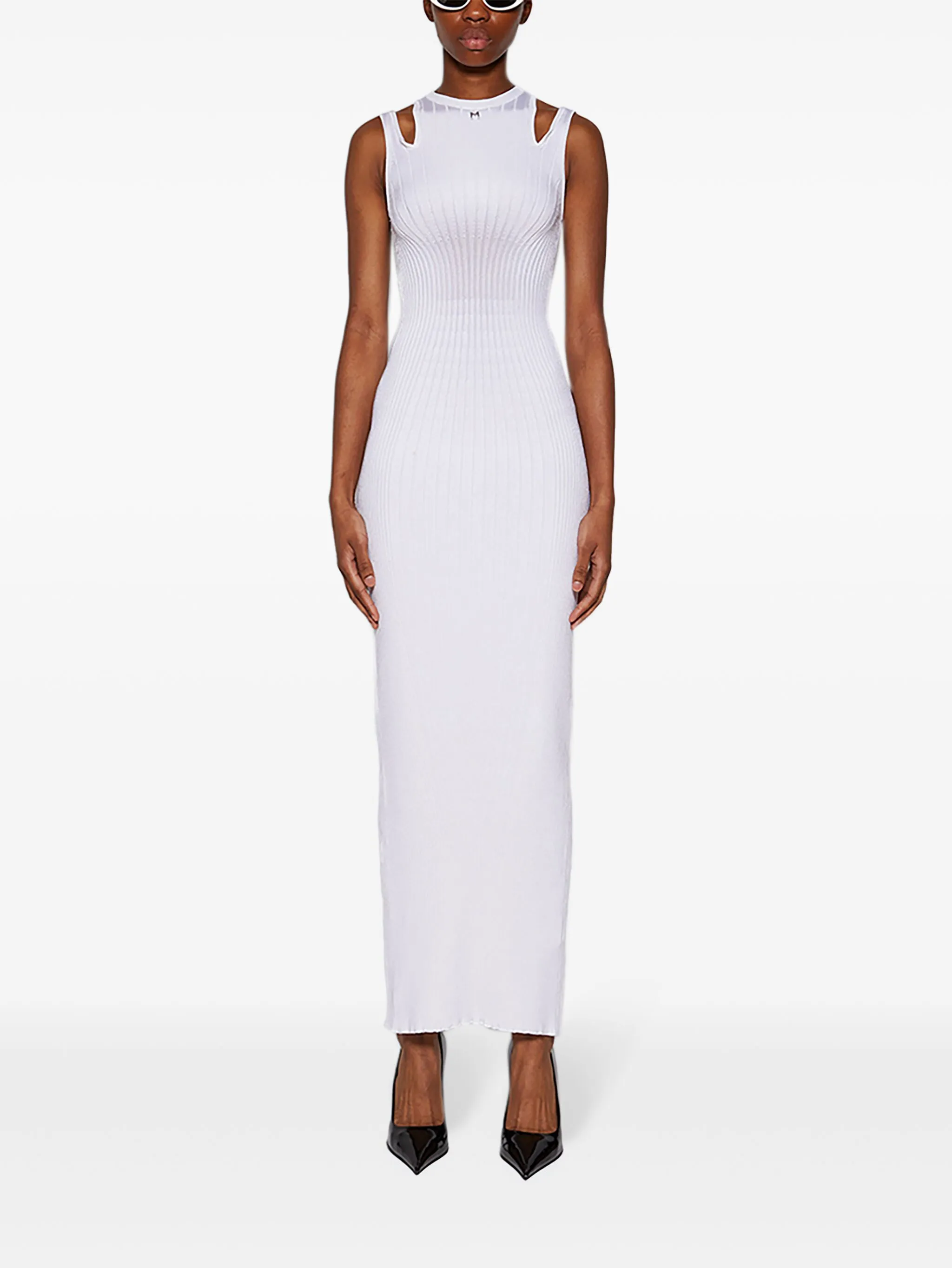 Трикотажное платье макси с пряжкой Mugler, белый
