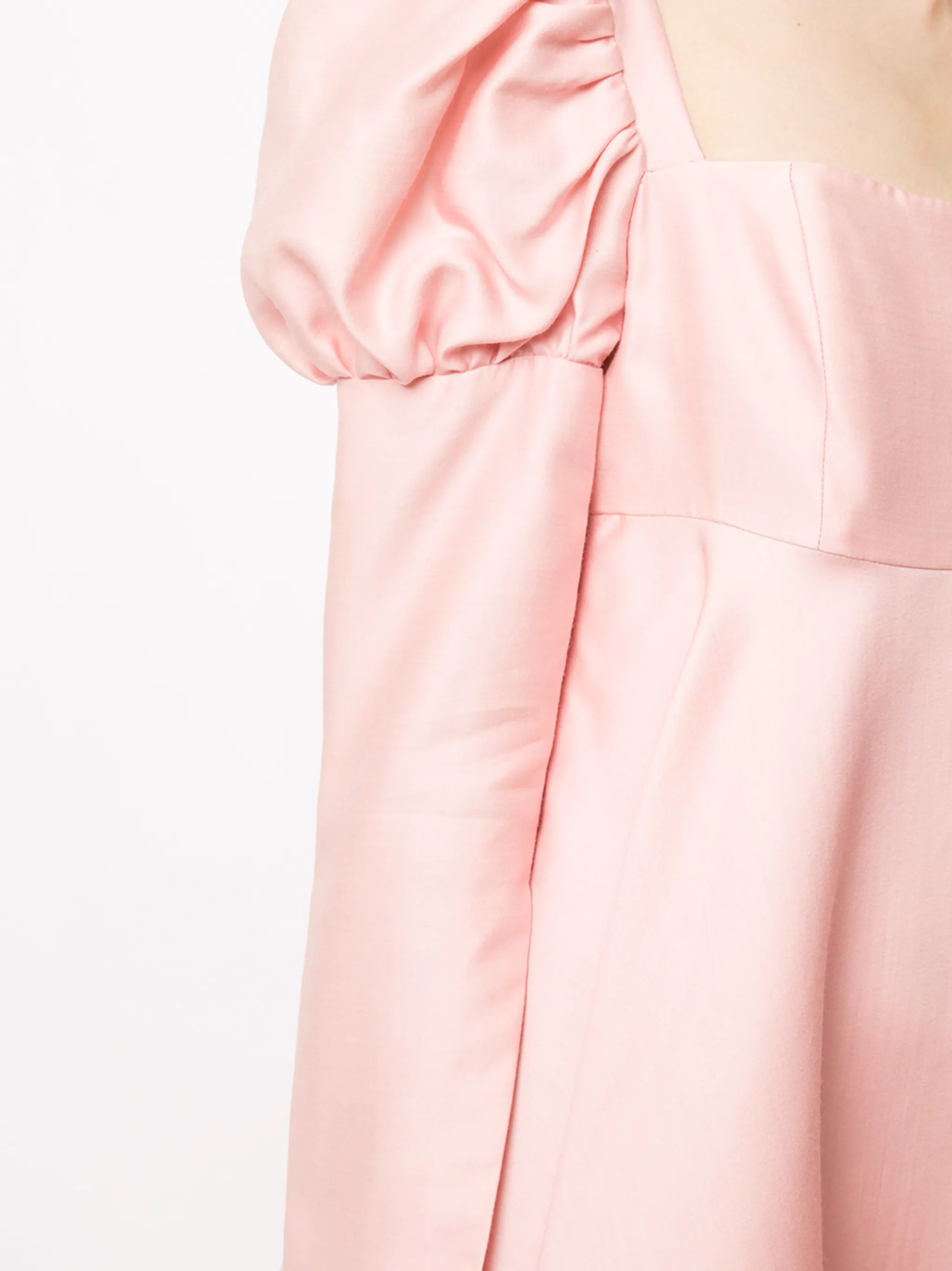 Длинные рукава, квадратный вырез, сатиновая фактура и потайная застежка на молнии сзади. Цвет: розовый.