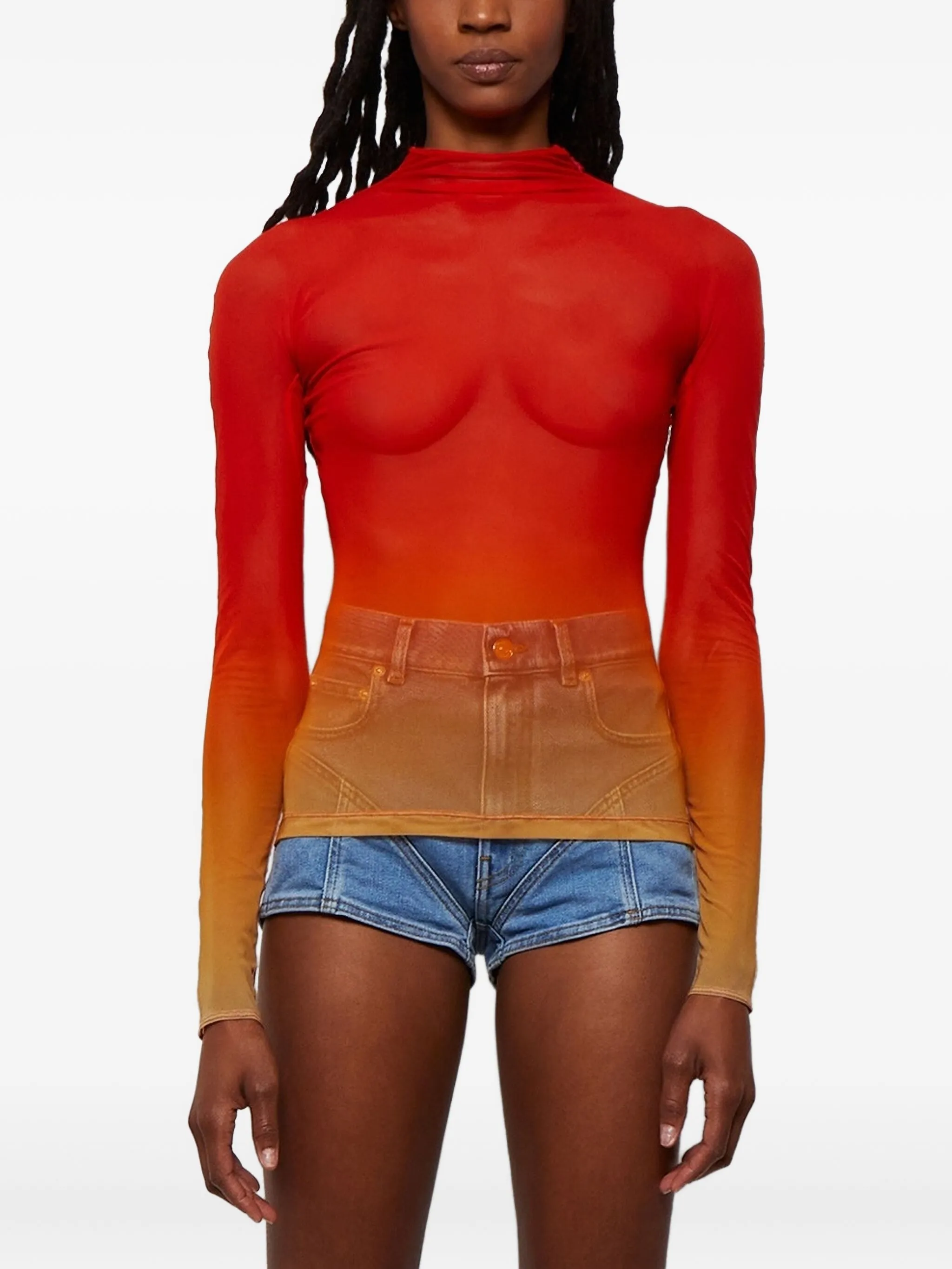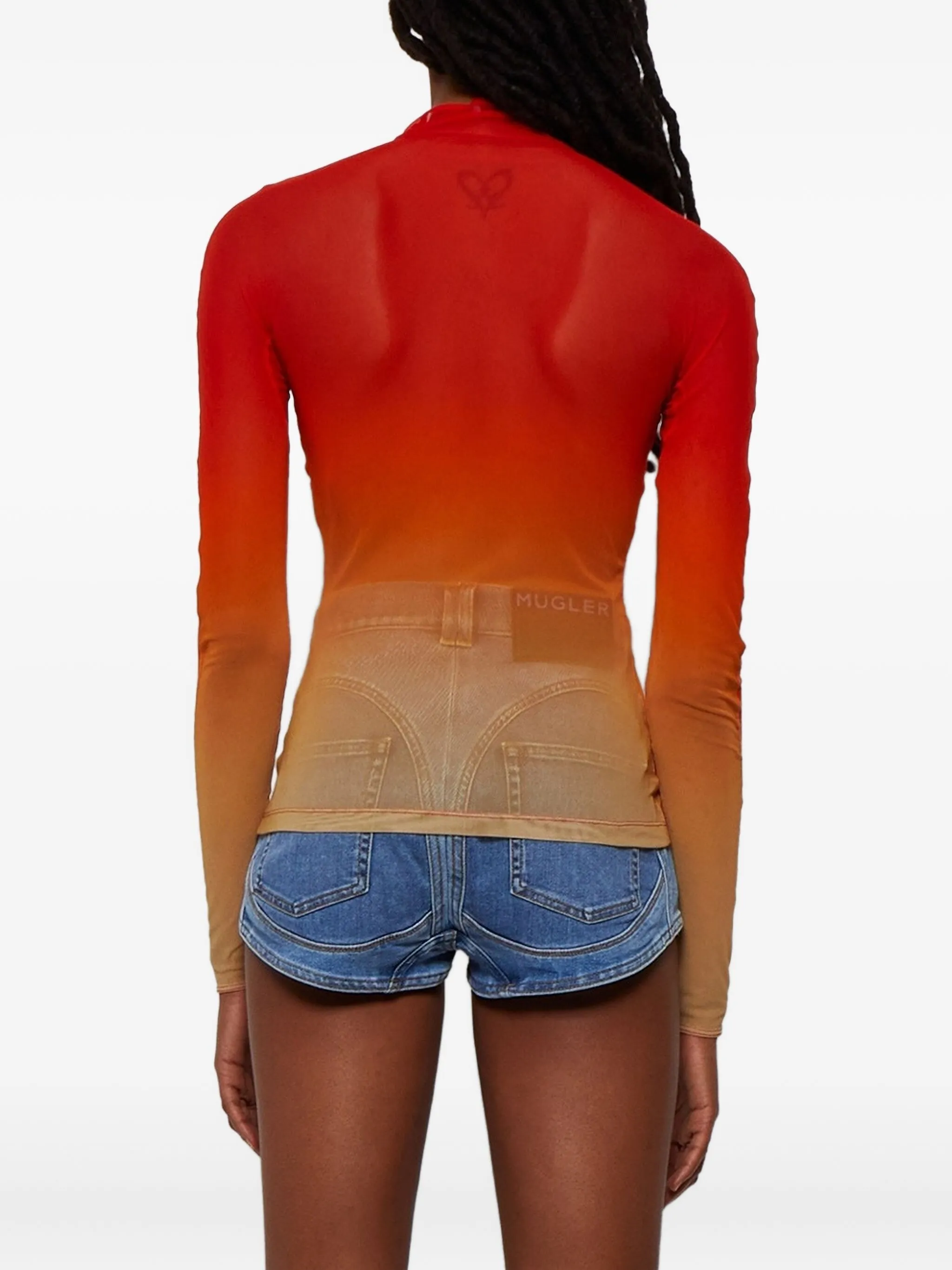 Сетчатый топ с эффектом омбре Mugler, красный