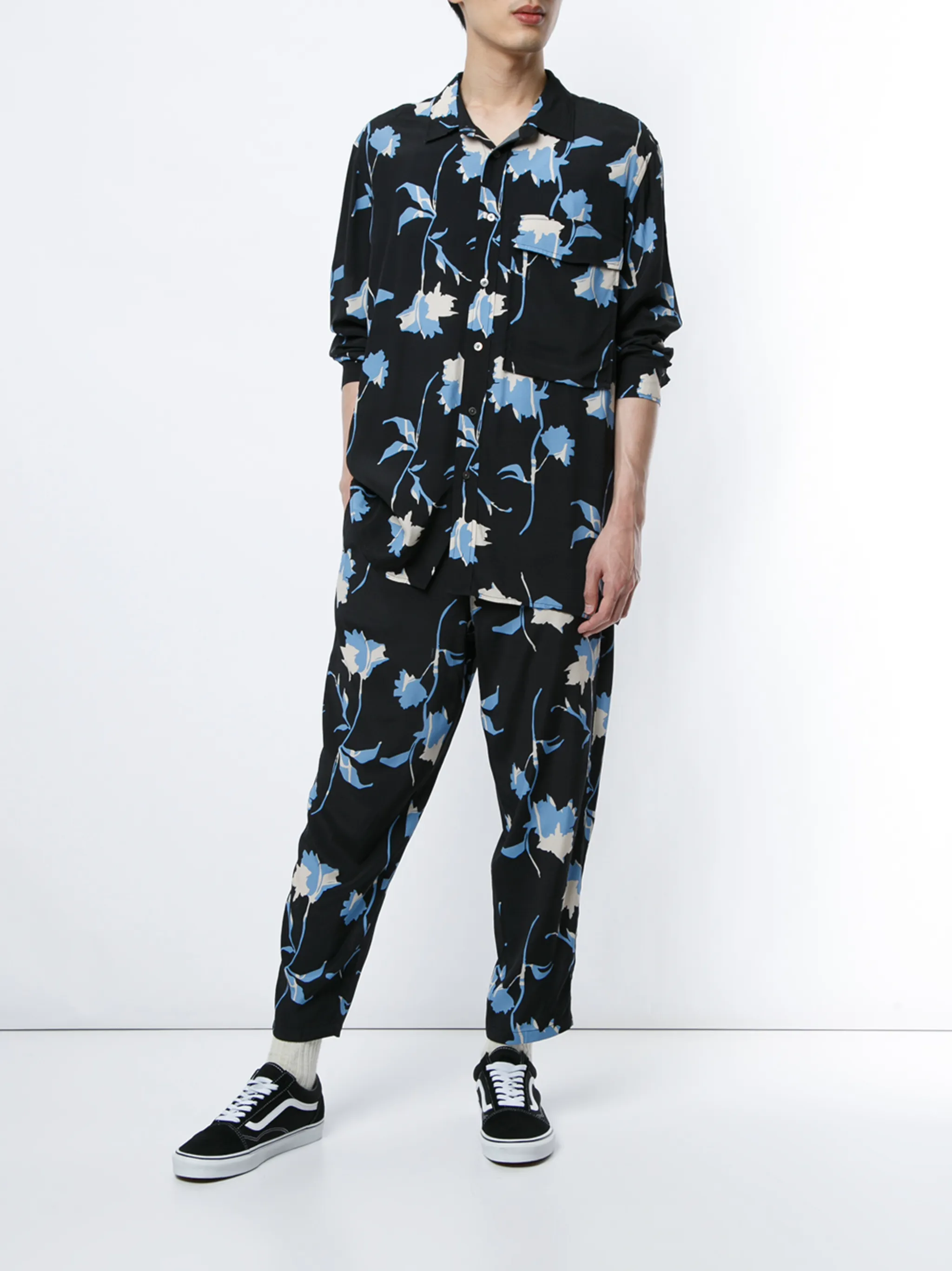 Графичный принт, классический воротник, застежка на пуговицах спереди, два нагрудных кармана с клапанами, длинные рукава и прямой подол.