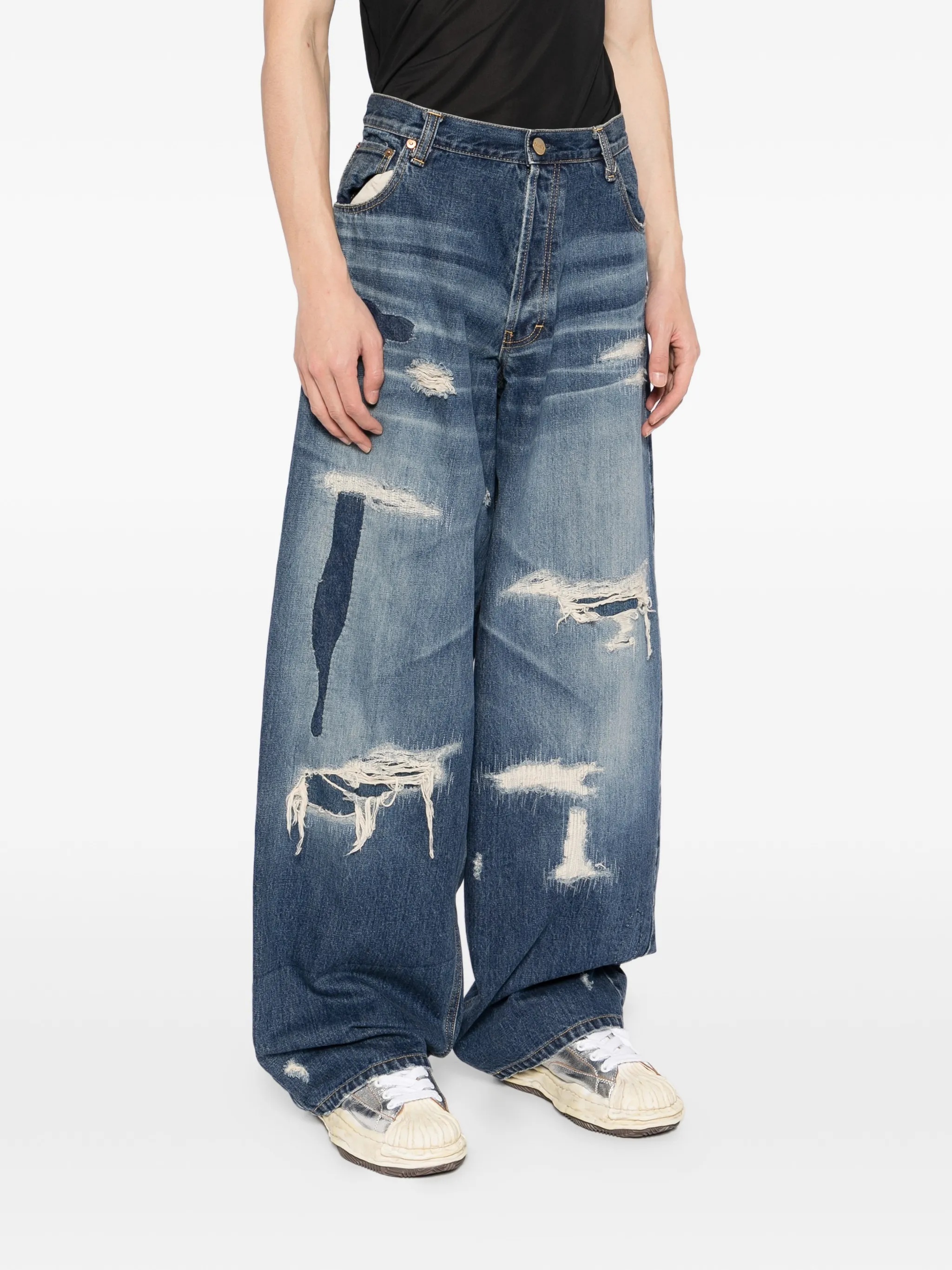 Джинсы с эффектом потертости Kamiya, синий