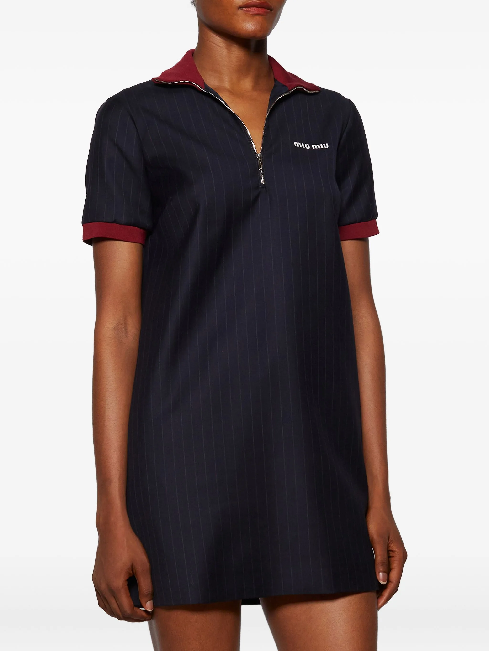 Платье в тонкую полоску на молнии Miu Miu, синий