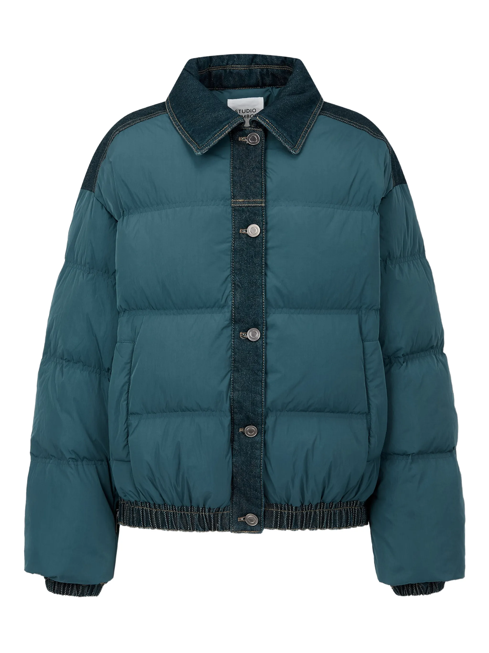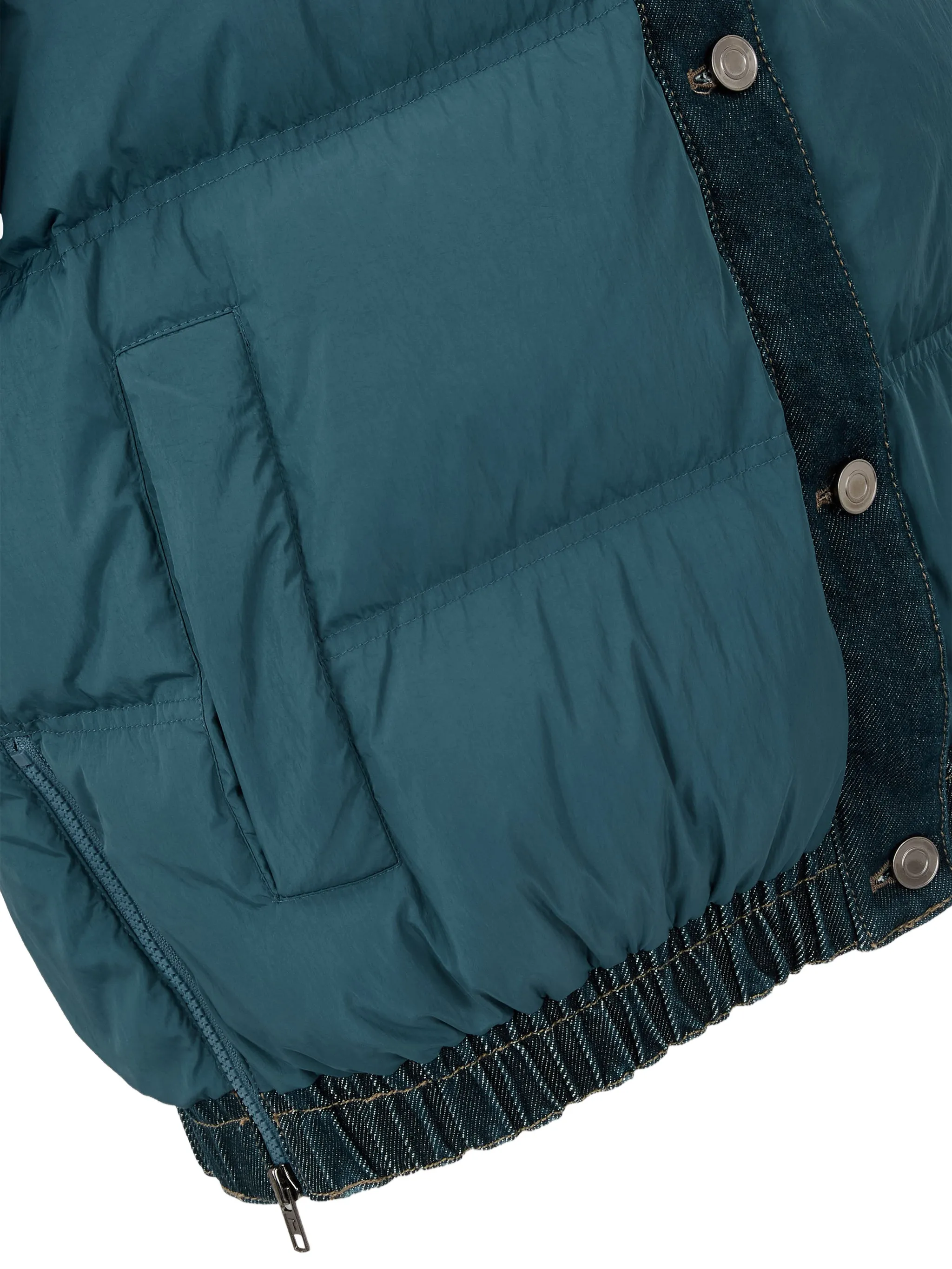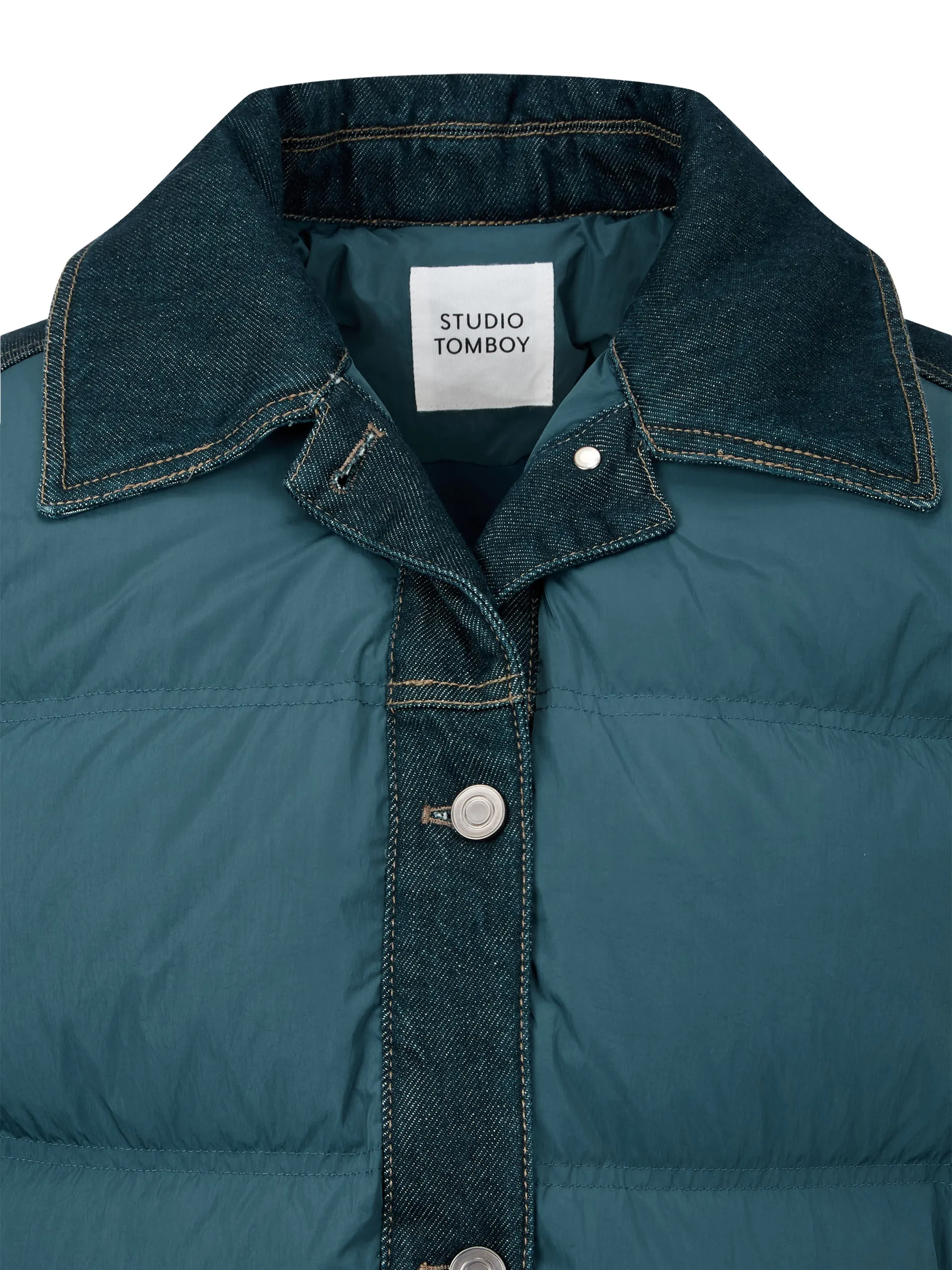 Пуховик с отделкой из денима Tomboy, синий