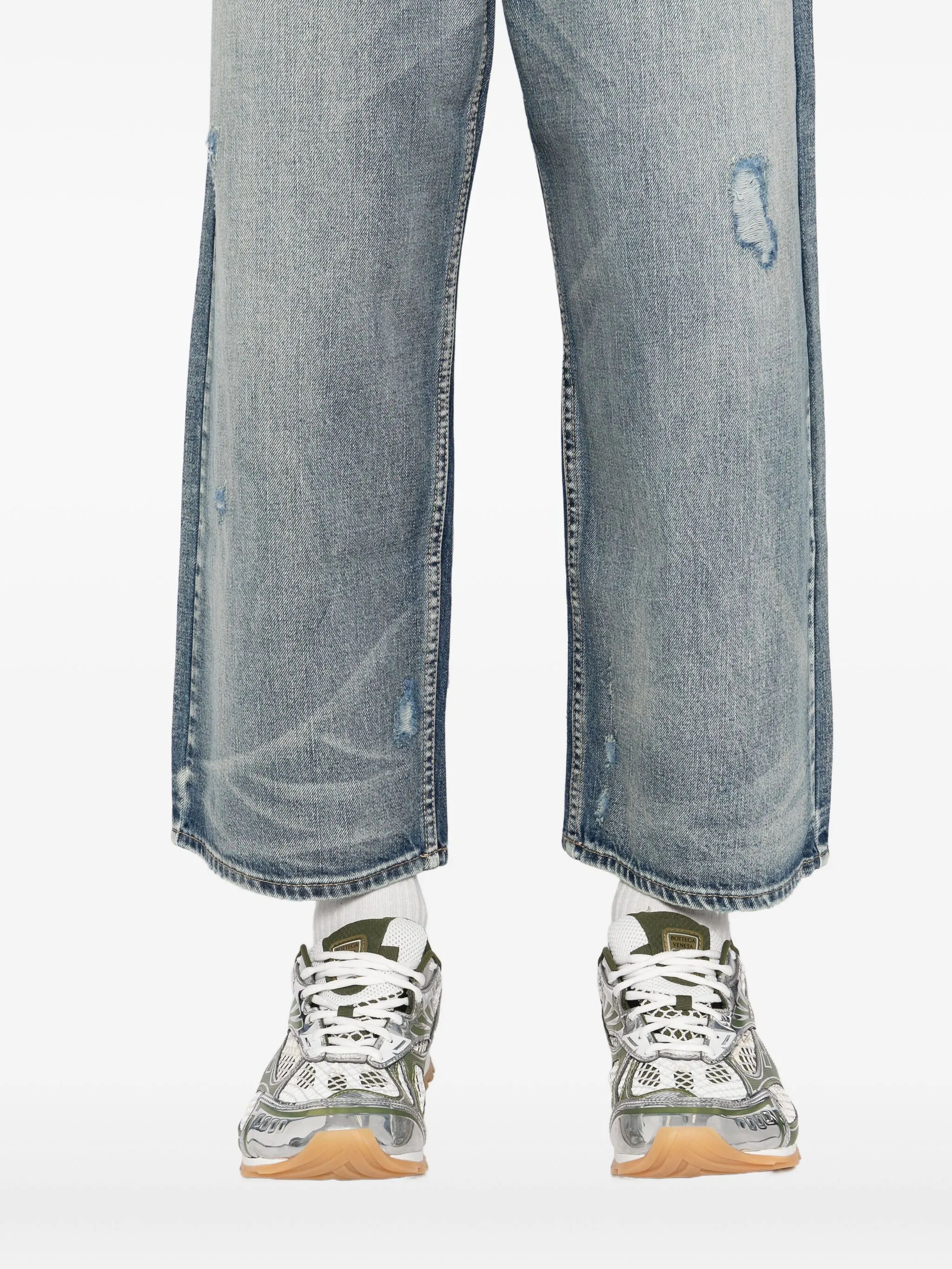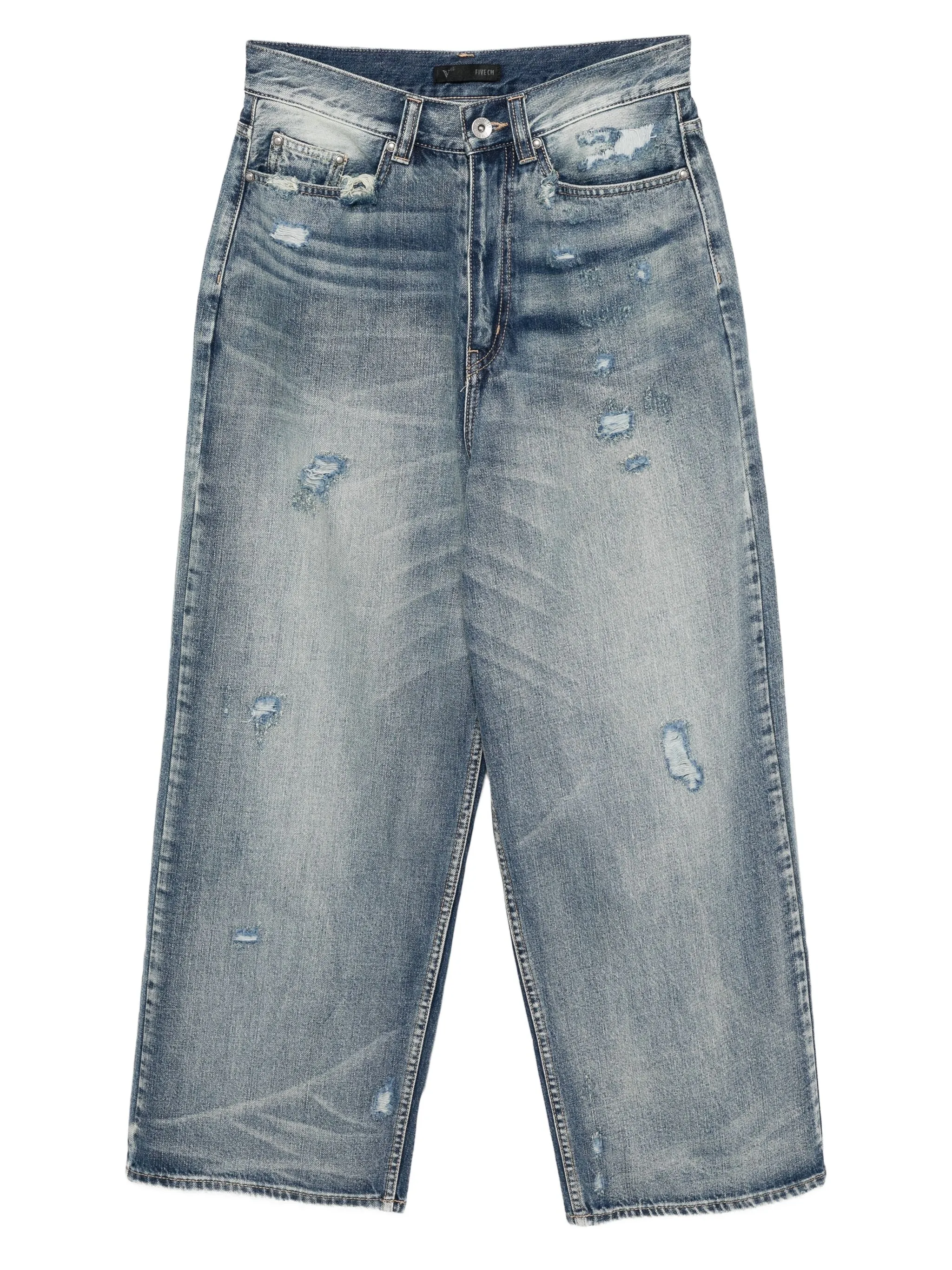 Широкие джинсы с эффектом потертости Five Cm, синий