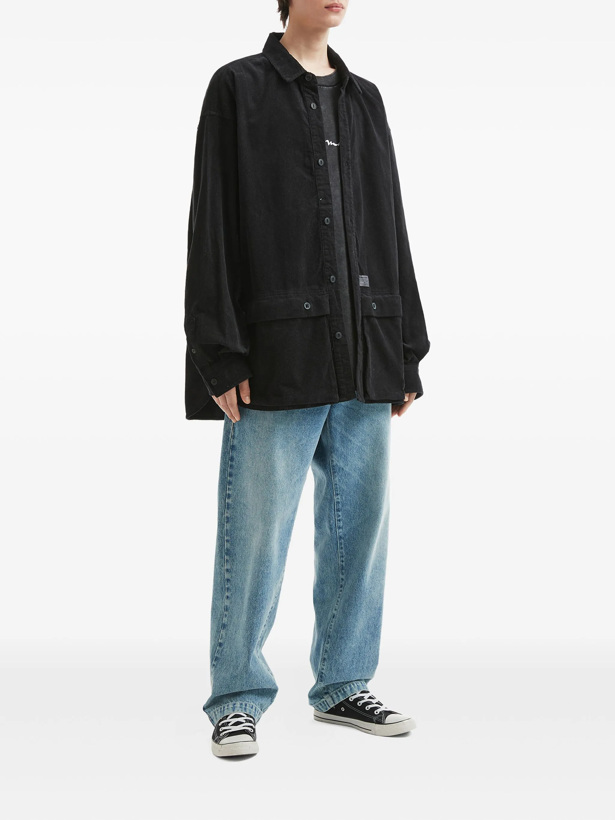 Вельветовая рубашка с карманом Aftermaths, черный