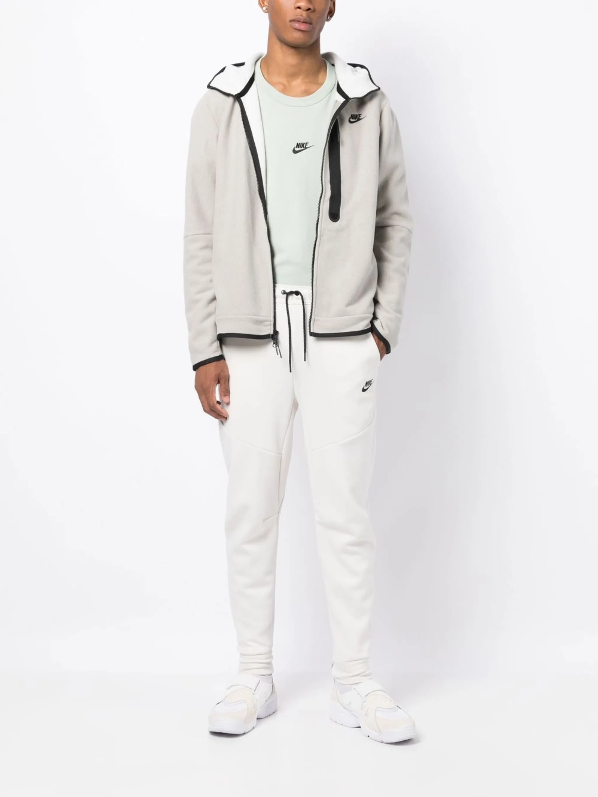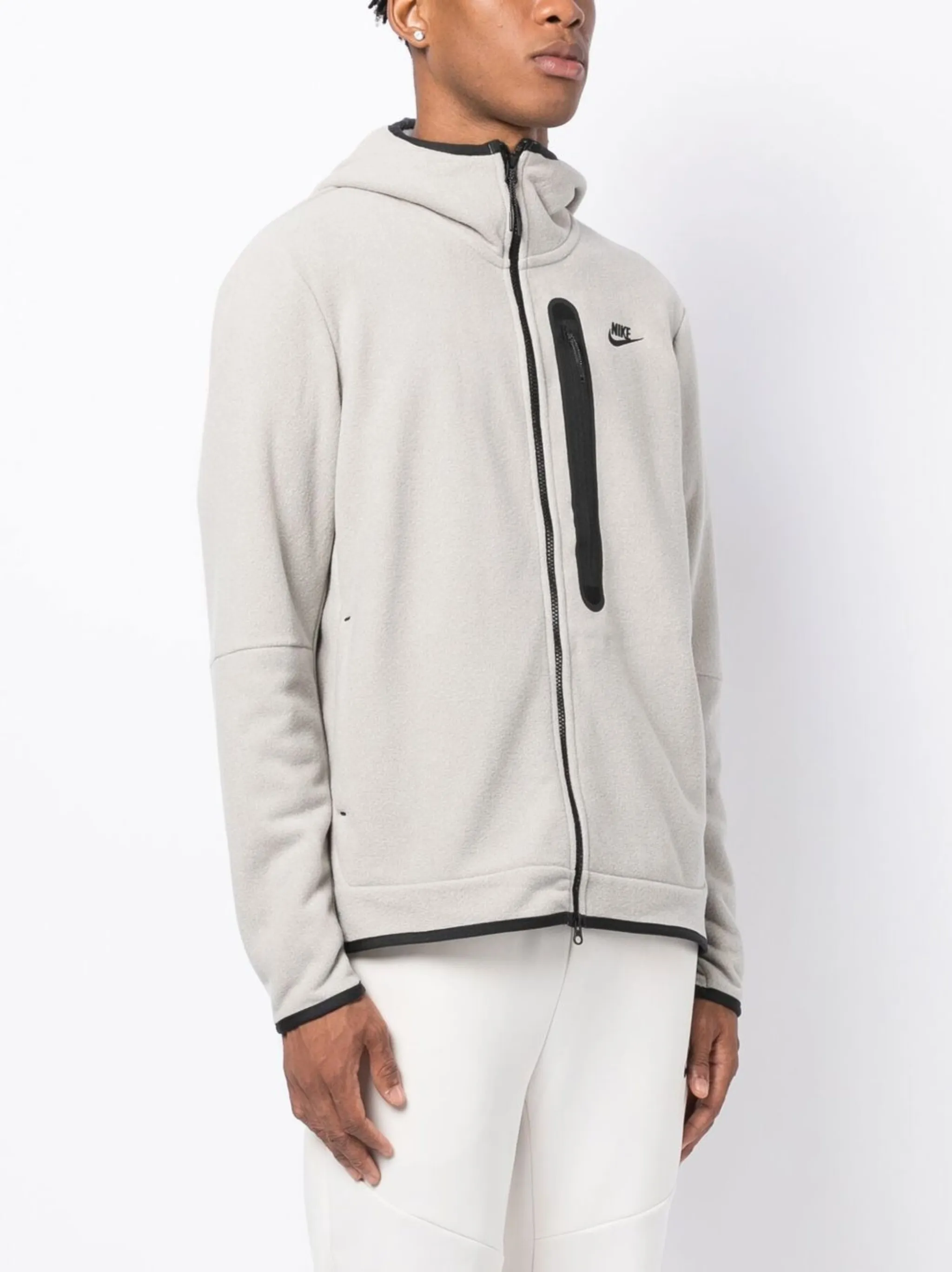 Бежевый, черный, смесовый хлопок, контрастная отделка, логотип Nike Swoosh, классический капюшон, застежка на молнии спереди, длинные рукава, два прорезных кармана по бокам и прямой подол.