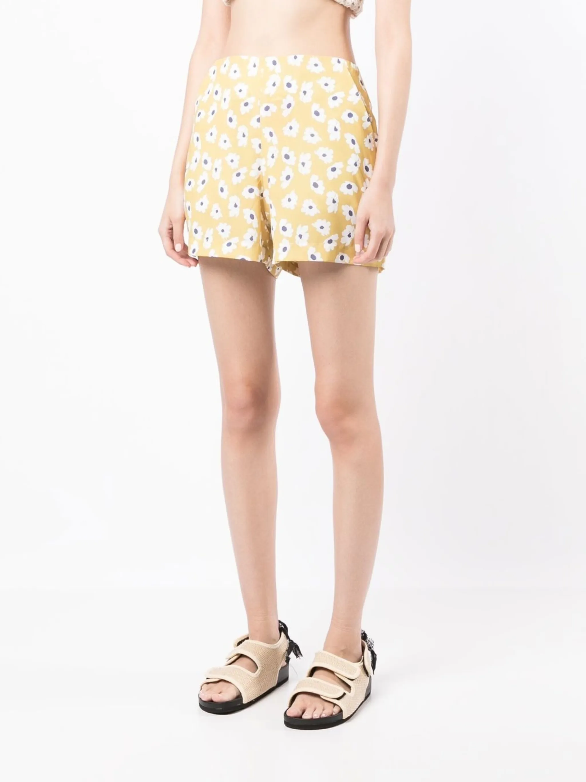 Жасминовый желтый, сплошной цветочный принт, потайная застежка на молнии сзади, два прорезных кармана по бокам и длина выше колена.