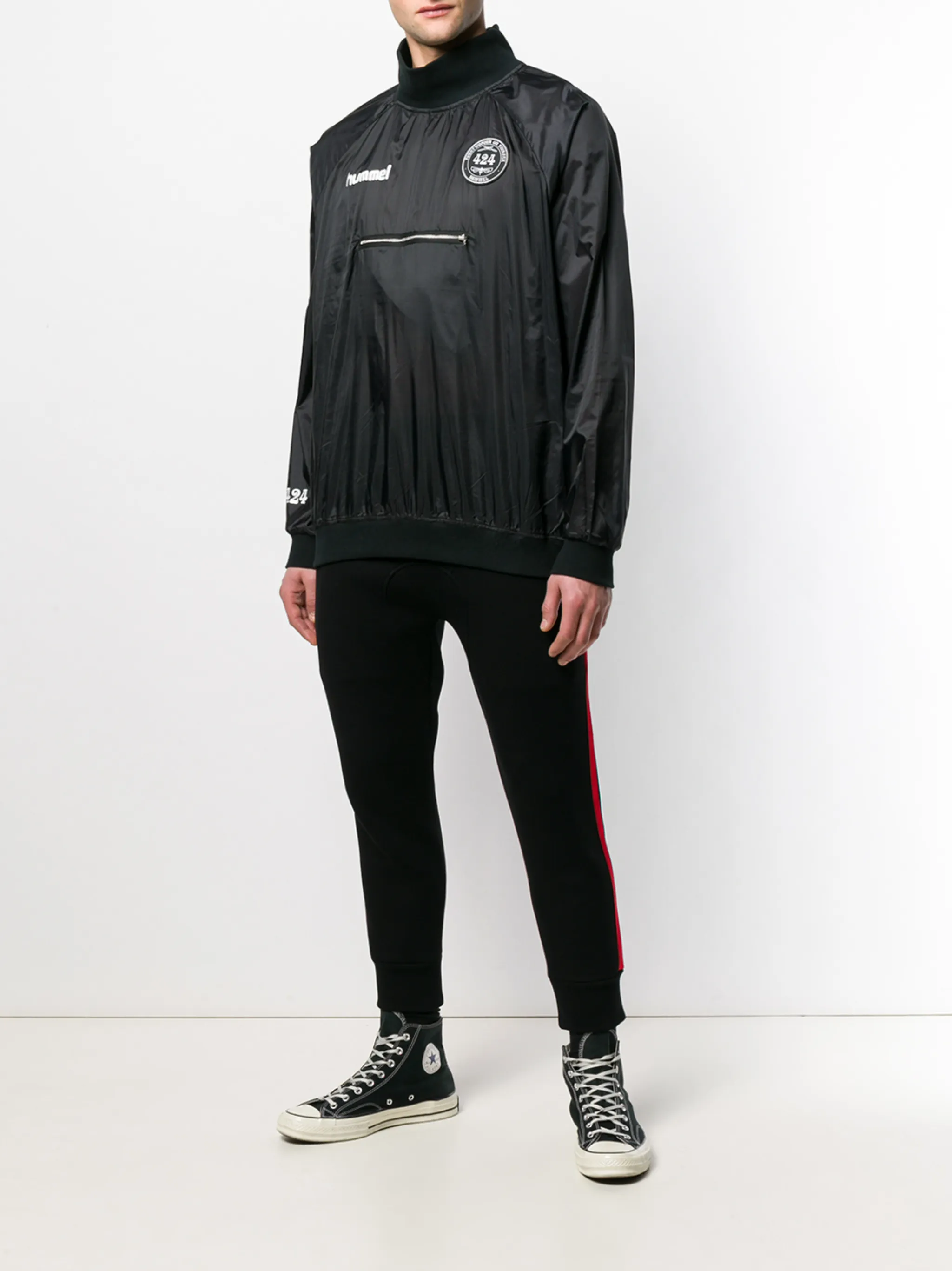 Куртка 'Spray' от 424. Воротник-воронка, передний карман на молнии и длинные рукава. Цвет: черный.