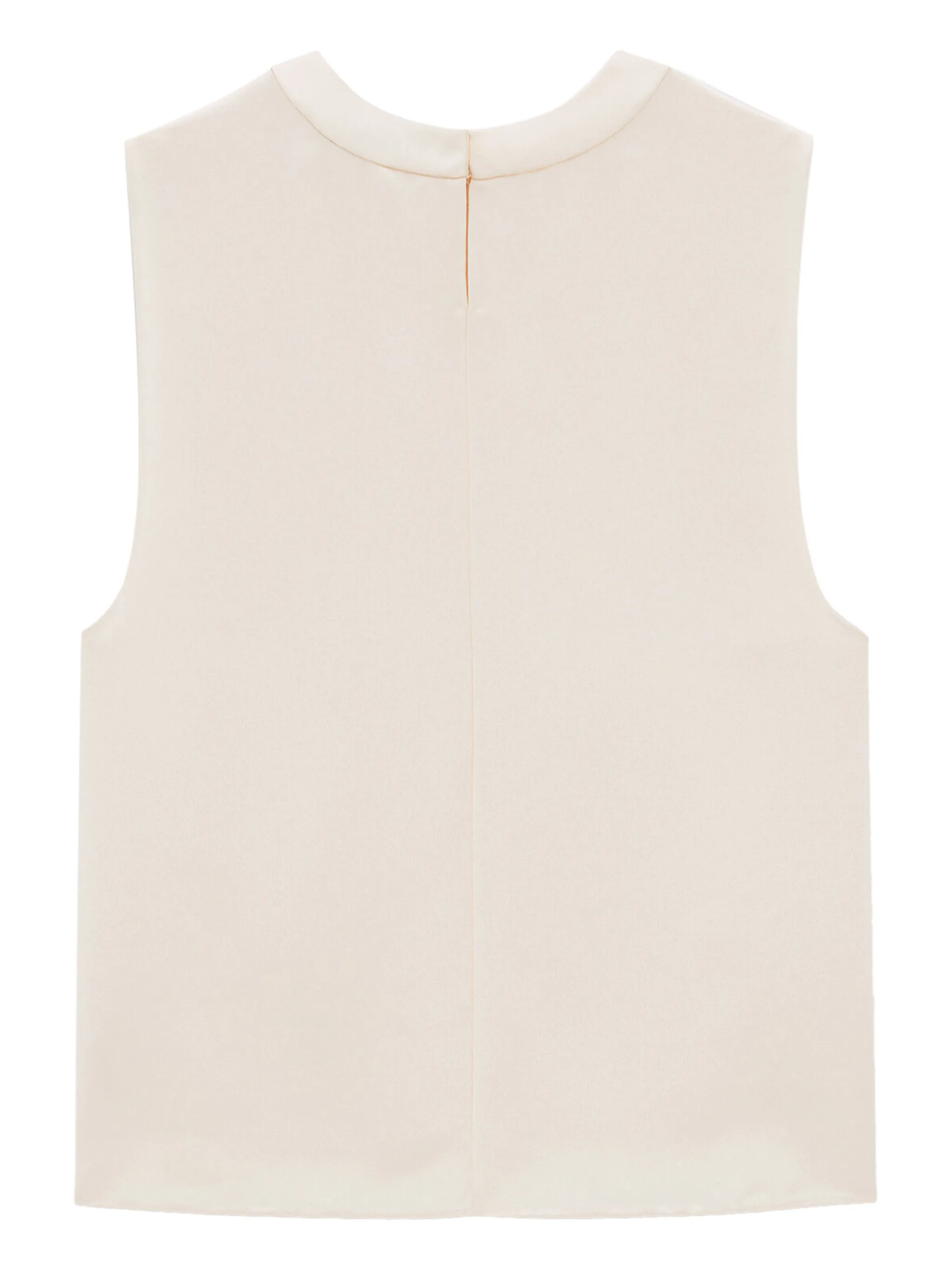 Кремово-белый, шелк, круглый вырез, вырез сзади, без рукавов и прямой подол.