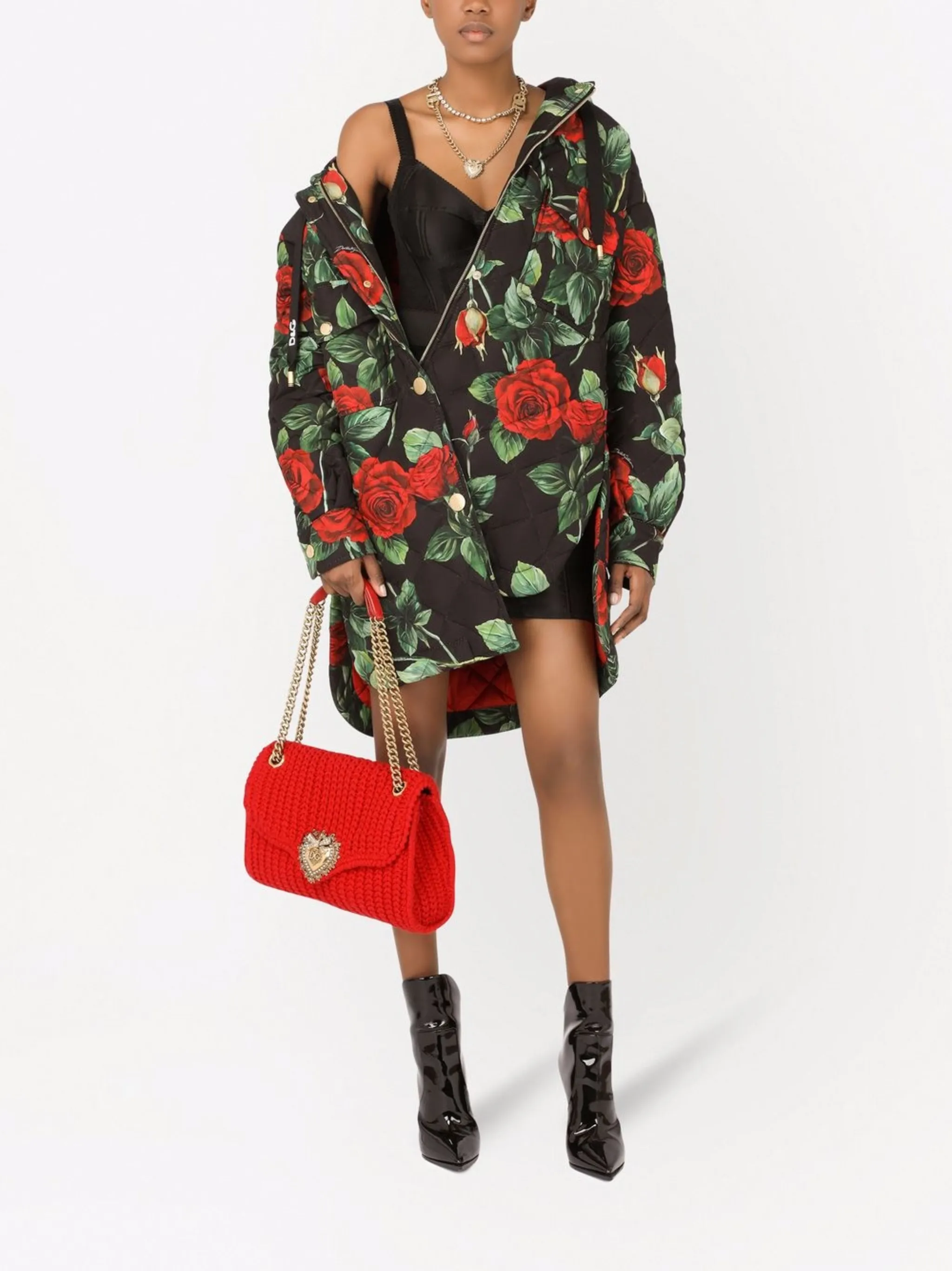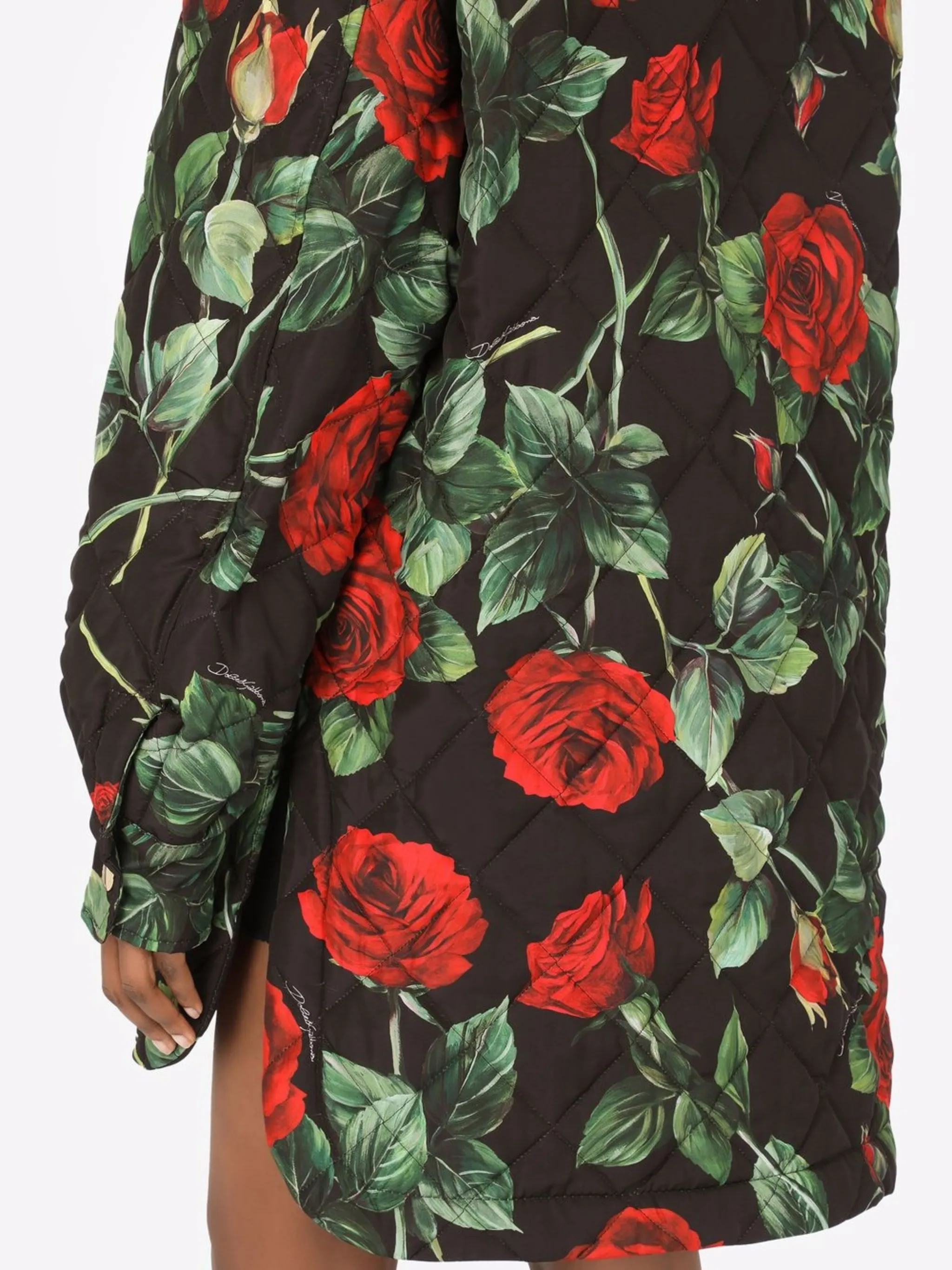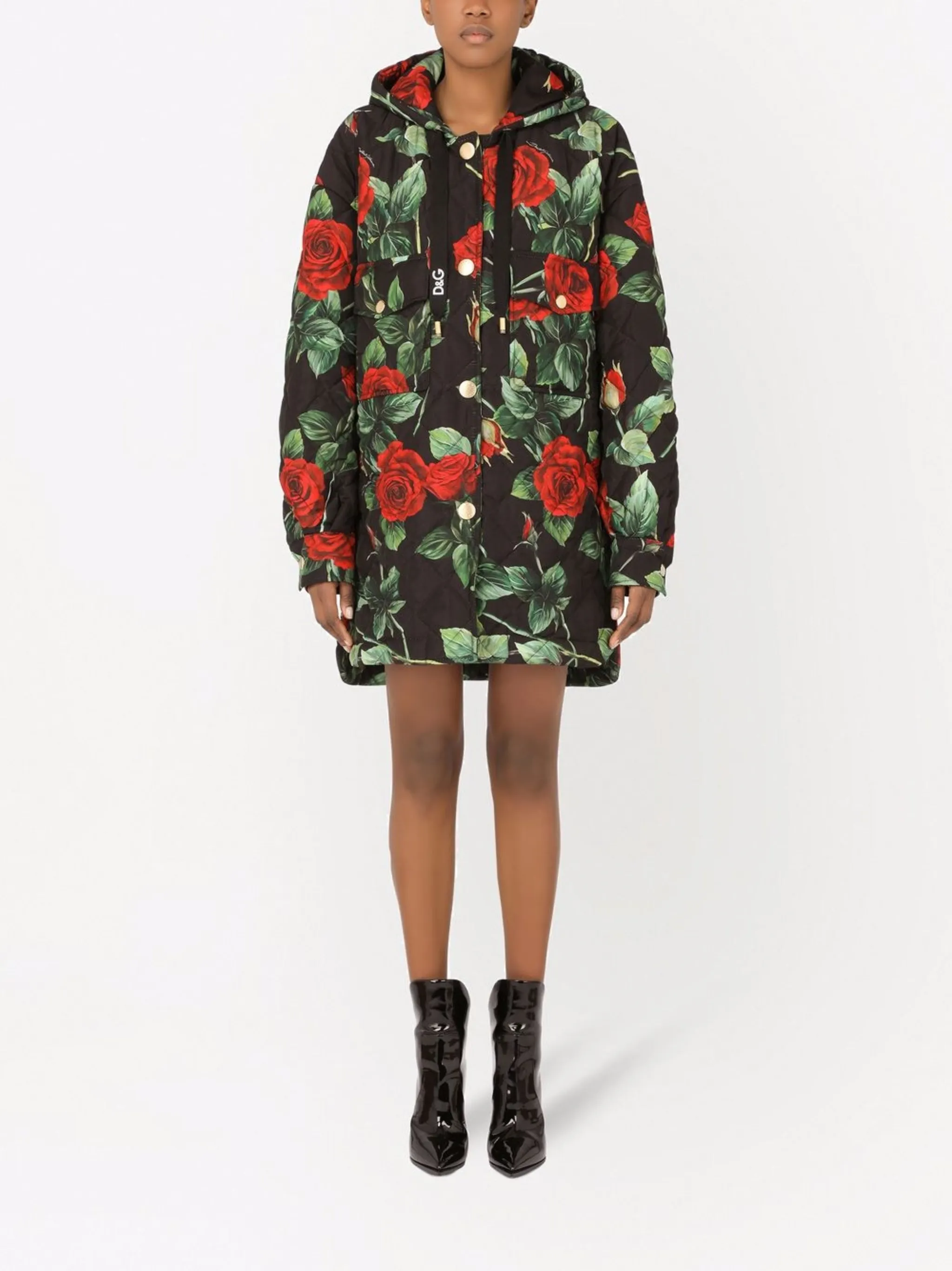 Принт с изображением роз, классический капюшон, застежка на кнопках спереди, длинные рукава и длина миди.
