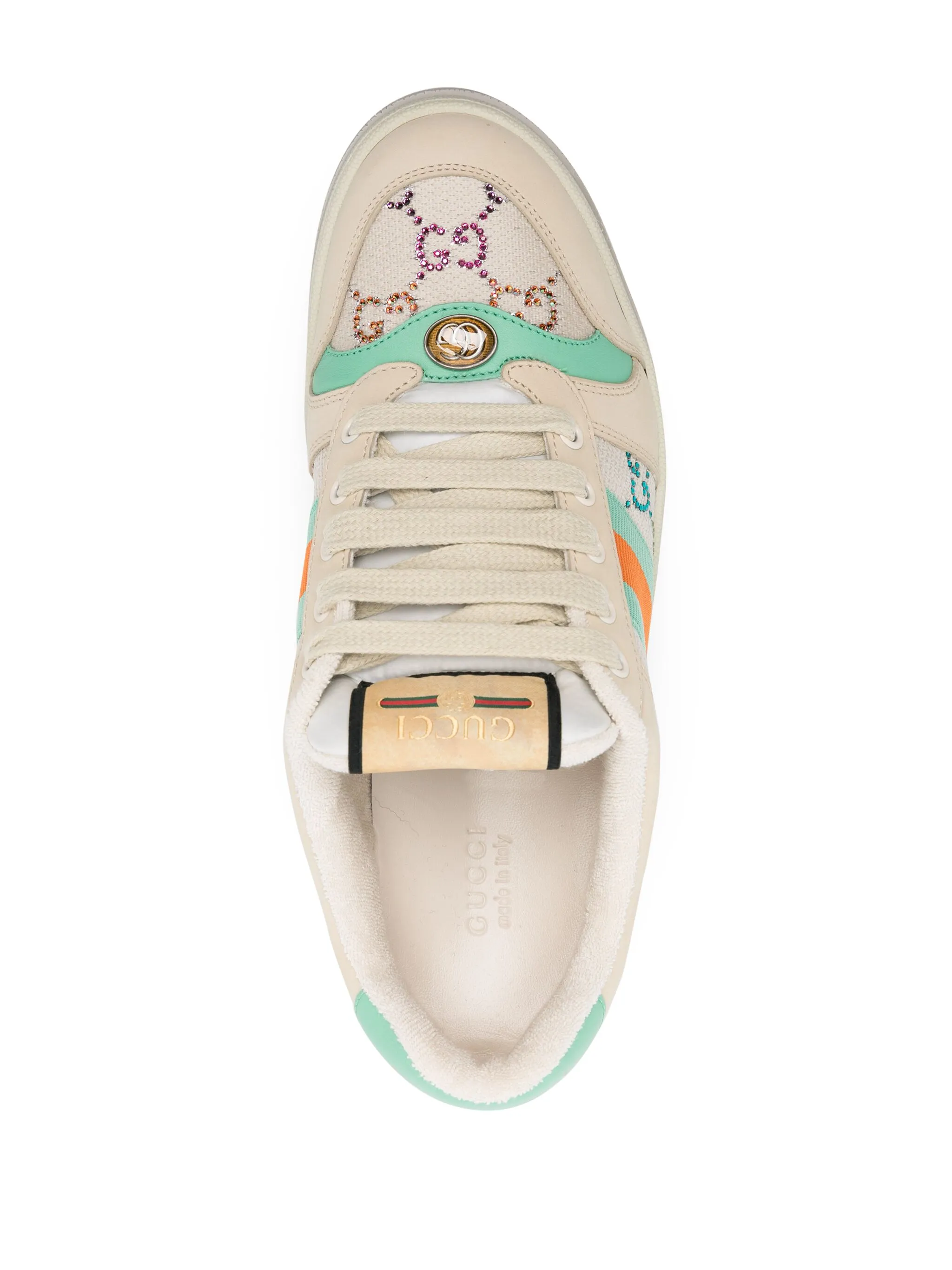 Фактический размер женских кроссовок Gucci - чуть больше заявленного. Рекомендуем выбрать размер на половину меньше привычного.