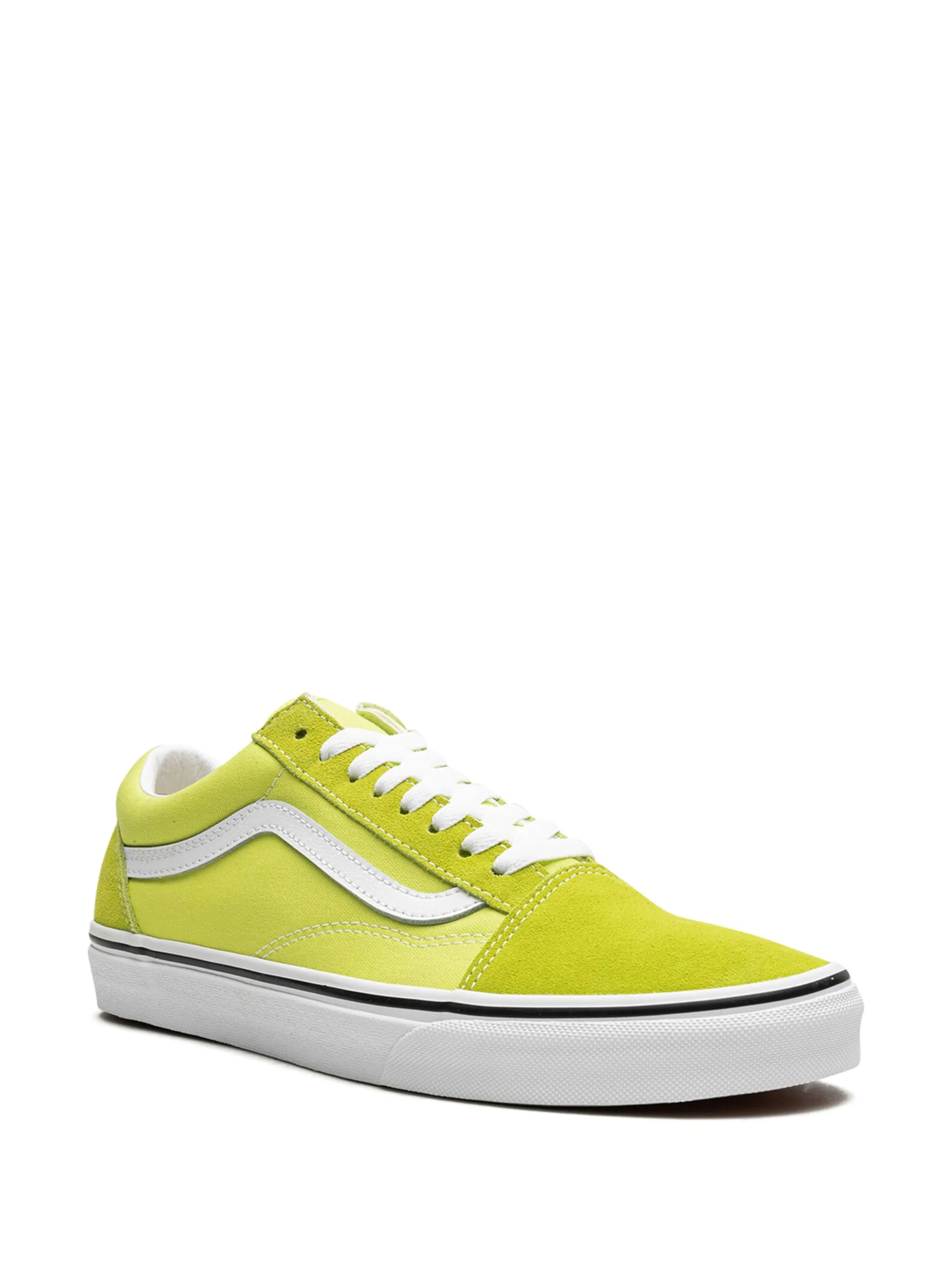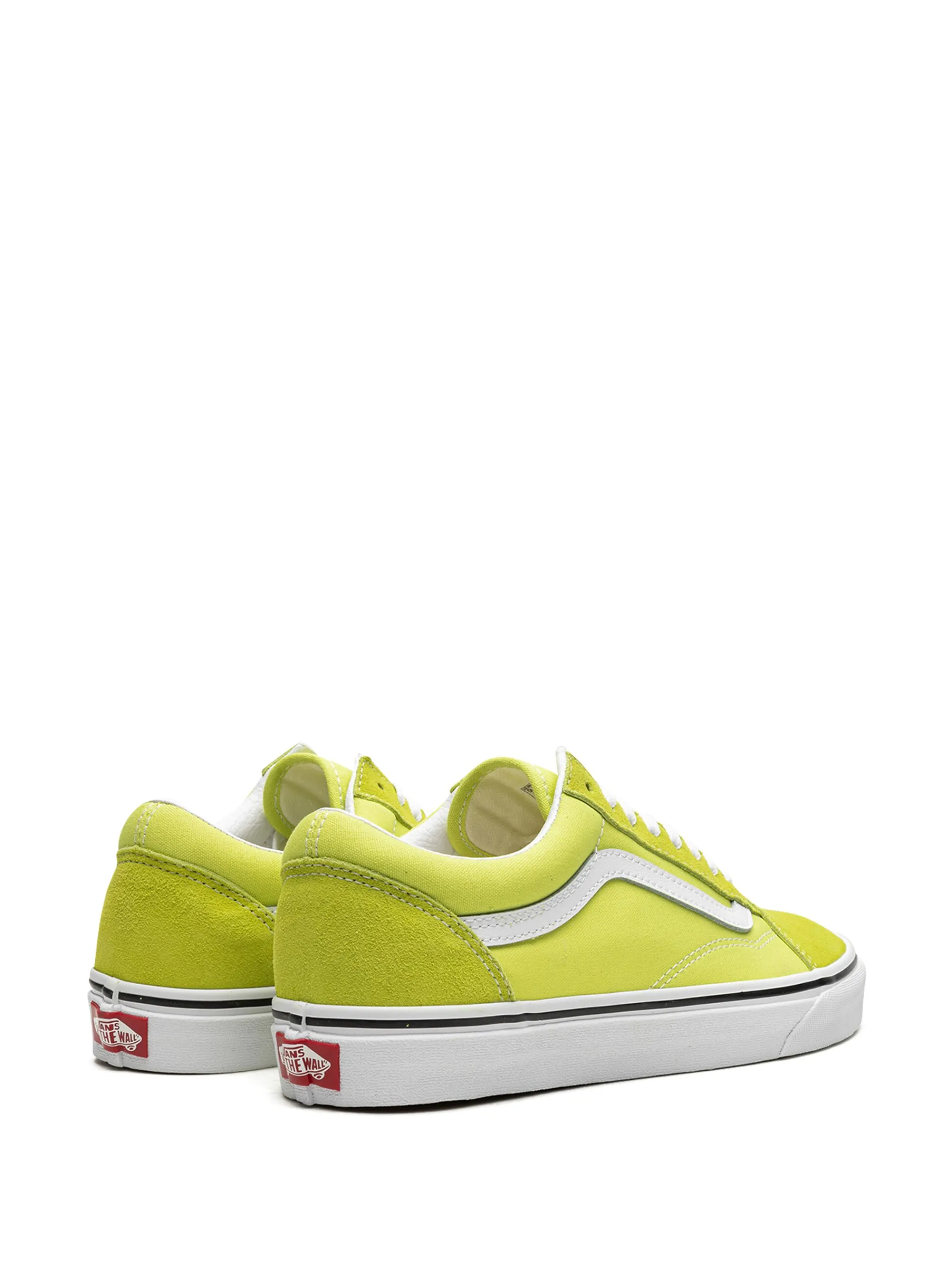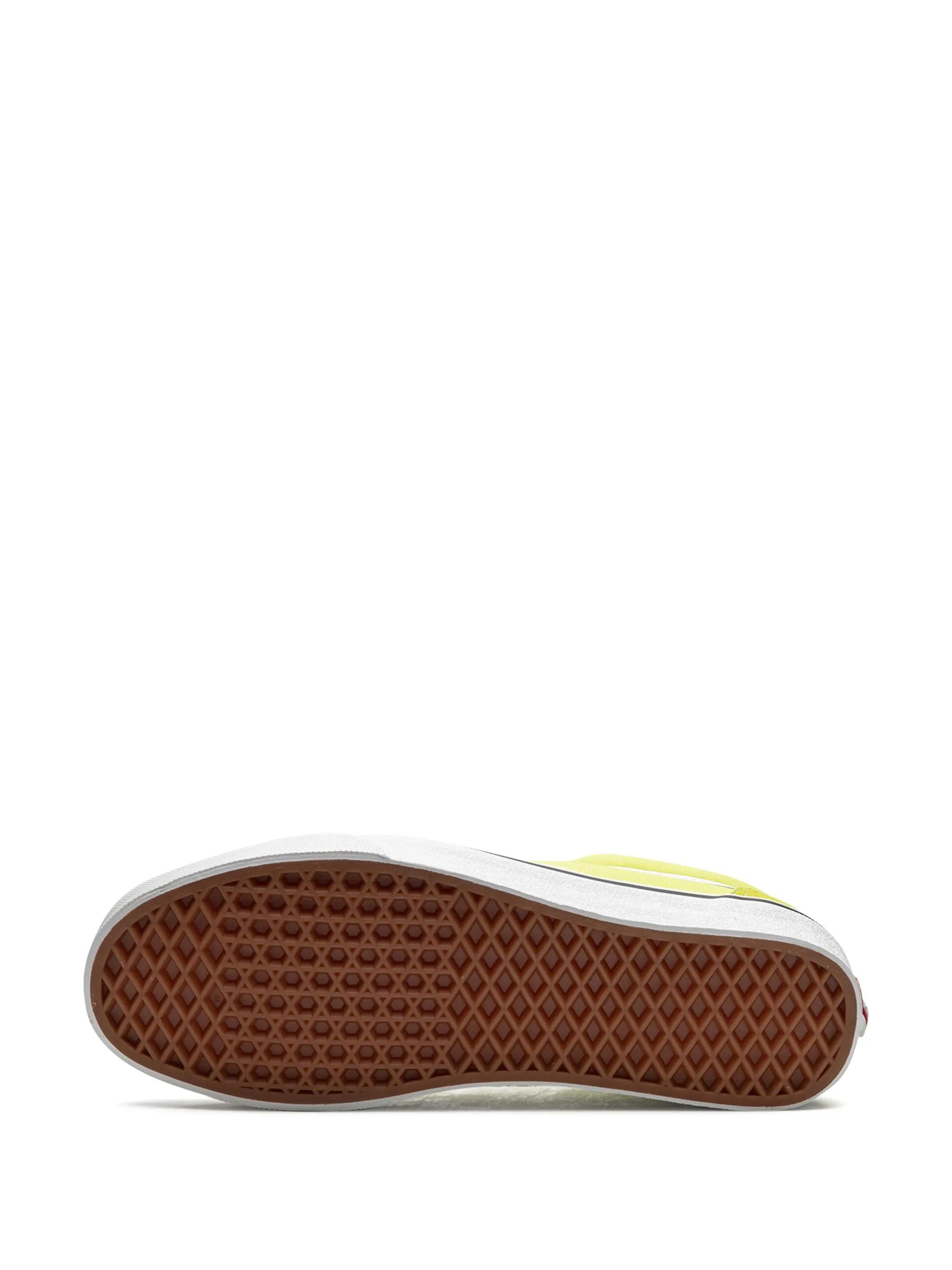 Желтый, парусина, замша, полоска сбоку, закругленный носок, шнуровка спереди, стелька с логотипом и резиновая подошва.