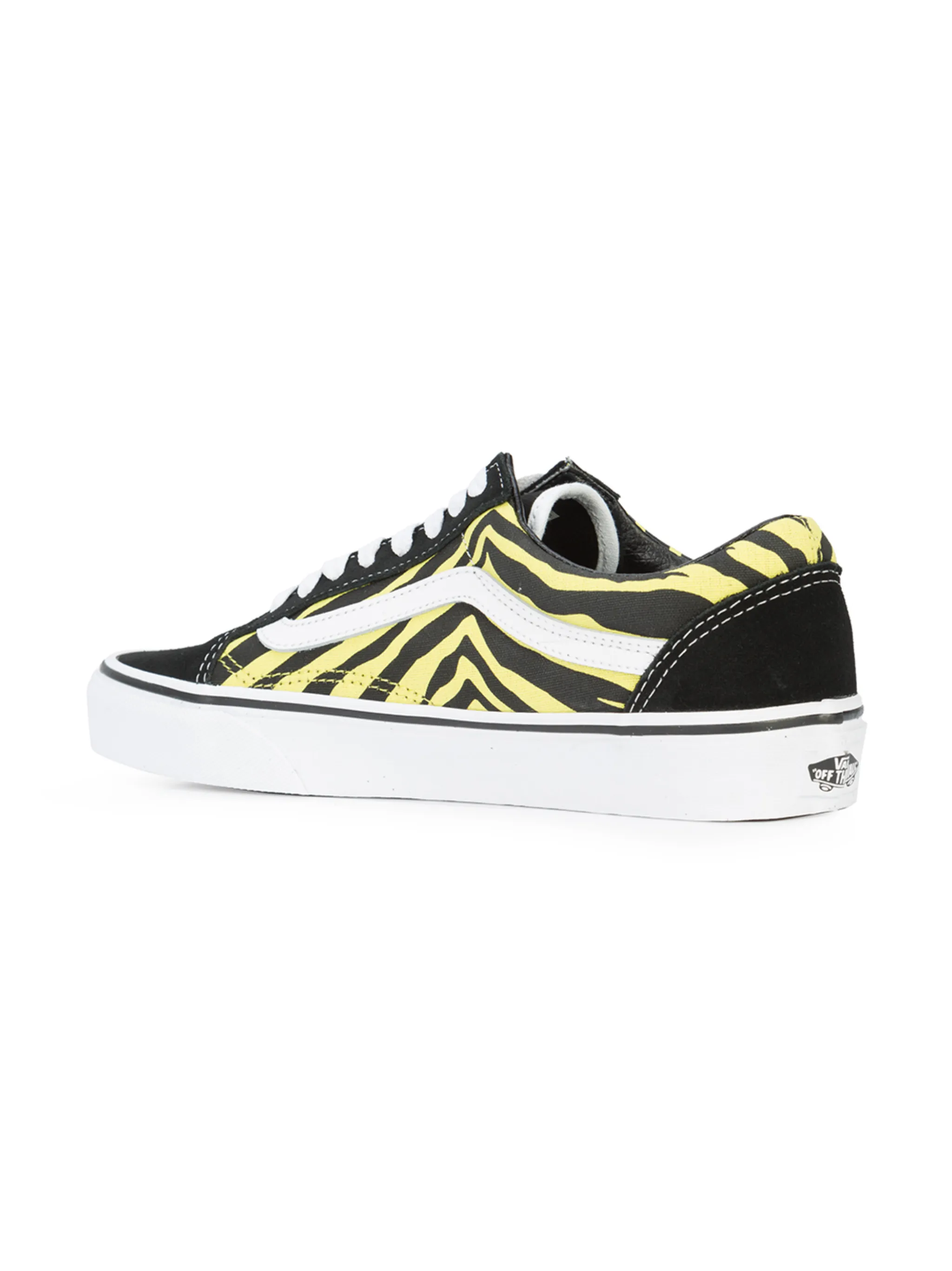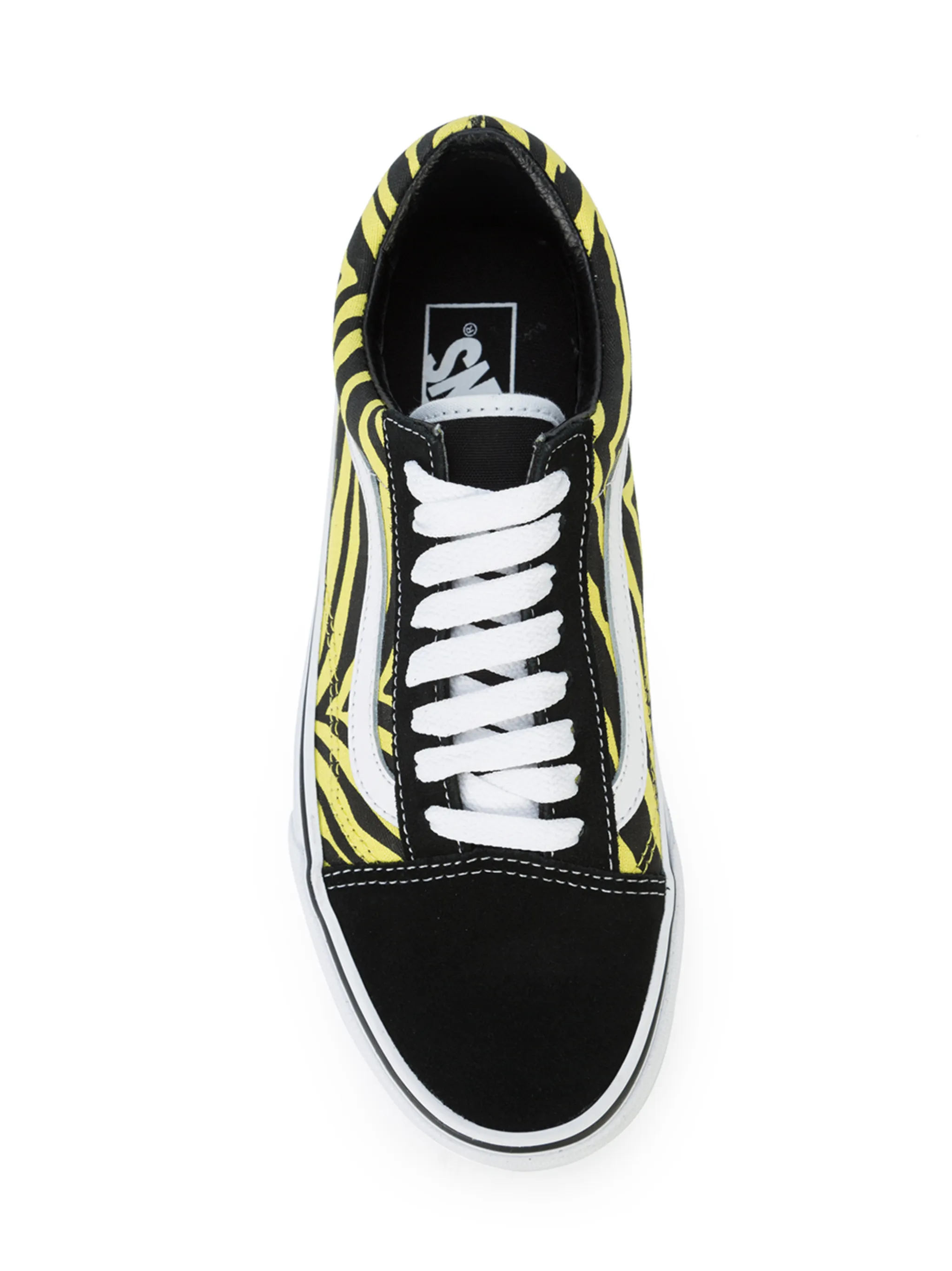 Черные парусиновые кеды на шнуровке 'Old Skool Zebra' с желтыми вставками с черным рисунком под шкуру зебры от Vans (Ванс).