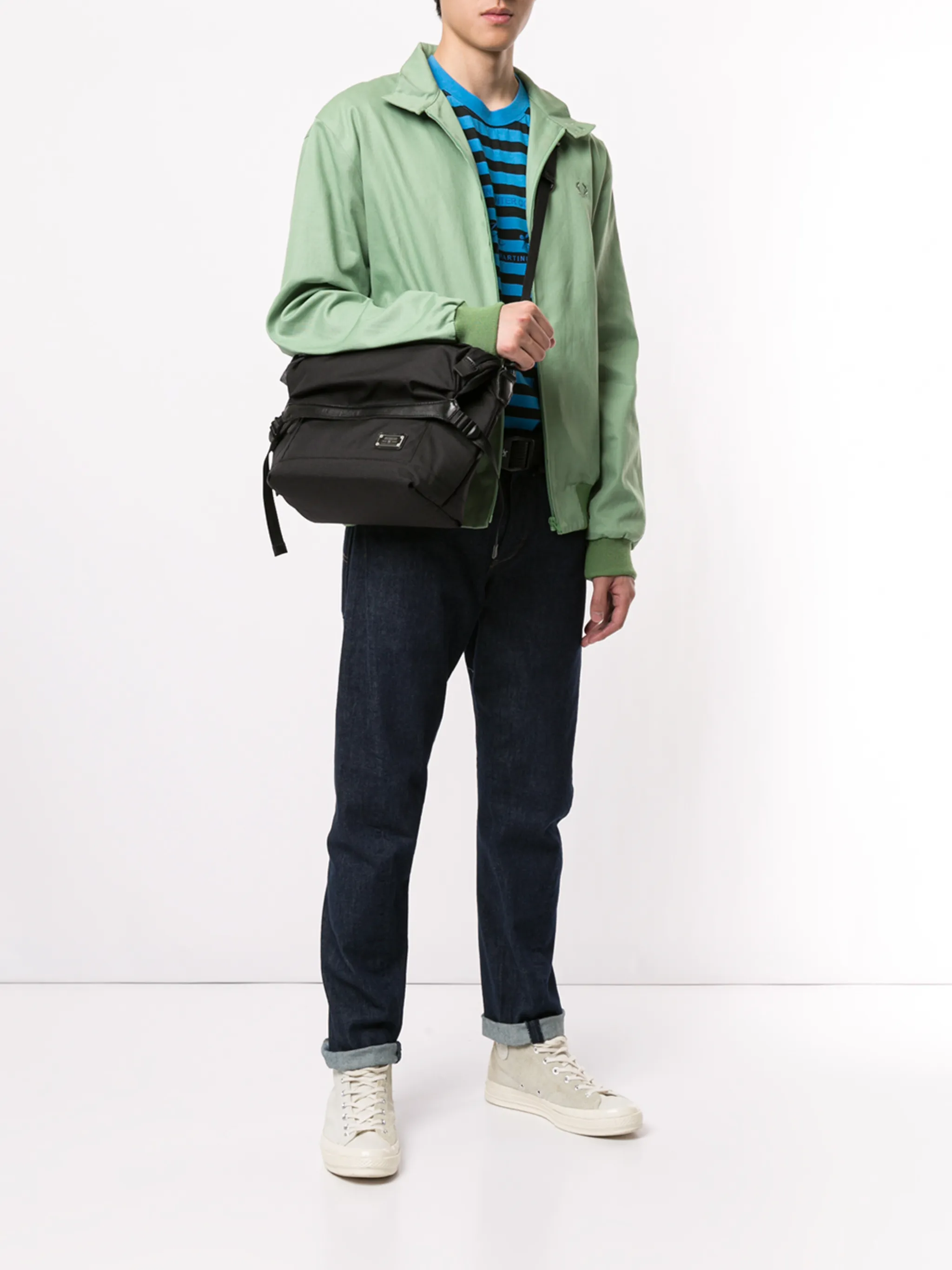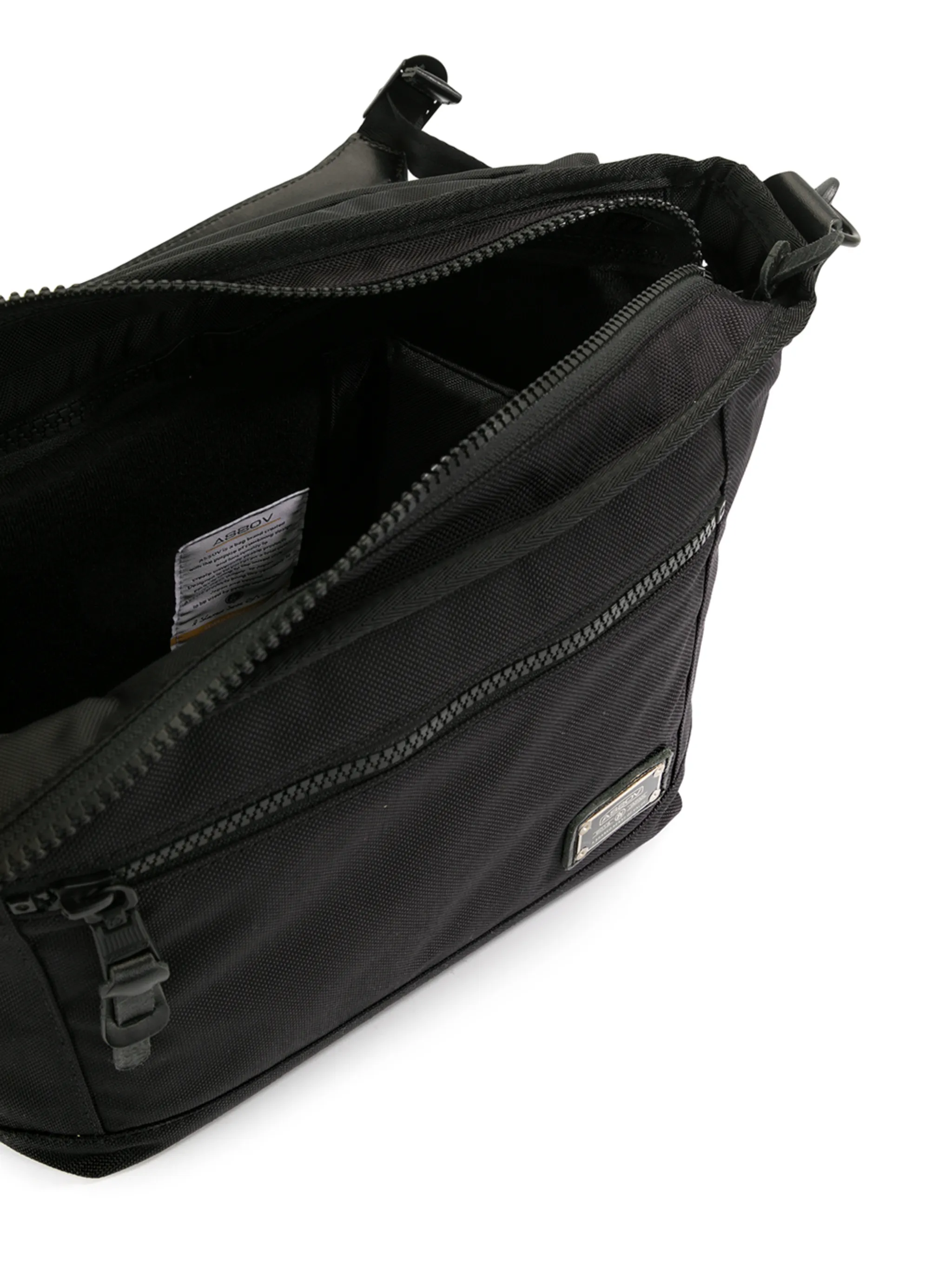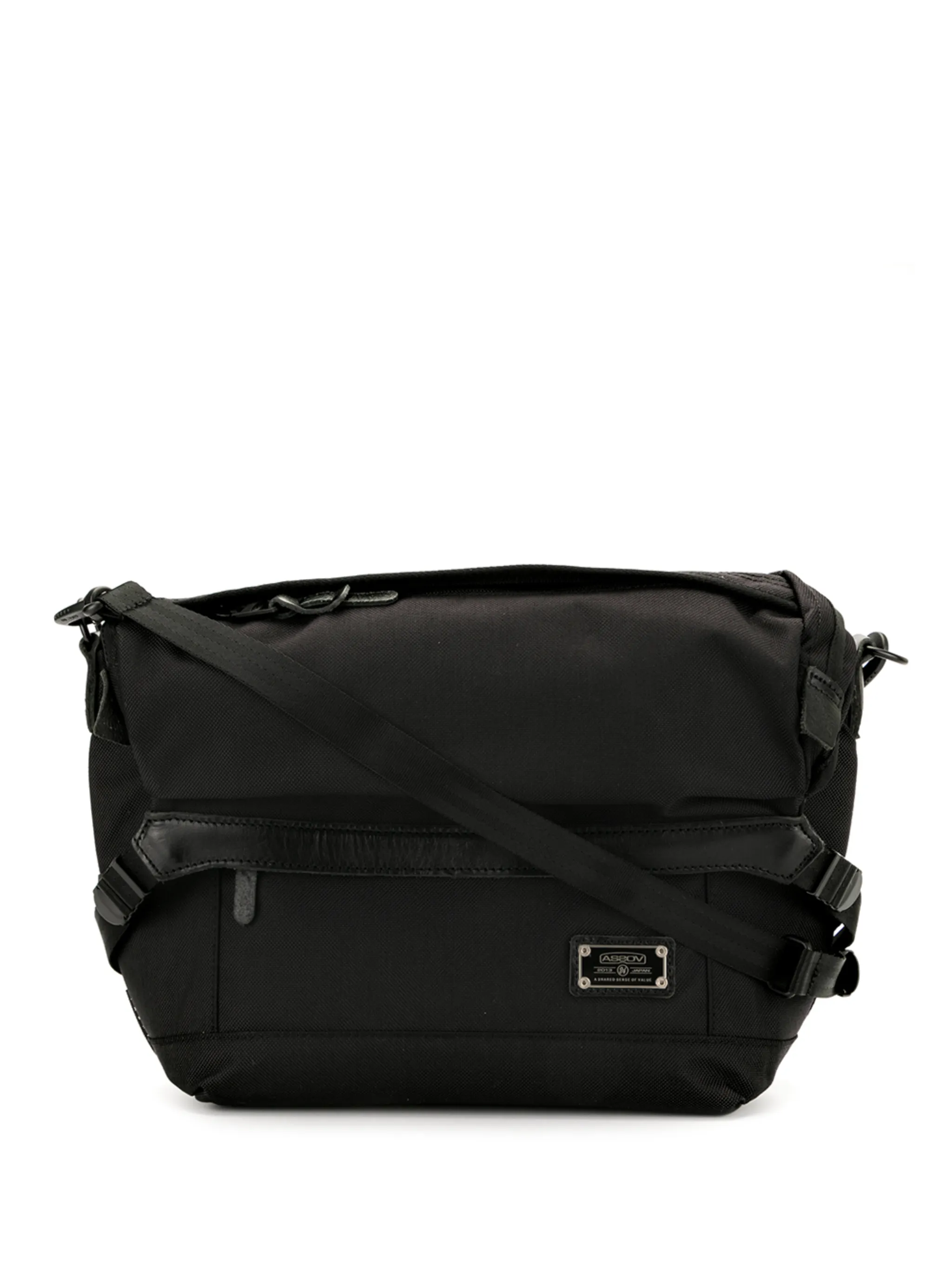 Парусиновая сумка на плечо от As2ov. Регулируемый ремень на плечо, главный внутренний отдел и застежка на молнии сверху. Цвет: черный.