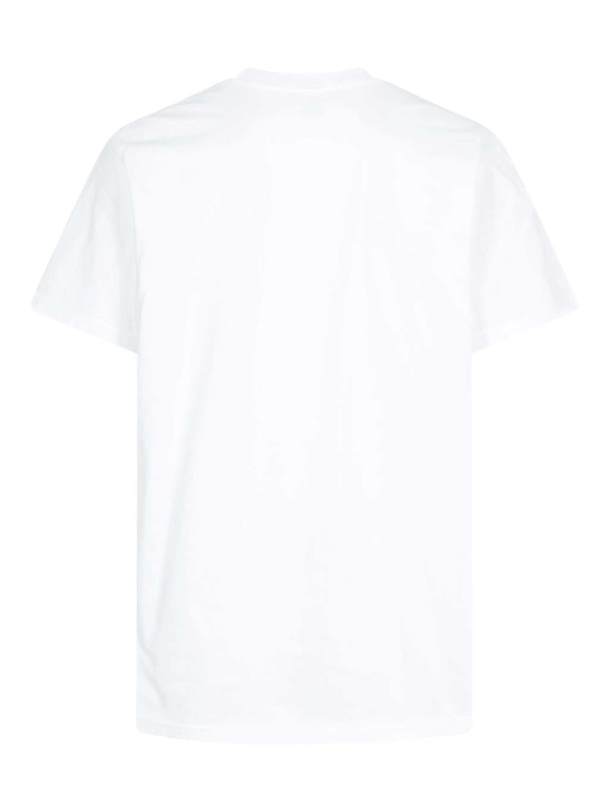 Белый, хлопок, принт с логотипом на груди, круглый вырез, короткие рукава и прямой подол. Это унисекс-модель. Обратите внимание, что для нее используется мужская размерная сетка.