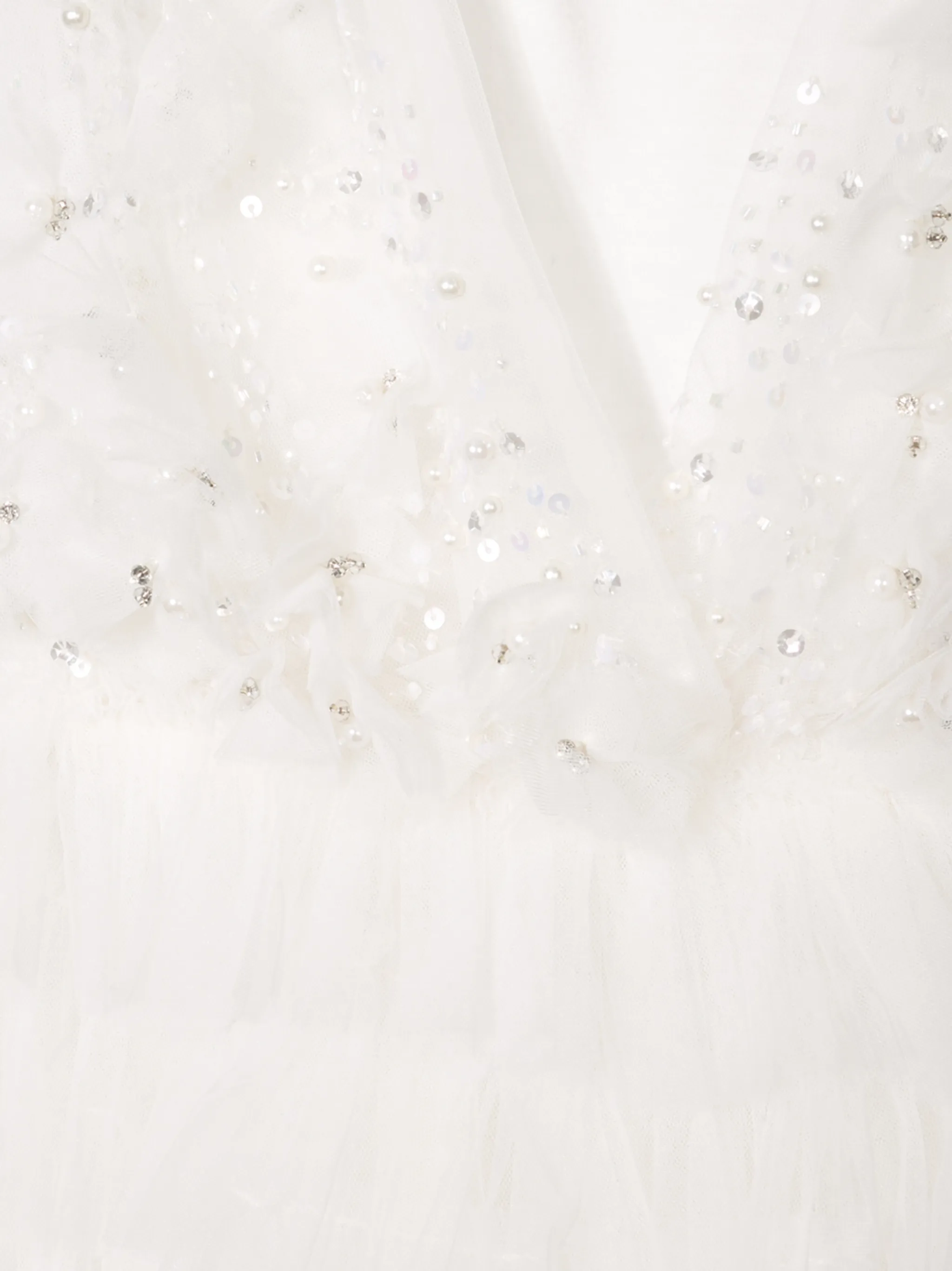 Пышное платье Euphoria от Tutu Du Monde. Модель без рукавов, регулируемые бретельки, бант, круглый вырез, панели из тюля, отделка кристаллами, отделка из искусственного жемчуга, украшение из пайеток и подол с рюшами.