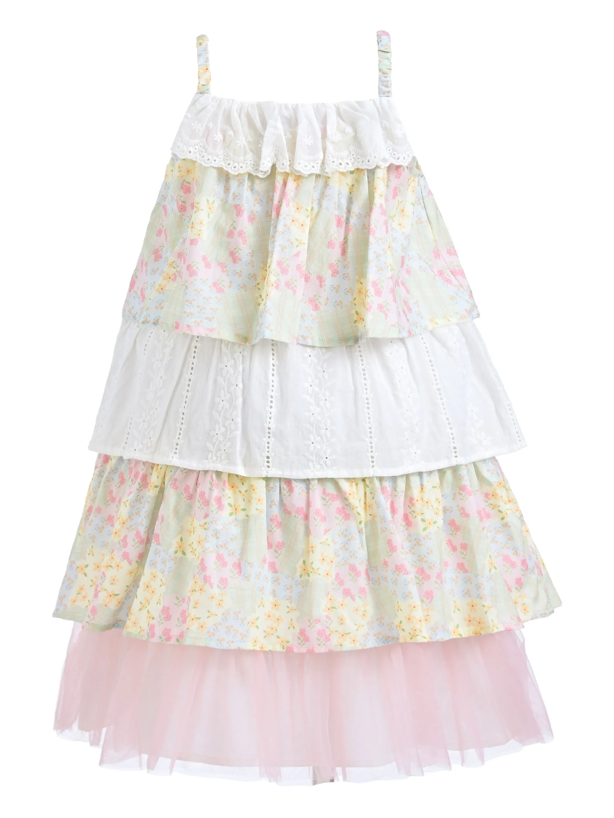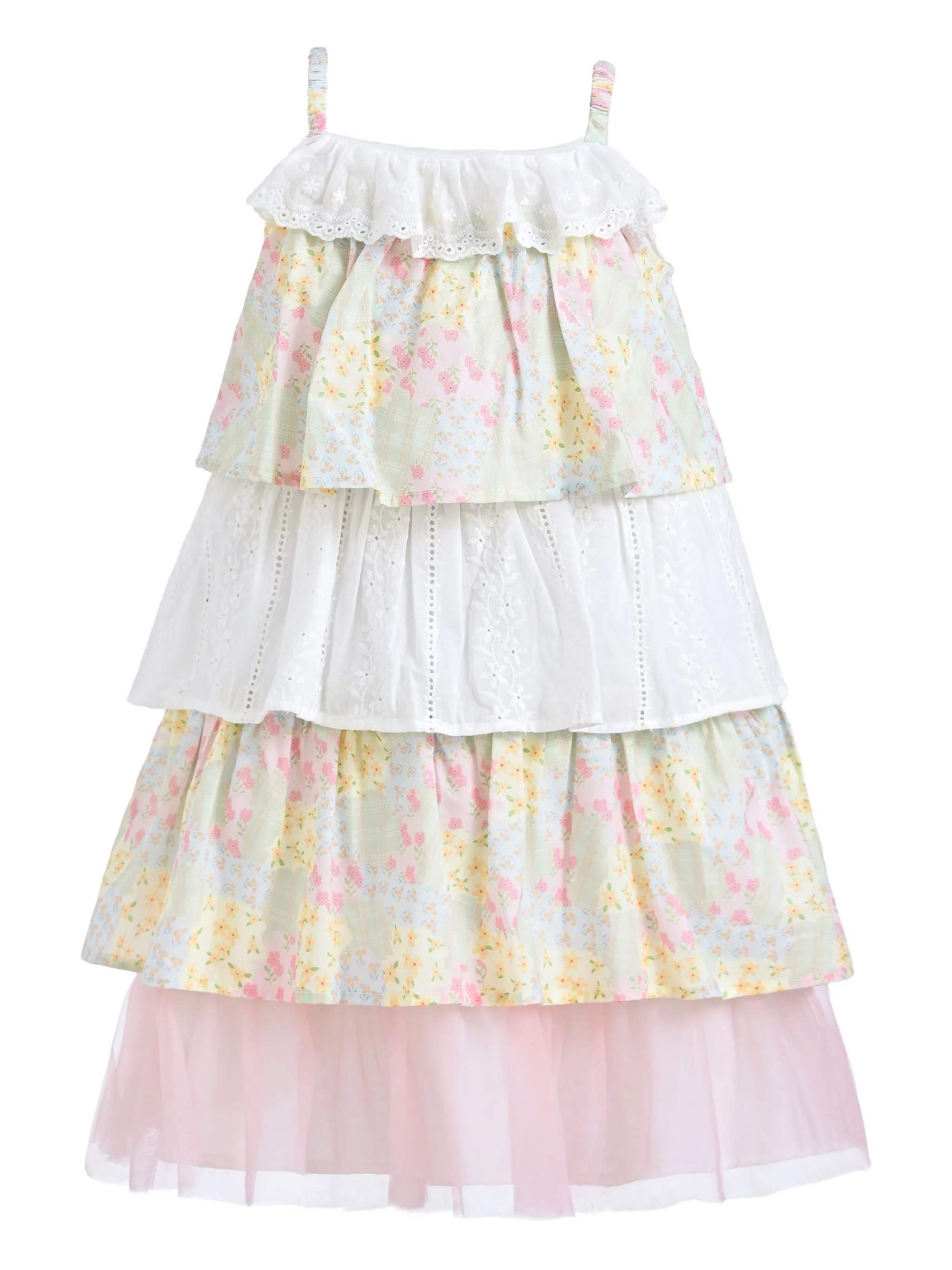 Ярусное платье с цветочным принтом Mimi Tutu, белый