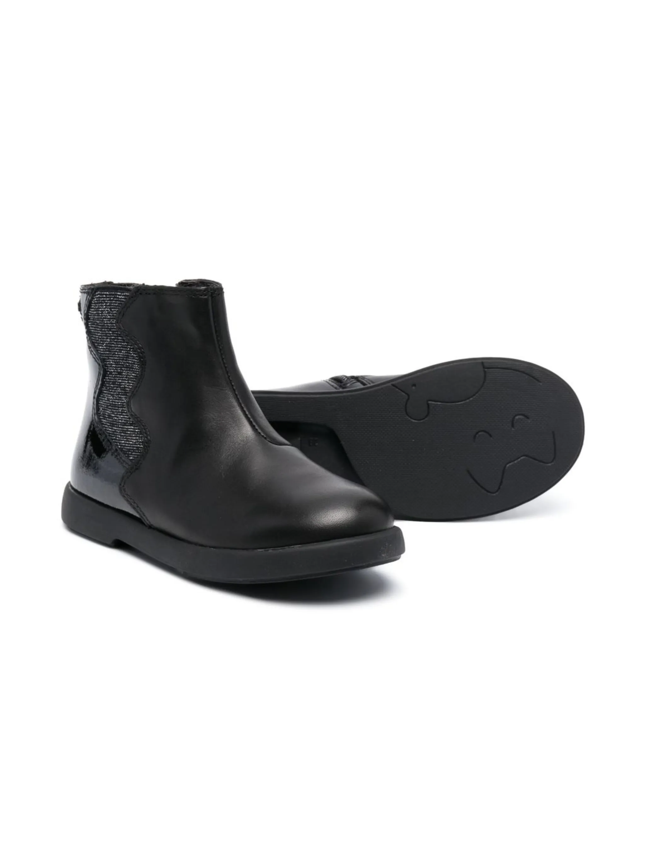 Эластичные боковые вставки, застежка на молнии сбоку, высота по щиколотку, закругленный носок и плоская резиновая подошва.