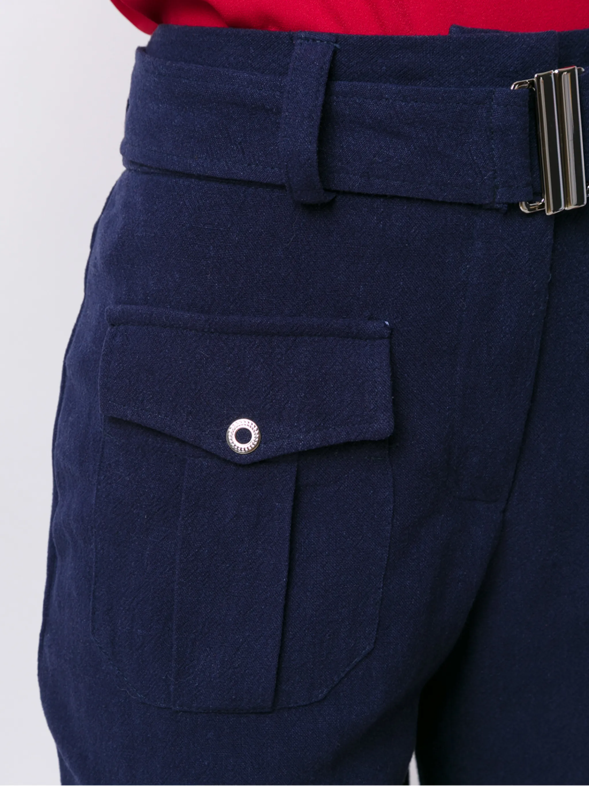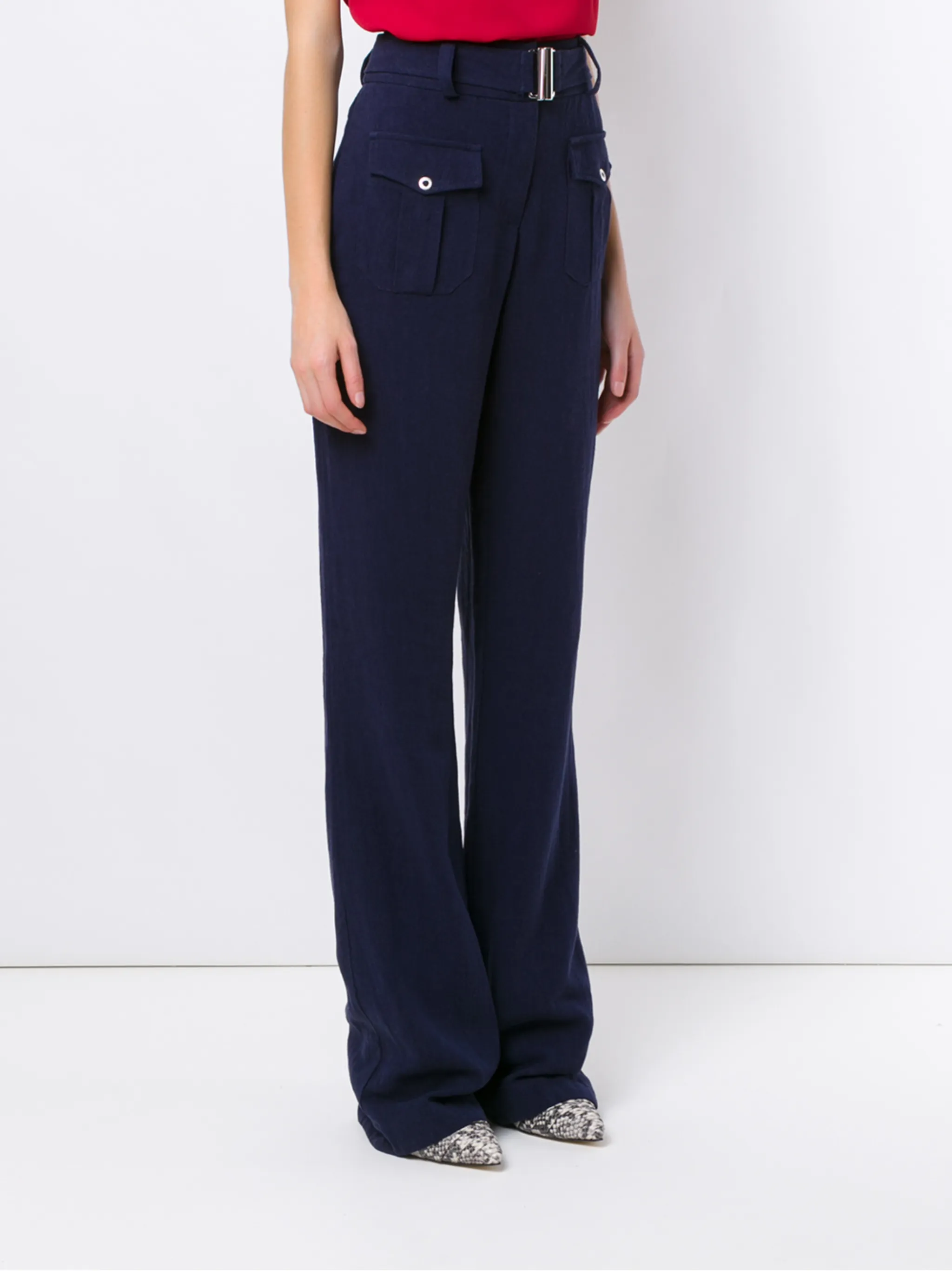 Расклешенные брюки 'Roma' от Olympiah. Средняя посадка, пояс с петлями для ремня, потайная застежка спереди, карманы с клапанами, ремень на талии и свободный крой. POSITIVELY CONSCIOUS: Как минимум 50% основного материала, из которого сделан этот товар, отвечает нашим критериям экологичности. В состав входят органические или переработанные материалы и ткани, которые признаны более экологичными (лен, рами, TENCEL и т.д.)