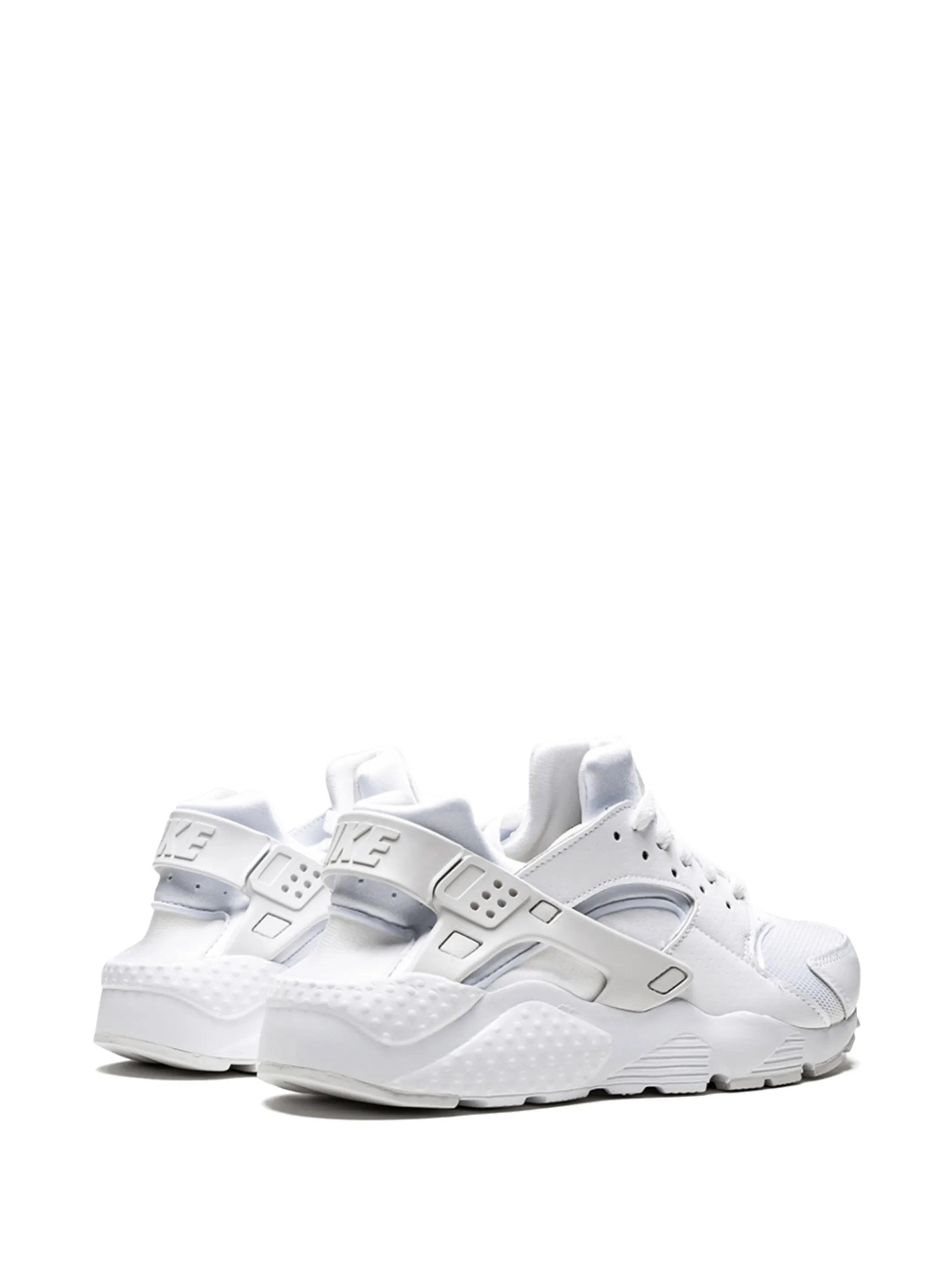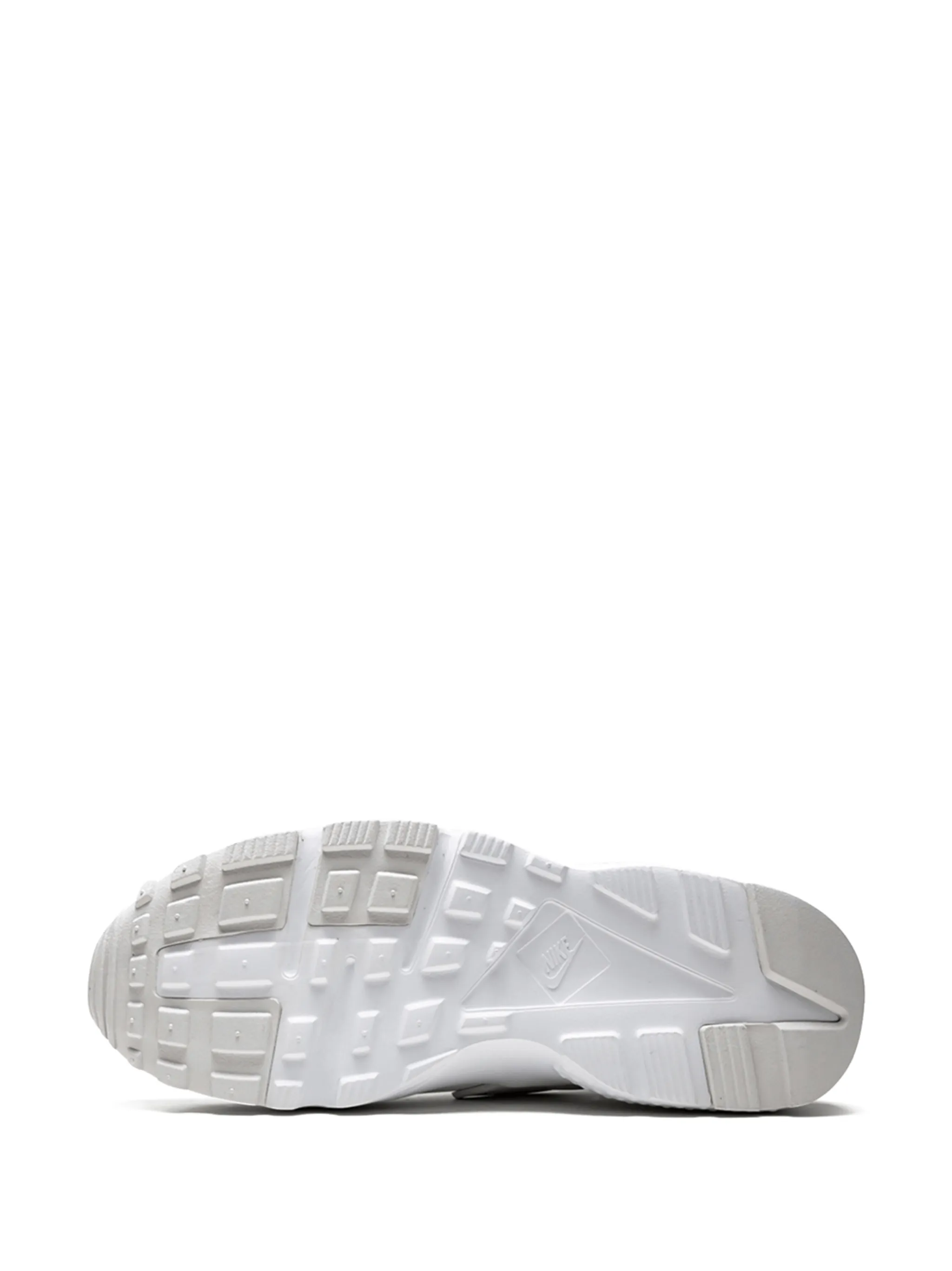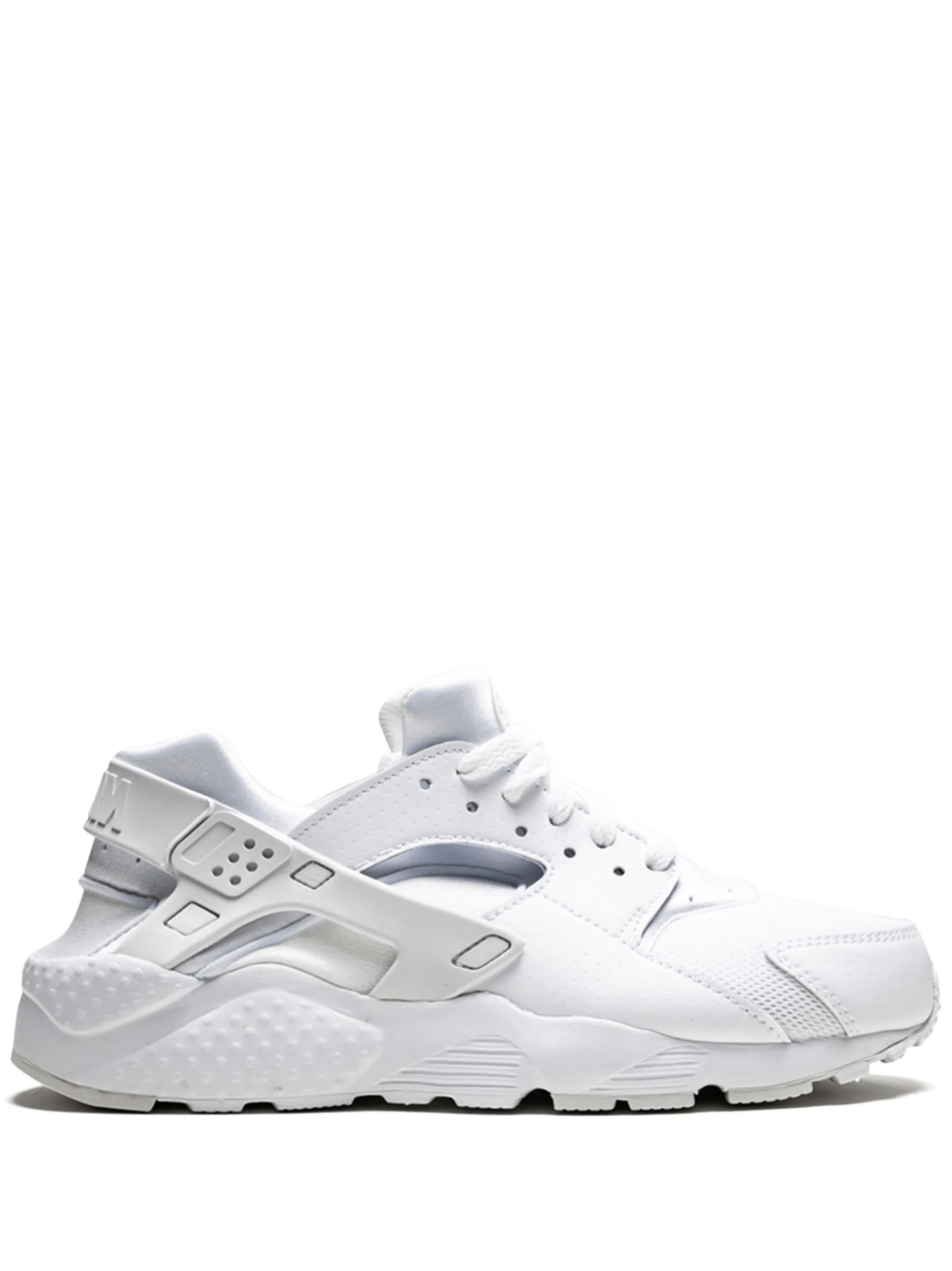 Белые кроссовки Huarache Run от Nike Kids. Закругленный носок, плоская резиновая подошва, шнуровка и стелька с логотипом.