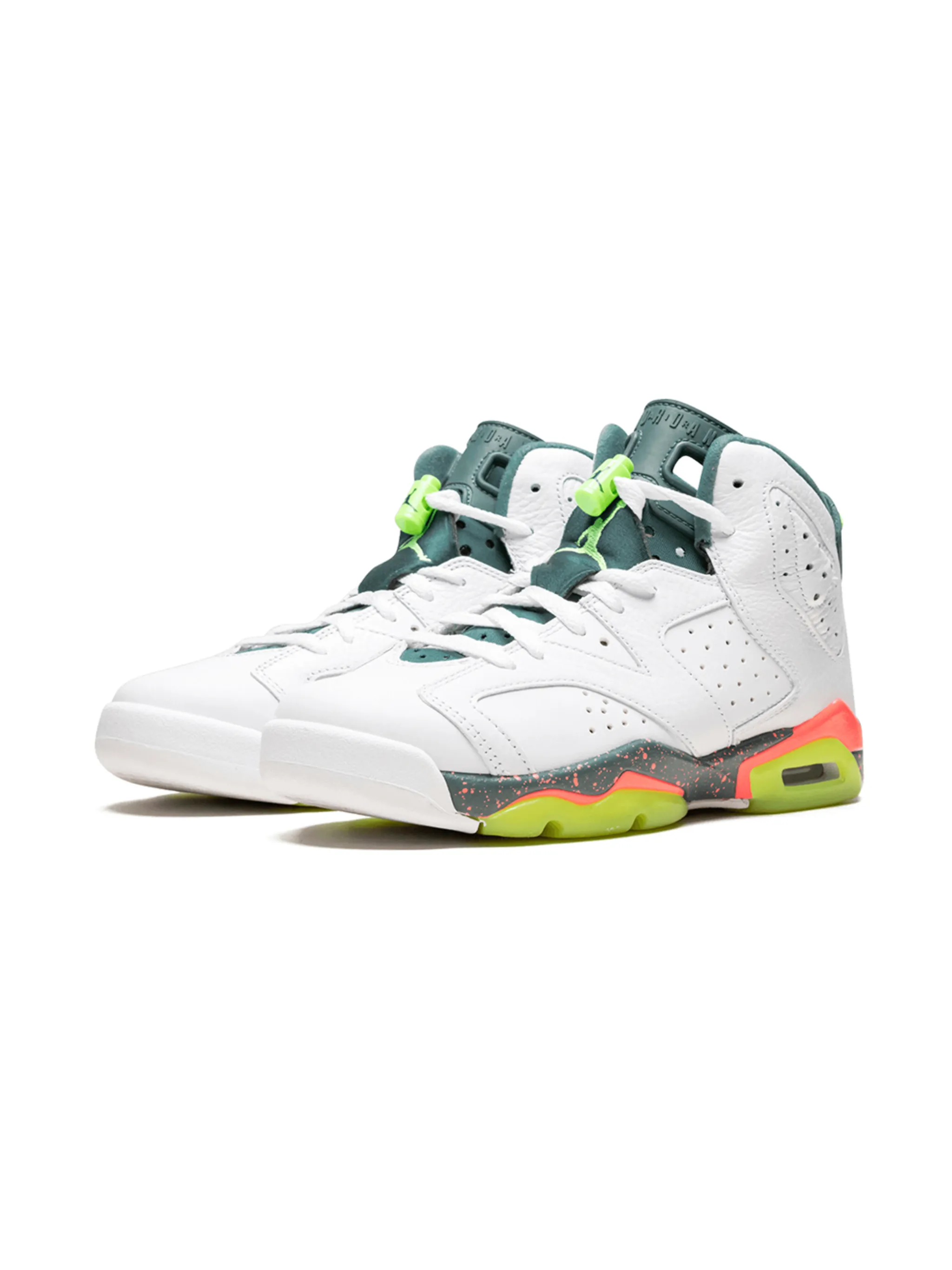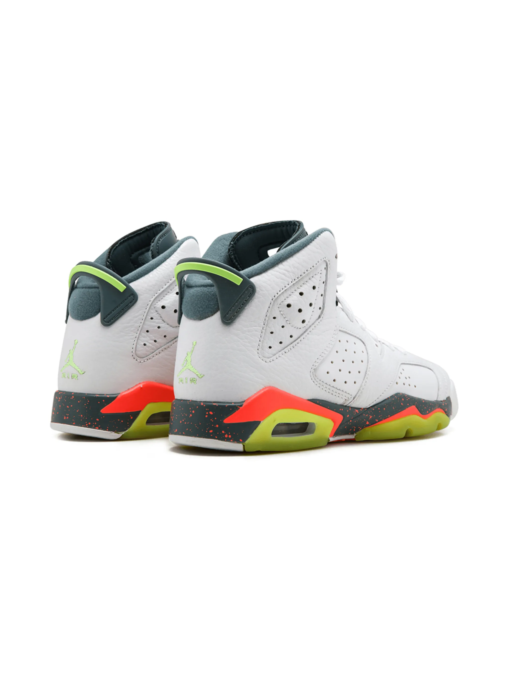 Кроссовки Air Jordan 6 Retro от Jordan. Закругленный носок, прошитые панели, шнуровка спереди, застежка на пуговицы "моржовый клык", перфорированный дизайн, петля для подтягивания сзади и ребристая резиновая подошва. Цвет: белый.